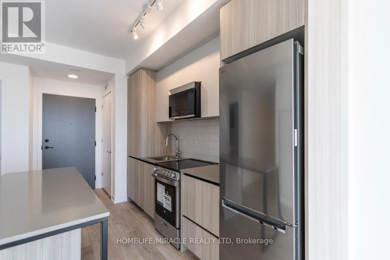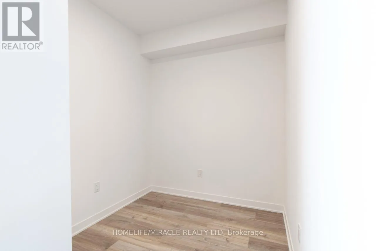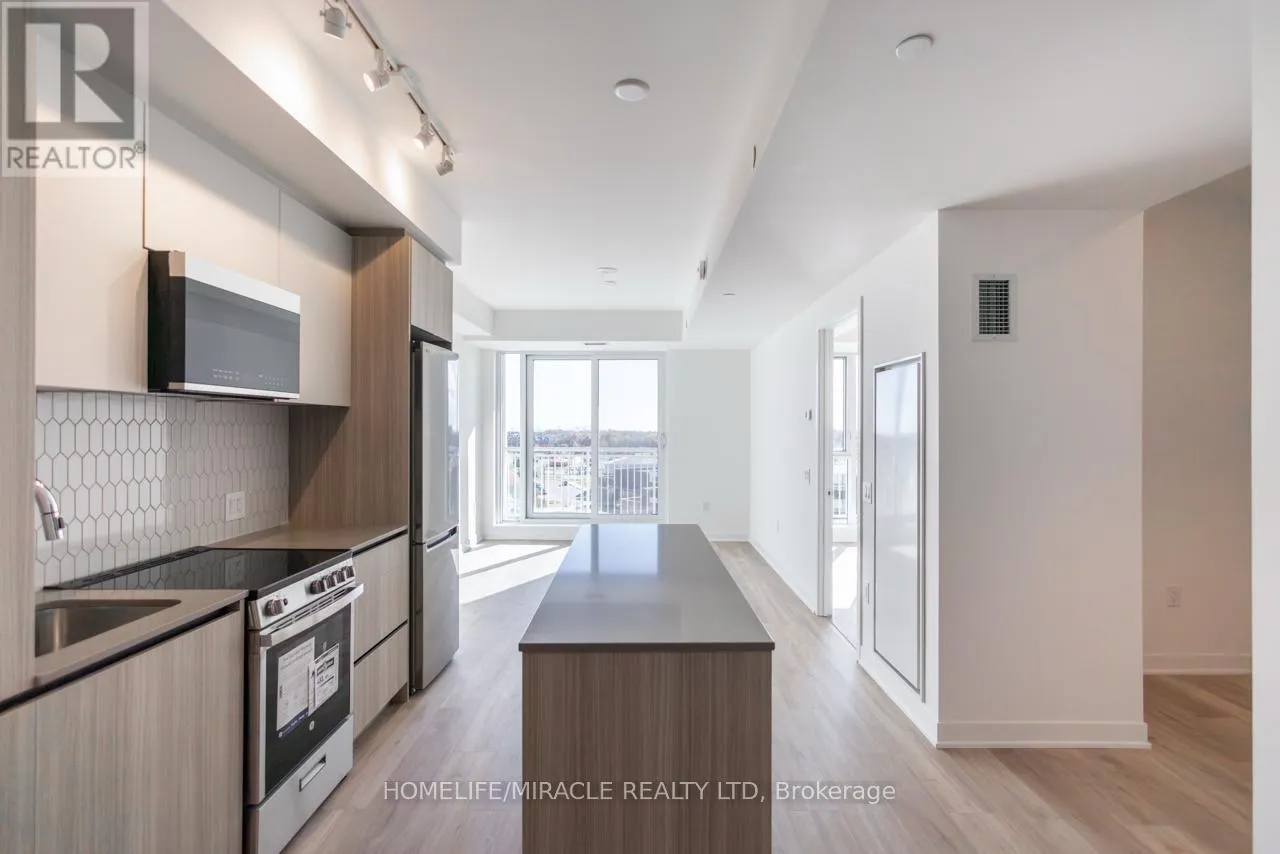 Bovaird Dr / Mississauga Rd Stunning, brand-new one-bedroom plus den condo in the highly desirable Mount Pleasant community. This unit offers a thoughtfully designed layout with 9-foot ceilings, smooth finishes, LED lighting, and laminate flooring throughout. The unit includes one parking space and convenient LG in-suite laundry. The modern kitchen features quartz countertops, soft-close cabinetry and drawers, a ceramic backsplash, under-cabinet lighting, an under-mount sink, a center island with added storage, a paneled GE dishwasher, and stainless steel appliances. The open-concept living and dining area seamlessly extends to the balcony, creating a bright and inviting space. The primary bedroom boasts a large double mirrored closet, while the generously sized den is perfect for a home office. The stylish 4-piece bathroom includes a vanity with soft-close drawers and a relaxing soaker tub. Residents enjoy access to premium building amenities, including a fitness centre, activity zone, co-working space, kids' club, games lounge, party room, and outdoor barbecue area. Situated just minutes from Mount Pleasant GO Station, shopping, parks, trails, schools and highways. (id:27476)