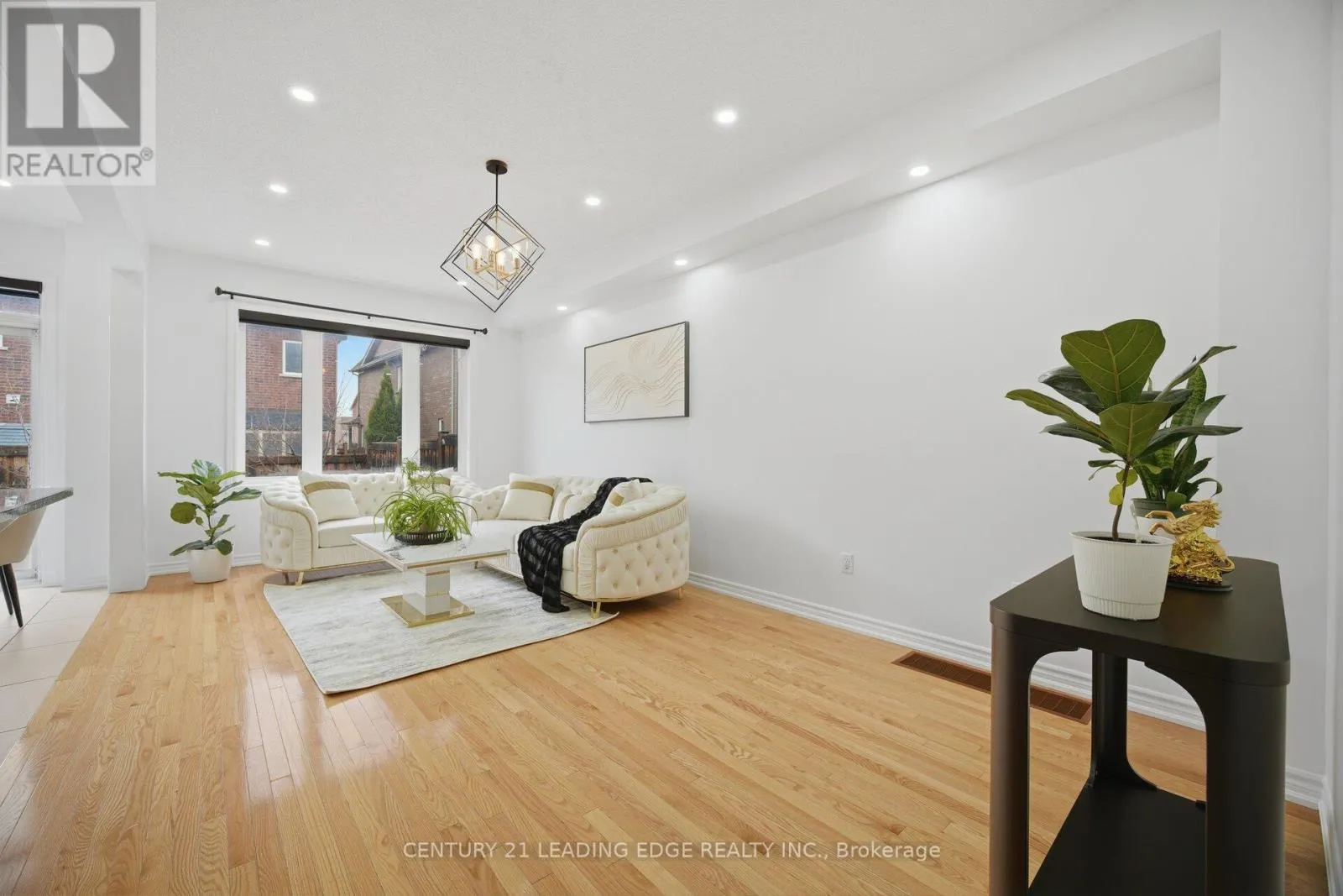 Creditview Rd & Wanless Drive Must-See! Gorgeous 3+ bedroom link home (feels like a semi) featuring a grand foyer with a beautifully upgraded chandelier. This freshly painted, carpet-free home showcases upgraded lighting and pot lights throughout for a bright, modern feel. The spacious living room offers comfort and elegance, while the family-sized kitchen is perfect for entertaining with a walk-out to the backyard. Enjoy beautifully landscaped front and backyard with exterior pot lights enhancing curb appeal day and night. Additional driveway provides ample parking, along with convenient garage access. Upstairs features a large primary bedroom with a luxurious ensuite and custom closets in all three bedrooms. The home also boasts upgraded washrooms with modern finishes. The professionally finished basement offers additional living space ideal for recreation or entertainment. (id:27476)