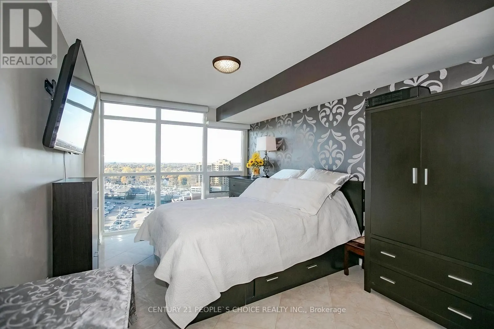 Main & Queen Fully Upgraded spend about $ 50,000.00 , Big Unit 2+1 bedroom, 2-bath condo in the heat of Downtown Brampton ,offers floor-to-ceiling windows that fill the home with natural light and showcase stunning sunset views from your private balcony. The open living and dining areas are perfect for family time, while the renovated Ceramic tile flooring all over and upgraded lighting create a bright, modern feel. Wainscoting ,spotless like new,The stylish kitchen features , Backsplash, marble counters, stainless steel appliances, plenty of cabinetry, and a breakfast bar that makes meals and entertaining easy. Both washrooms have been beautifully updated with fresh finishes, giving the whole home a polished look. Added conveniences include ensuite laundry, underground parking, and a Big storage locker. Families will love being steps from Go Station, schools, parks, the Rose Theatre, and Garden Square events, plus nearby shops, markets, and transit options. With 24/7 concierge and security, this condo is the perfect place to enjoy comfort, community, and family living. (id:27476)
