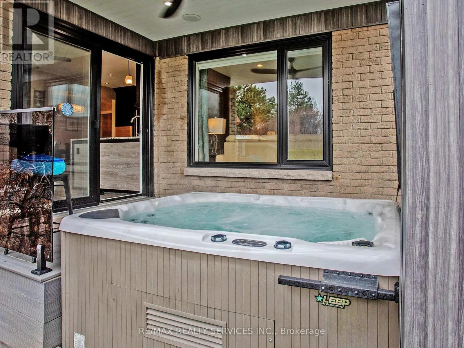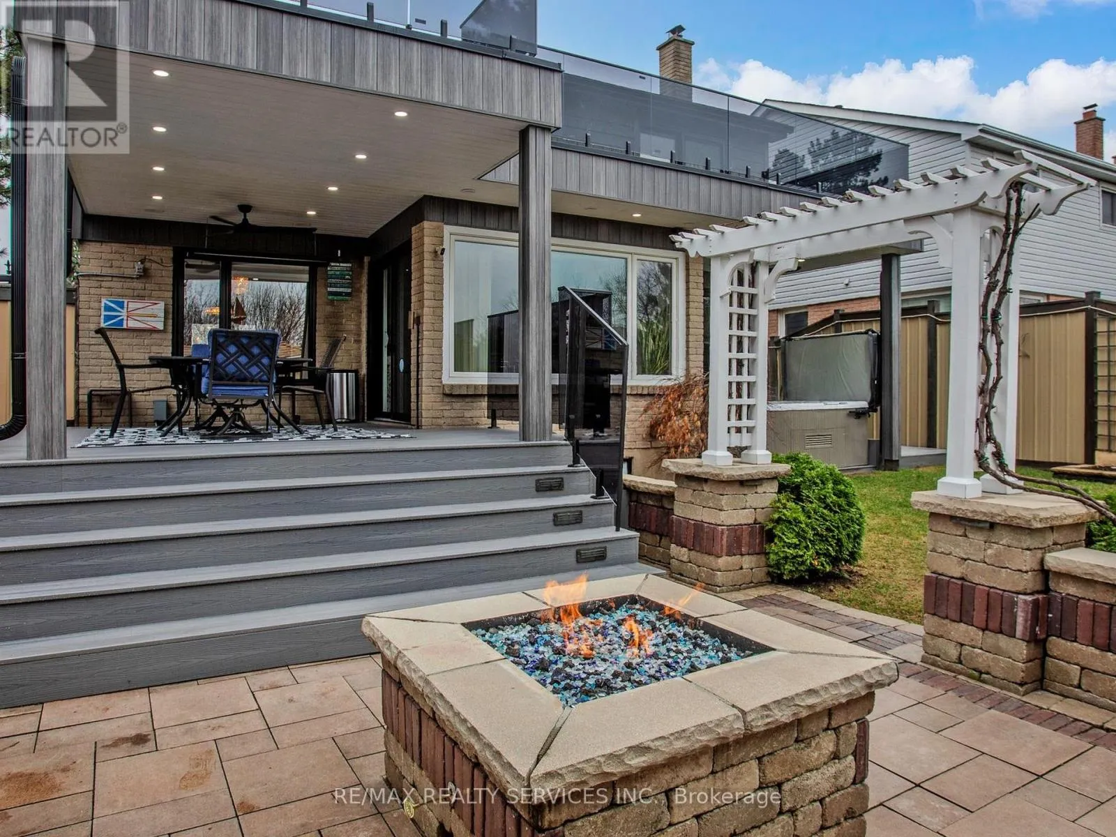 Cross Streets: Williams Pkwy/North Park Dr. ** Directions: North Park to Northampton St. Stunning curb appeal sets the tone for this exquisite home, offering a seamless layout and exceptional indoor-outdoor lifestyle. The upgraded eat-in kitchen with large window overlooking the private backyard sanctuary features two walk-outs with sliding doors-one leading to a private hot tub retreat and the other to a newly built, spacious covered deck with ceiling fan and pot lights, perfect for BBQs and entertaining. The primary and second bedrooms each offer walk-outs to large patios wrapped in tempered stained glass for that sleek/ modern finish, creating a rare and desirable living experience with panoramic views of nature The unique and sophisticated renovations showcase quality craftsmanship and premium materials. The backyard is truly exceptional-backing onto a serene ravine for ultimate privacy. Enjoy evenings around the natural gas fire pit, tend to your own vegetable garden, or relax in the hot tub. This outdoor space is designed for relaxation, entertaining, and enjoying nature year- round. The property also features a fully self-contained lower-level suite, registered with the city as a legal non-conforming two-bedroom apartment. Completely separated from the main home, with the interior staircase removed, this unit offers privacy and independence. No expense was spared in the construction of the secondary unit, featuring soundproofed walls and ceilings, a heated bathroom floor, a generously sized walk-in closet in one of the bedrooms with semi en-suite. Subfloor beneath the laminate flooring installed for added comfort and durability. A residential sprinkler system in the furnace area provides additional peace of mind. (id:27476)