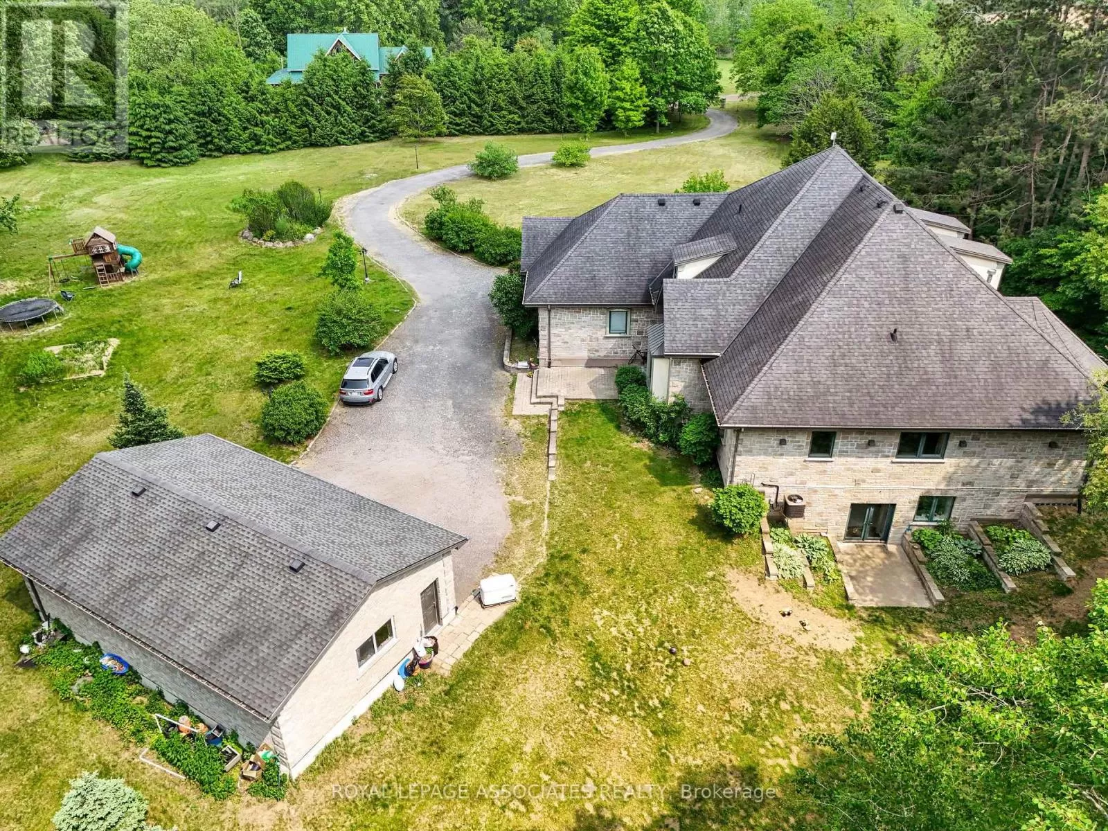 Third Concession Rd & Old Mill Rd Welcome to 21 Old Mill Street A Grand Estate on 16 Private Acres with Over 8,100 Sq Ft of Living Space! Experience the perfect blend of luxury, functionality, and endless opportunity in this impressive 6-bedroom residence. Nestled on a quiet street with easy access to Hwy 403, this custom-built home offers over 8,100 sq ft of finished living space and is ideally suited for multi-generational living or the business owner seeking yard space and a home office.The home features a terrific in-law setup with a separate entrance, providing privacy and flexibility for extended family or business use. Inside, you're greeted by a grand foyer and an expansive open-concept main floor with 9 ceilings, granite countertops, and 250+ pot lights throughout for a bright, upscale ambiance.The sumptuous primary suite and three additional bedrooms on the main level provide space and comfort, while the fully finished lower level offers a home theatre, rec room, gym space, andmore. A four-car detached garage, both drilled and dug wells, and an oversized septic system round out this one-of-a-kind estate. With 16 acres of land, the possibilities for outdoor enjoyment, hobby use, or future development are limitless. (id:27476)