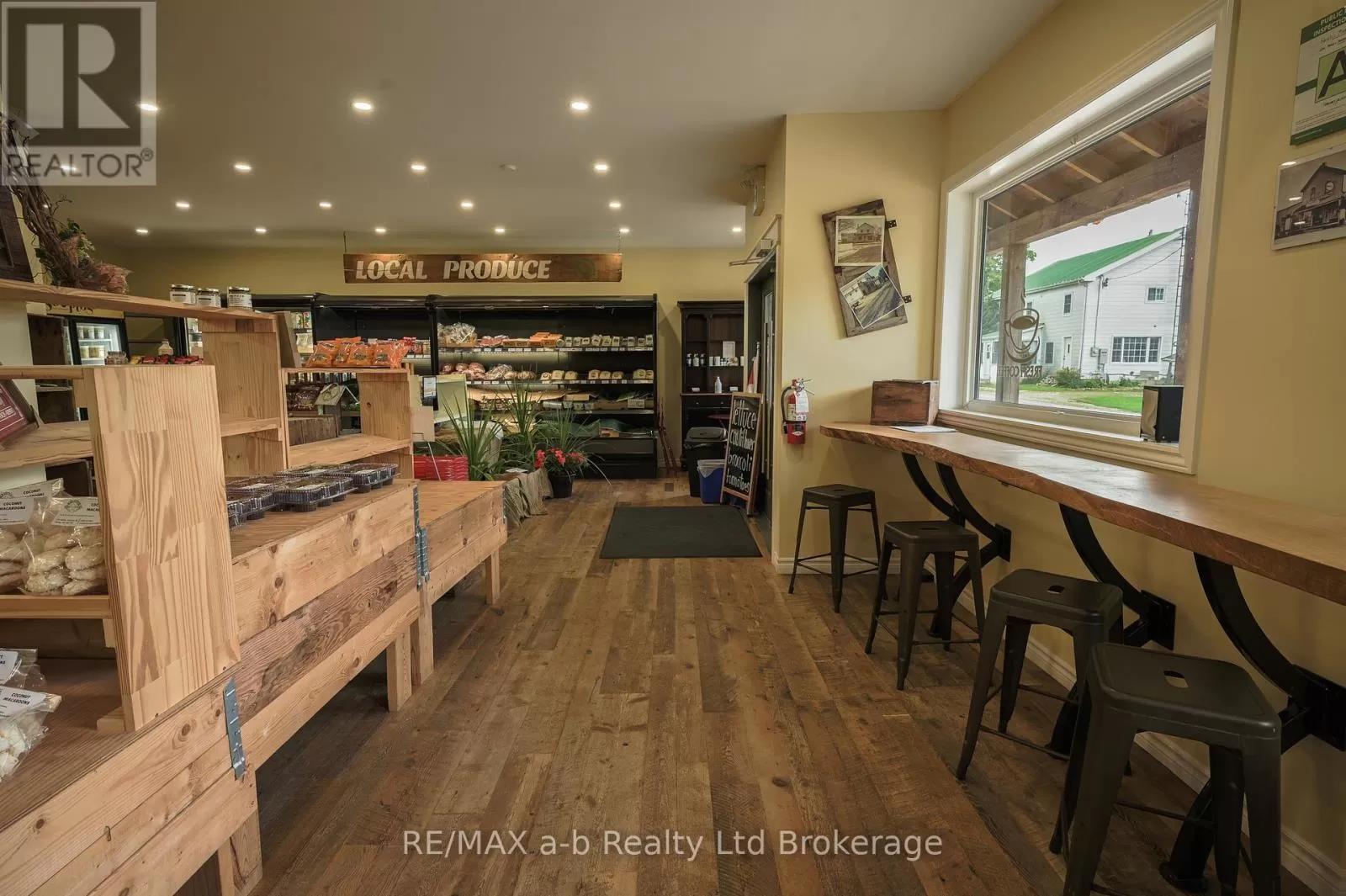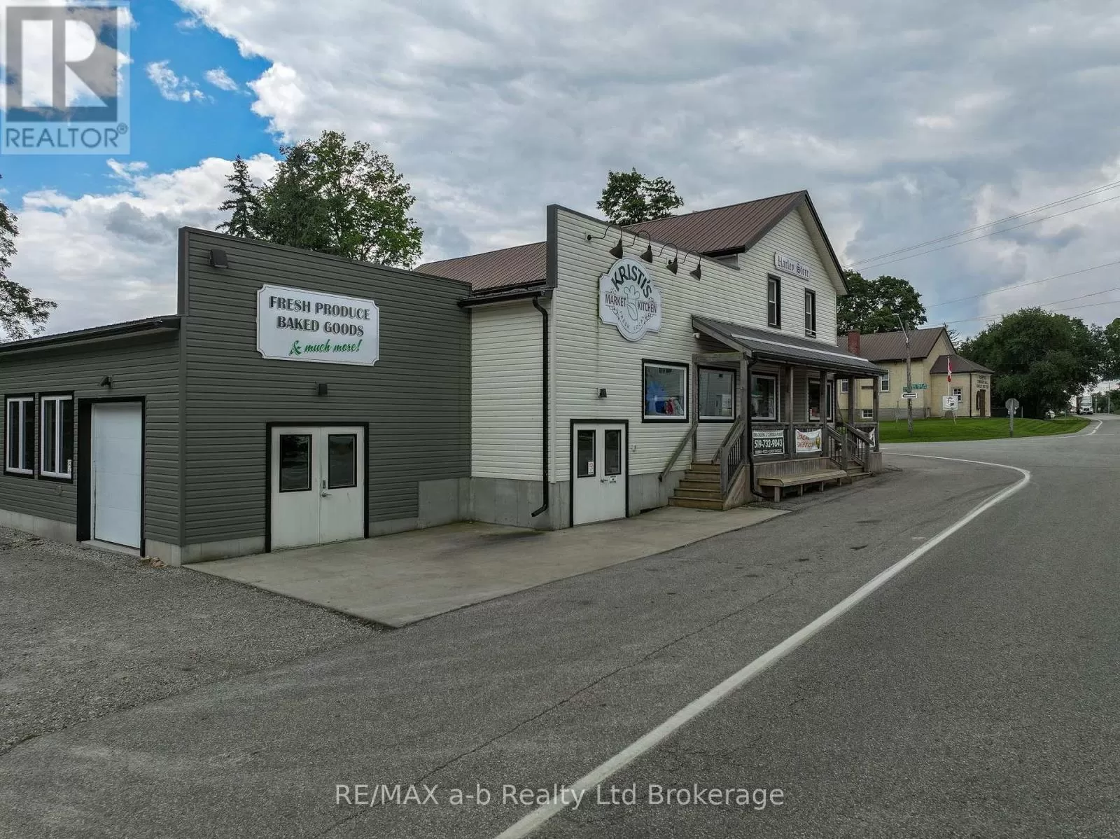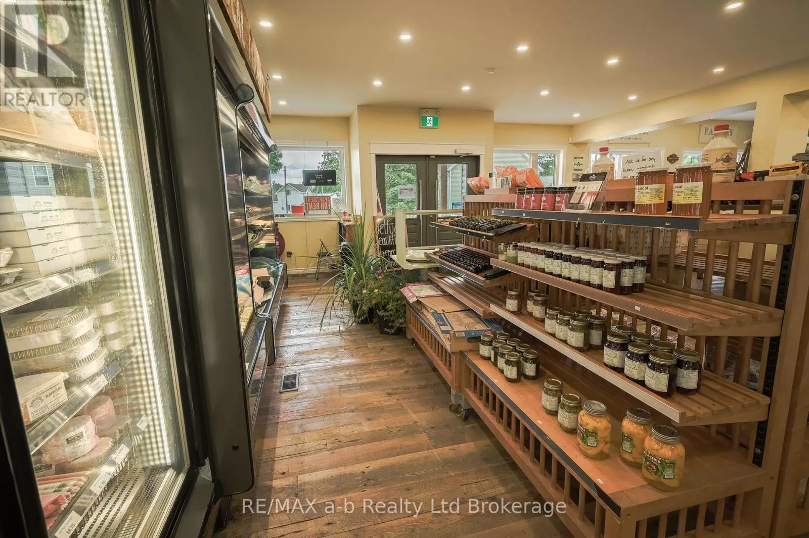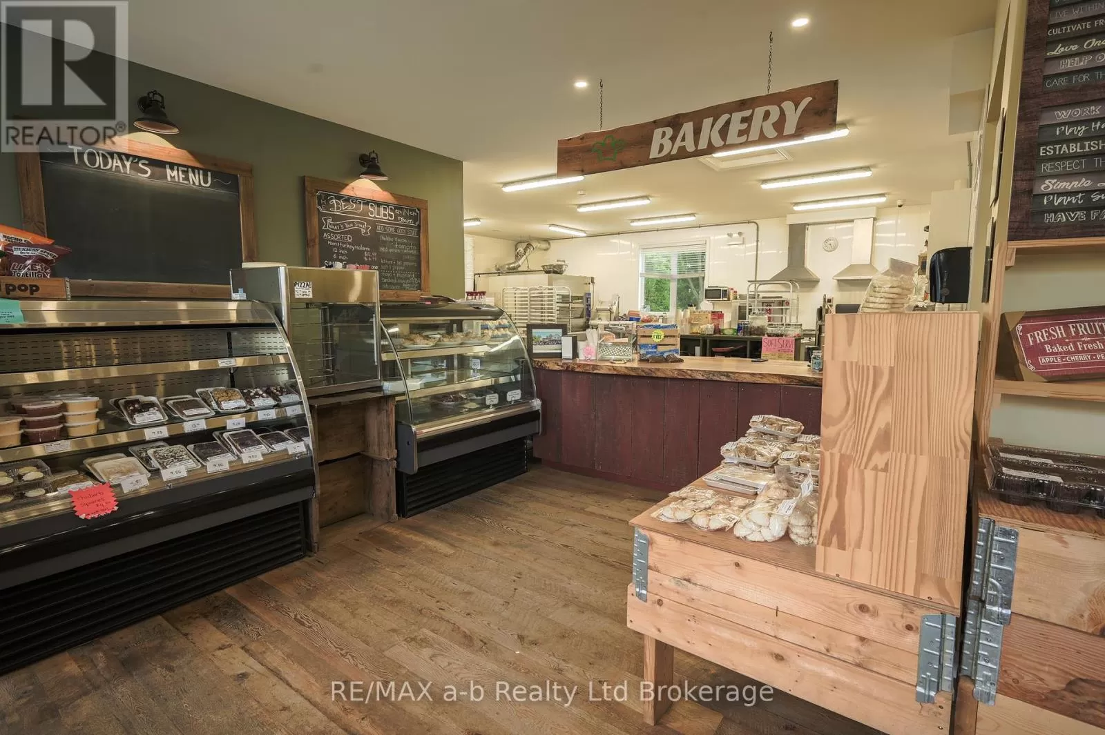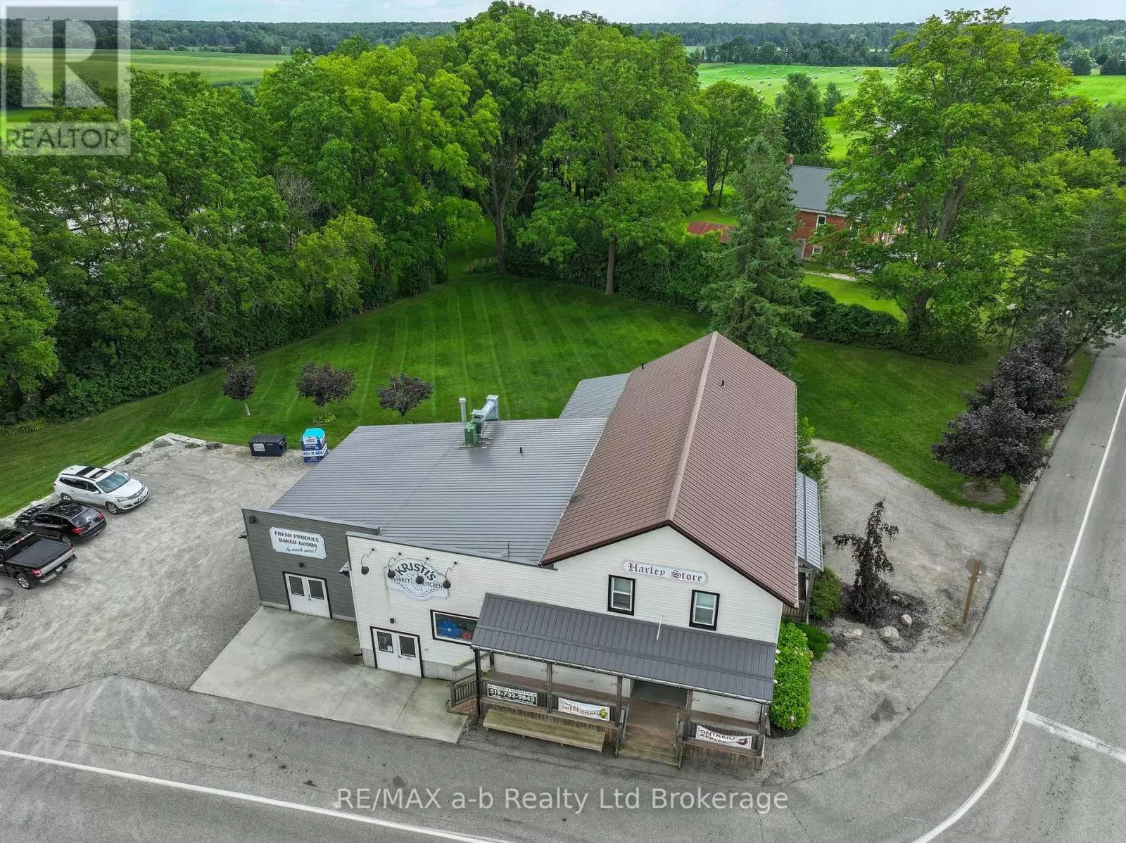 From 403, South on HWY 25, Property for sale is on corner of Middletown Line and Harley Road An exceptional commercial property in Harley, currently a variety store, bakery, and residential suites! This versatile space includes a 1,120 sq. ft main store with a connected 650 sq. ft bakery, featuring nearly 10 foot ceilings and durable Trusscore walls. The building is constructed with an all-metal roof, ensuring longevity and low maintenance, with extensive renovations and additions making this a top notch building. The property includes an 8x8 overhead door, making deliveries easy, and features epoxy floors for durability and ease of cleaning. The building is well-equipped with essential amenities, including a public/employees bathroom, a400A/208V electrical service, and an 80 kW diesel generator to keep your business running smoothly, even during power outages. The 350 sq. ft storage area on the main level, a 11 x 14 walk in freezer, and a 11 x10walk in cooler providing ample space for inventory. Additionally, the property includes a upstairs mechanical/storage area, an office, plus a spacious large new basement with a smaller but useable older basement portion that houses the mechanical equipment. The property also features two residential units on the upper level, each with its own hydro panel. Unit A is a space with two bedrooms and a four-piece bathroom, and comes with a fridge, stove, washer, and dryer. The second unit offers a single bedroom with its own patio, and includes a fridge, stove, washer, and dryer with rent at $1,800 a month each. This property is a rare find, offering everything you need for a thriving retail or bakery business with the added bonus of rental income from the residential units. (id:27476)