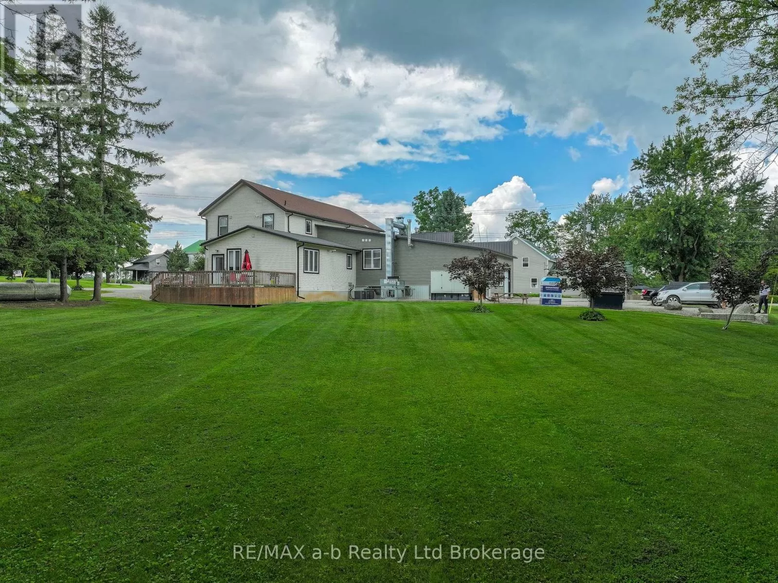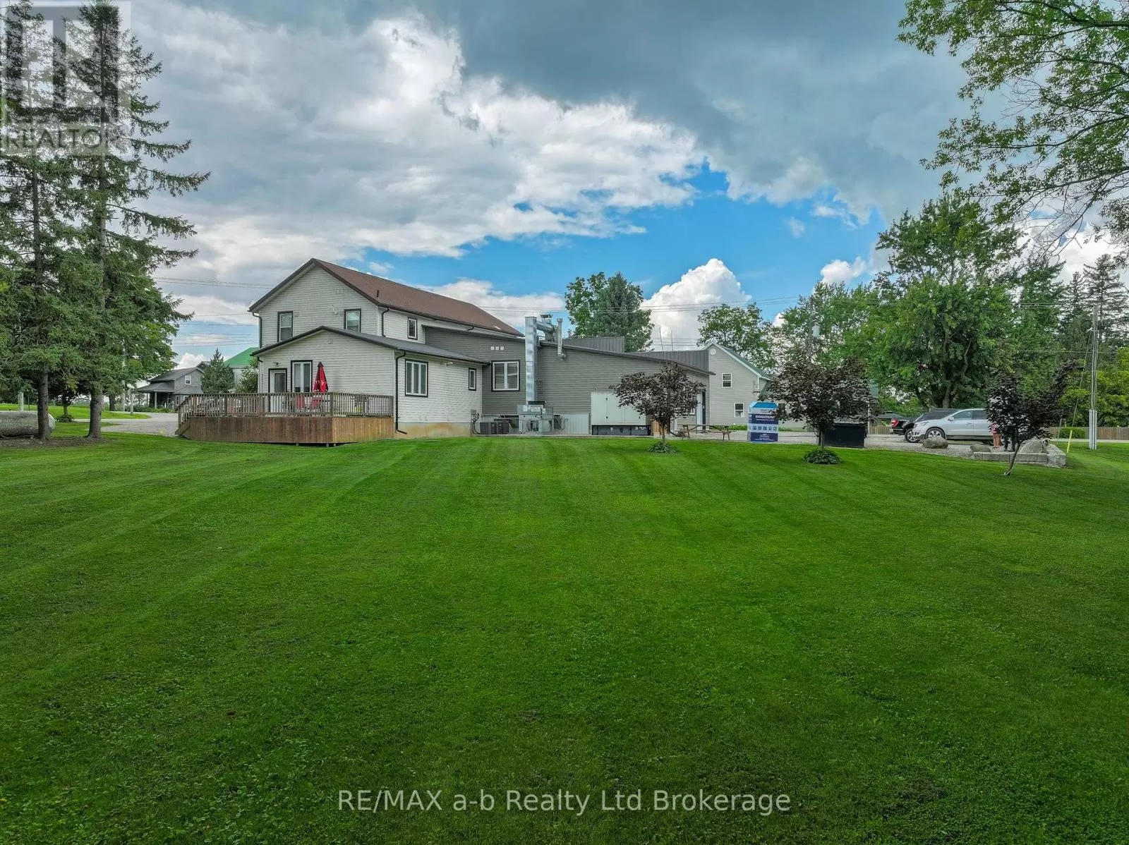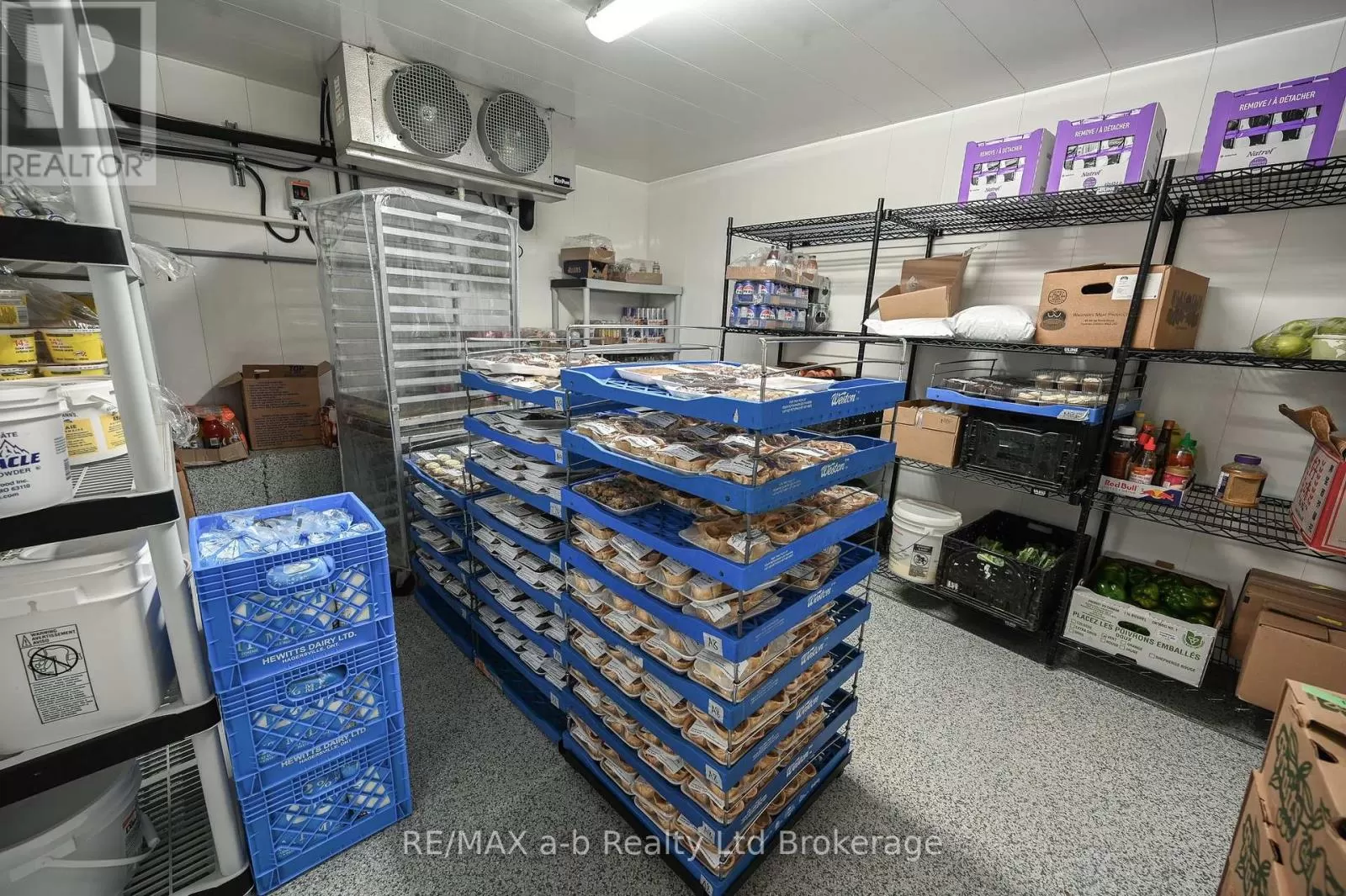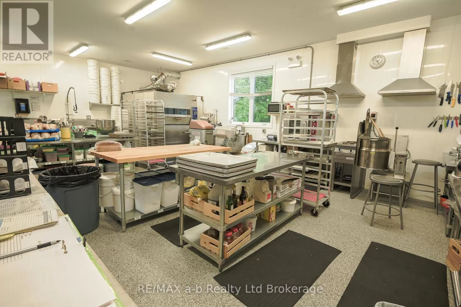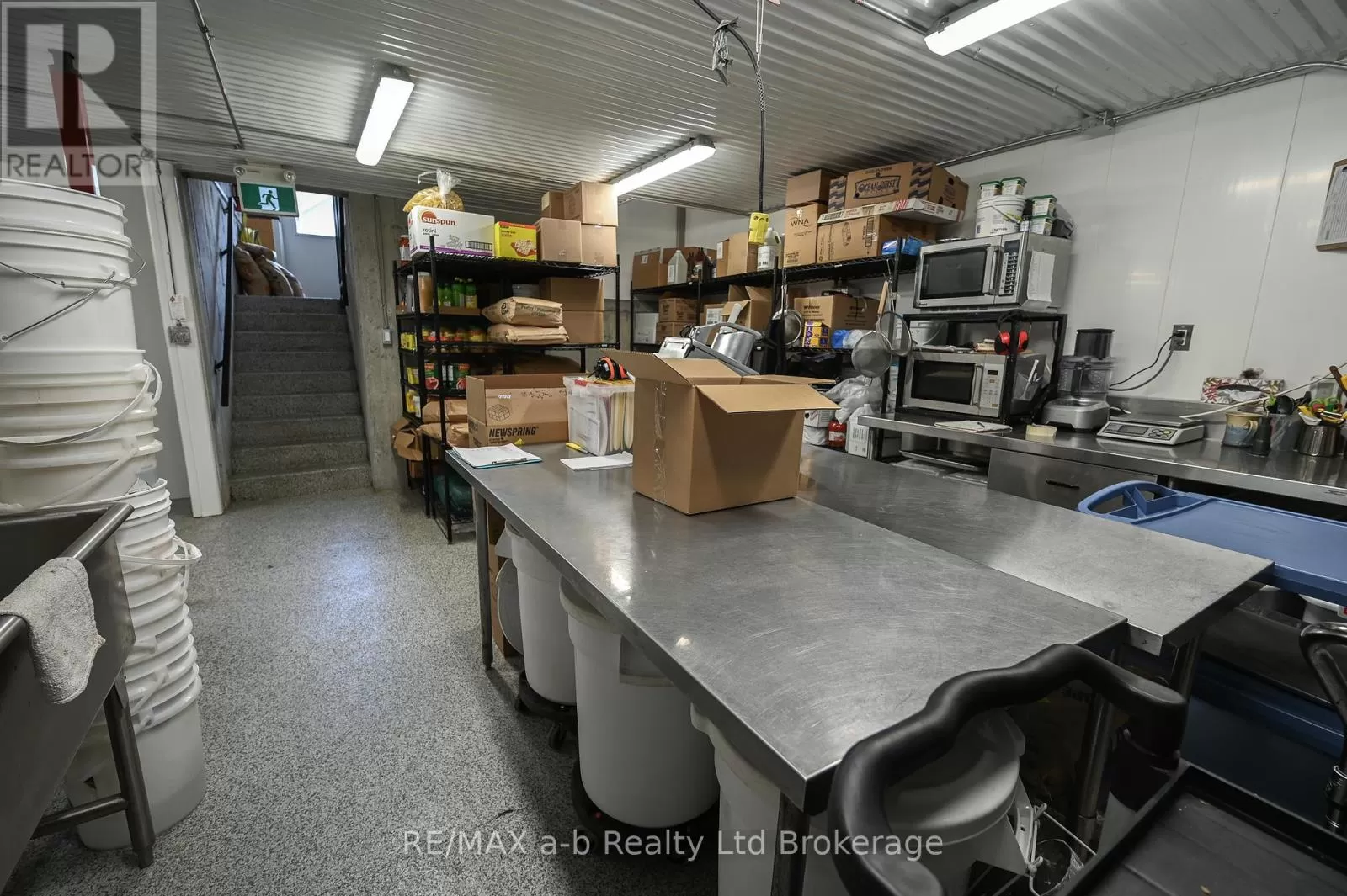 From 403, South on HWY 25, Property for sale is on corner of Middletown Line and Harley Road An exceptional commercial property in Harley, currently a variety store, bakery, and residential suites! This versatile space includes a 1,120 sq. ft main store with a connected 650 sq. ft bakery, featuring nearly 10 foot ceilings and durable Trusscore walls. The building is constructed with an all-metal roof, ensuring longevity and low maintenance, with extensive renovations and additions making this a top notch building. The property includes an 8x8 overhead door, making deliveries easy, and features epoxy floors for durability and ease of cleaning. The building is well-equipped with essential amenities, including a public/employees bathroom, a400A/208V electrical service, and an 80 kW diesel generator to keep your business running smoothly, even during power outages. The 350 sq. ft storage area on the main level, a 11 x 14 walk in freezer, and a 11 x10walk in cooler providing ample space for inventory. Additionally, the property includes a upstairs mechanical/storage area, an office, plus a spacious large new basement with a smaller but useable older basement portion that houses the mechanical equipment. The property also features two residential units on the upper level, each with its own hydro panel. Unit A is a space with two bedrooms and a four-piece bathroom, and comes with a fridge, stove, washer, and dryer. The second unit offers a single bedroom with its own patio, and includes a fridge, stove, washer, and dryer with rent at $1,800 a month each. This property is a rare find, offering everything you need for a thriving retail or bakery business with the added bonus of rental income from the residential units. (id:27476)