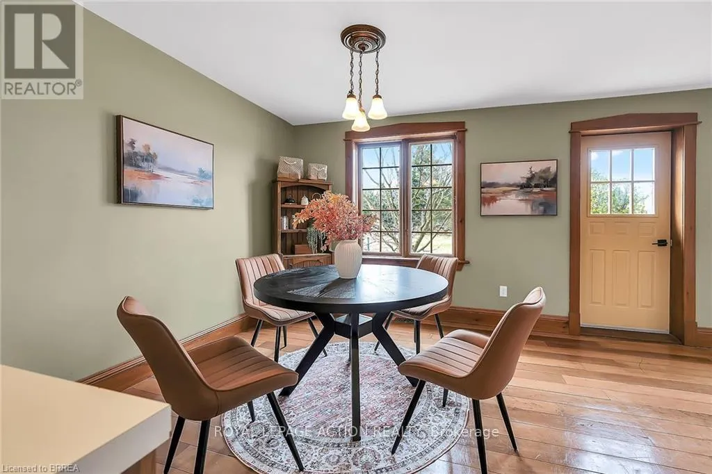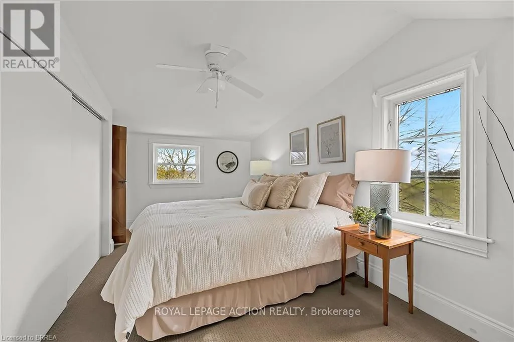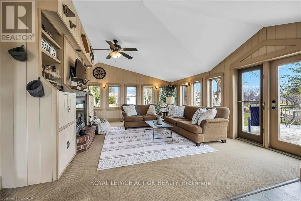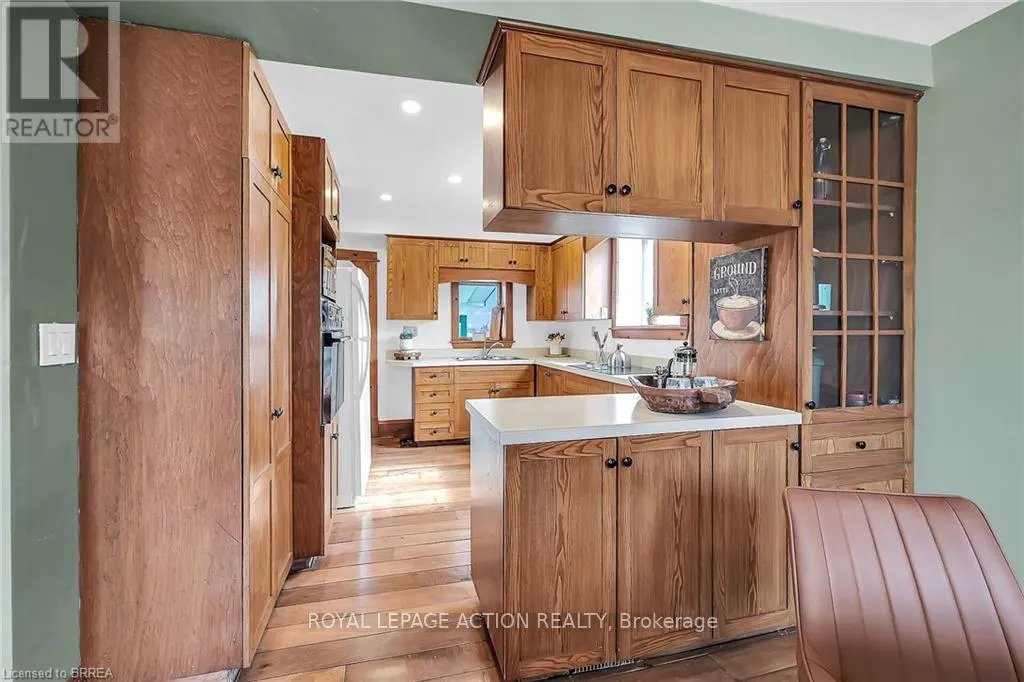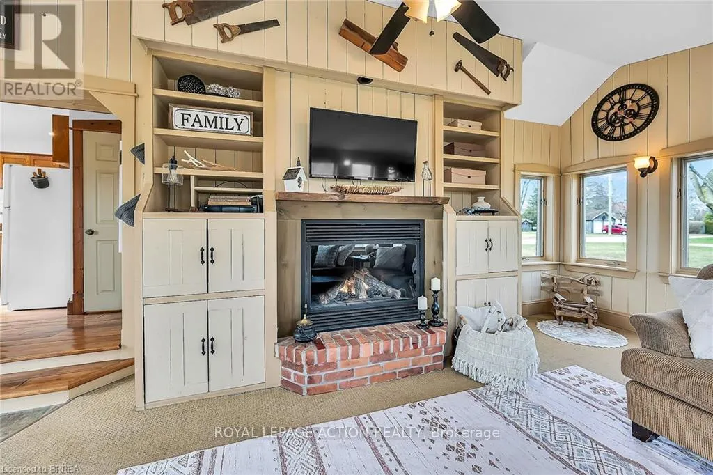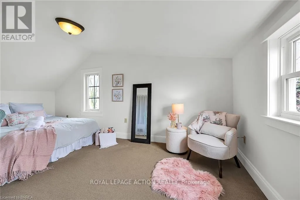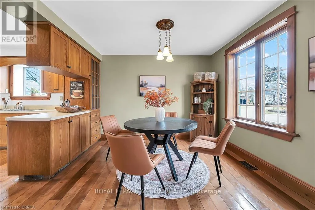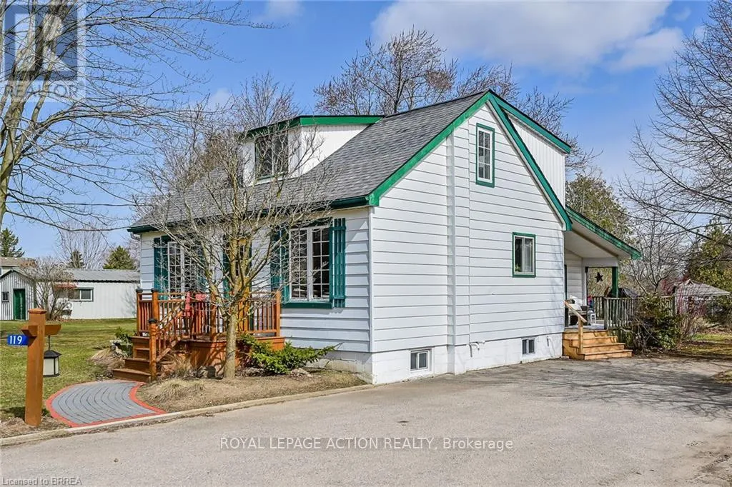 Cross Streets: Mt. Pleasant Road. ** Directions: South on Mt. Pleasant Road to Wetmores Road. Turn left on Wetmores. Property is on the left. Country road, take me home....to this delightful and cozy 1 1/2 storey home with a 28' x 20' workshop. Located in the quaint and highly sought-after village of Mt Pleasant, this home has been artfully enhanced by the owner/master craftsman. One of the many highlights of this home is the bright and spacious family room addition with built-in shelving, tons of windows and a cozy gas fireplace. The kitchen, living and dining rooms boast gorgeous hardwood floors and the living room features custom built-in bookshelves. A 4 pc bath room and main floor laundry complete the main floor. Head up the handcrafted hardwood stairway to the upper level where you'll find a well-appointed primary bedroom with a 3 pc private ensuite. Across the hall is a second bedroom, just as spacious as the primary with a built-in desk and shelving as well as a hidden "room" behind the bedside shelves. The basement has been newly finished with drywall and fresh paint adding additional living space (just add flooring). Outside, there is a new stone walkway leading to the newly added front porch; the perfect place to watch the magnificent sunsets. There is also a wrap around deck at the side and back of the property and a little treehouse 9with hydro) tucked away. The detached workshop features a gas furnace as well as a/c, a 100 amp breaker panel and lots of natural light. With 192' of frontage, the lot is expansive and offers plenty of possibilities. (id:27476)