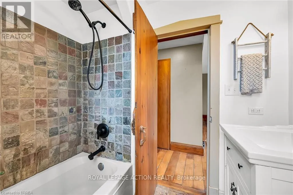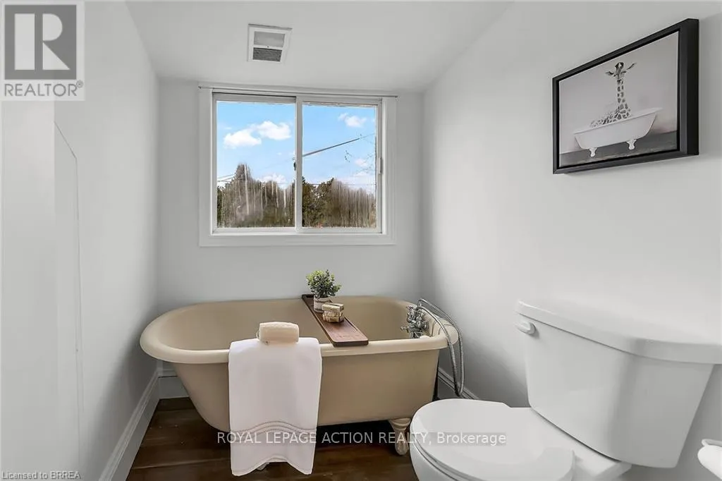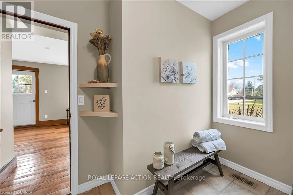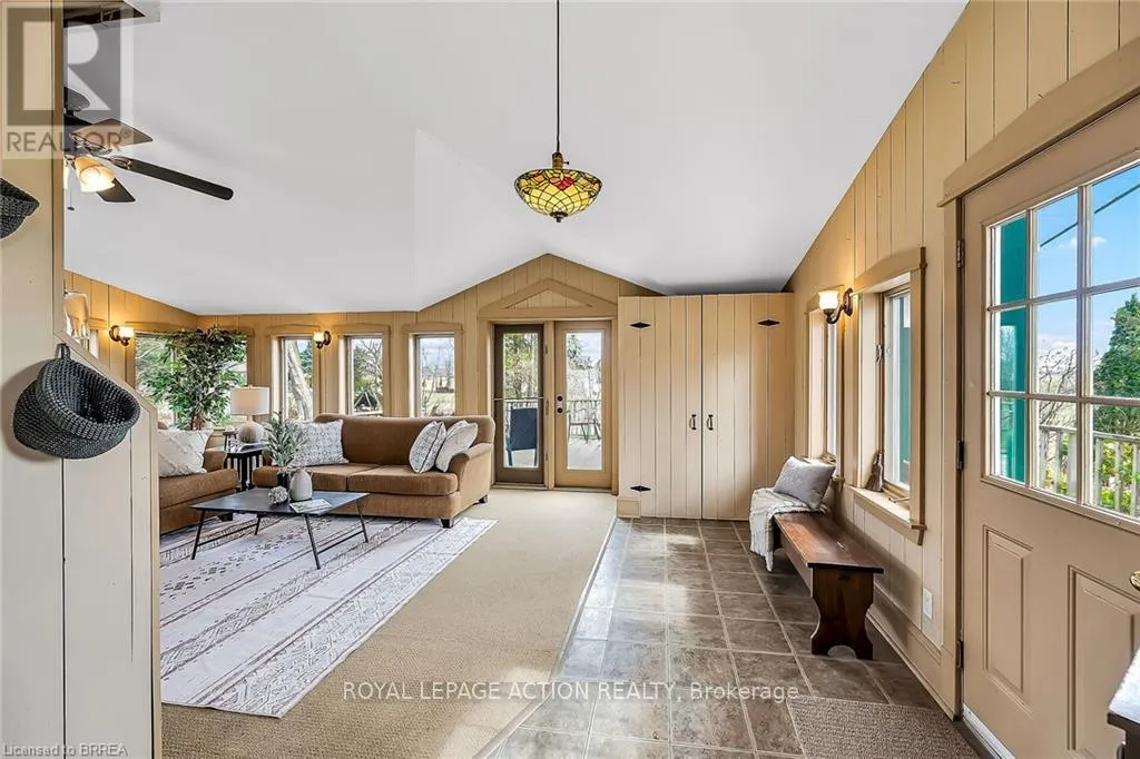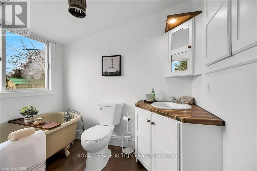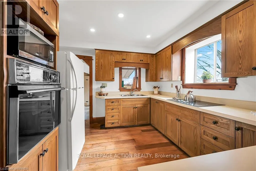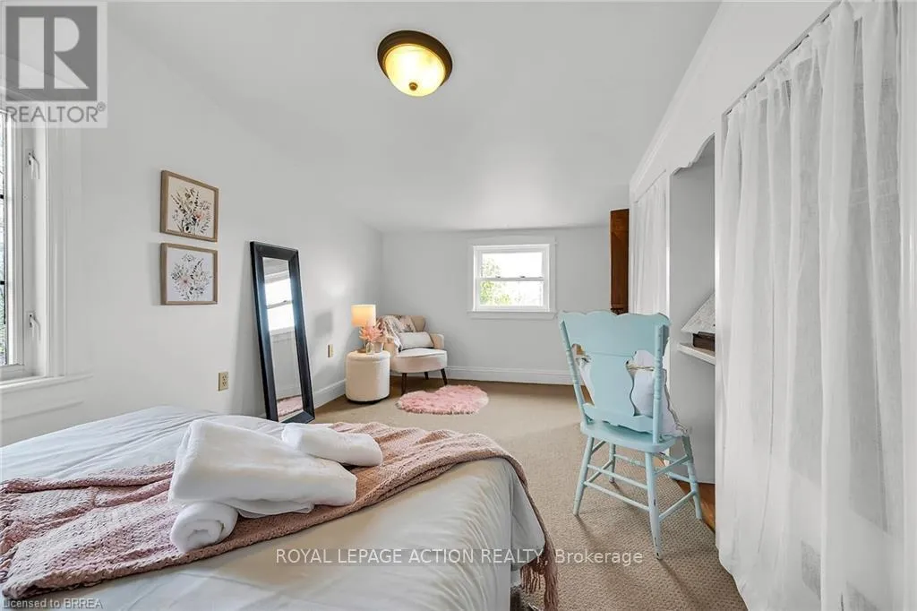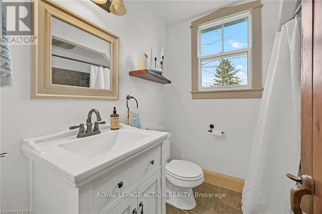 Cross Streets: Mt. Pleasant Road. ** Directions: South on Mt. Pleasant Road to Wetmores Road. Turn left on Wetmores. Property is on the left. Country road, take me home....to this delightful and cozy 1 1/2 storey home with a 28' x 20' workshop. Located in the quaint and highly sought-after village of Mt Pleasant, this home has been artfully enhanced by the owner/master craftsman. One of the many highlights of this home is the bright and spacious family room addition with built-in shelving, tons of windows and a cozy gas fireplace. The kitchen, living and dining rooms boast gorgeous hardwood floors and the living room features custom built-in bookshelves. A 4 pc bath room and main floor laundry complete the main floor. Head up the handcrafted hardwood stairway to the upper level where you'll find a well-appointed primary bedroom with a 3 pc private ensuite. Across the hall is a second bedroom, just as spacious as the primary with a built-in desk and shelving as well as a hidden "room" behind the bedside shelves. The basement has been newly finished with drywall and fresh paint adding additional living space (just add flooring). Outside, there is a new stone walkway leading to the newly added front porch; the perfect place to watch the magnificent sunsets. There is also a wrap around deck at the side and back of the property and a little treehouse 9with hydro) tucked away. The detached workshop features a gas furnace as well as a/c, a 100 amp breaker panel and lots of natural light. With 192' of frontage, the lot is expansive and offers plenty of possibilities. (id:27476)