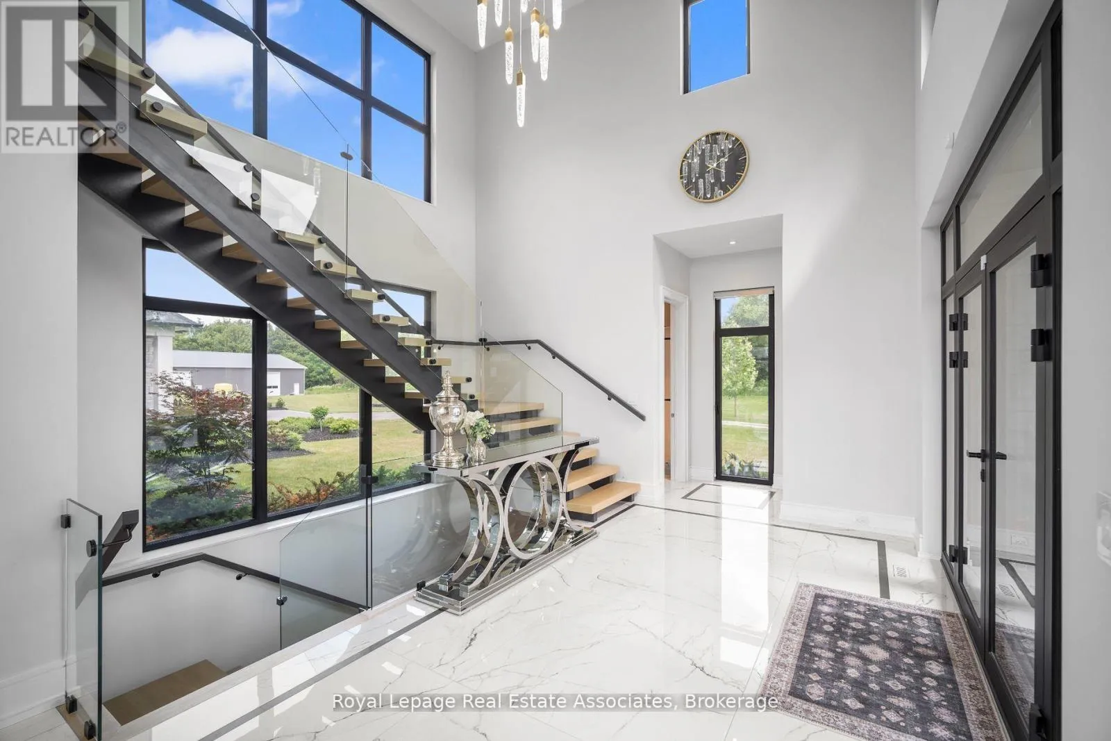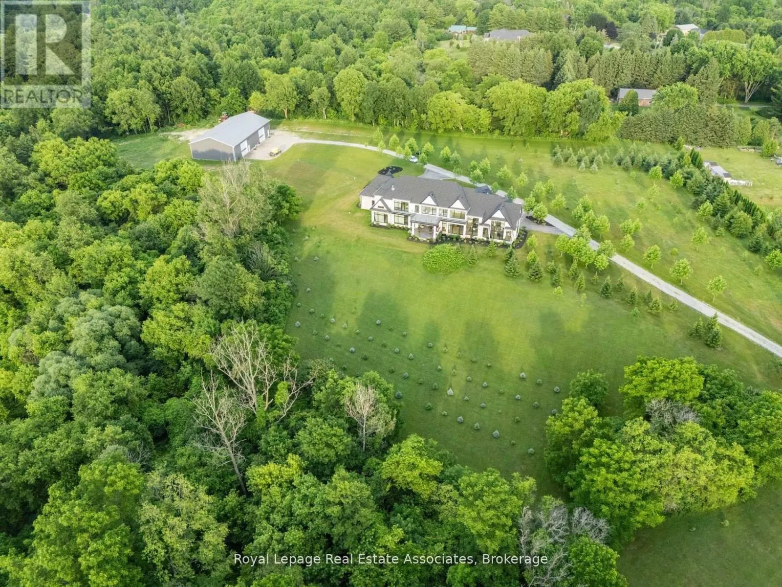 Cockshutt Rd / River Rd Welcome to an architectural masterpiece nestled on 18 private acres of picturesque landscape. This brand-new, custom- built estate is a modern sanctuary that effortlessly blends luxury, design, and nature. Step inside to discover stunning herringbone light hardwood floors, soaring cathedral ceilings, and dramatic black marble accents that create a bold, yet elegant aesthetic. Every inch of this home has been crafted with top-of-the-line imported finishes, from high-end designer lighting to exquisite custom millwork and built-ins. The black-framed, floor-to-ceiling windows flood the space with natural light while perfectly framing the serene outdoor views. The chefs kitchen and open-concept living space are made for both entertaining and everyday luxury. Downstairs, a fully finished basement with a sleek wet bar provides the perfect space for hosting or relaxing. Outside, the grounds are professionally landscaped, offering a private and peaceful setting that feels like your own retreat from the world. This is not just a home it's a lifestyle. A modern design marvel on a breathtaking canvas. (id:27476)