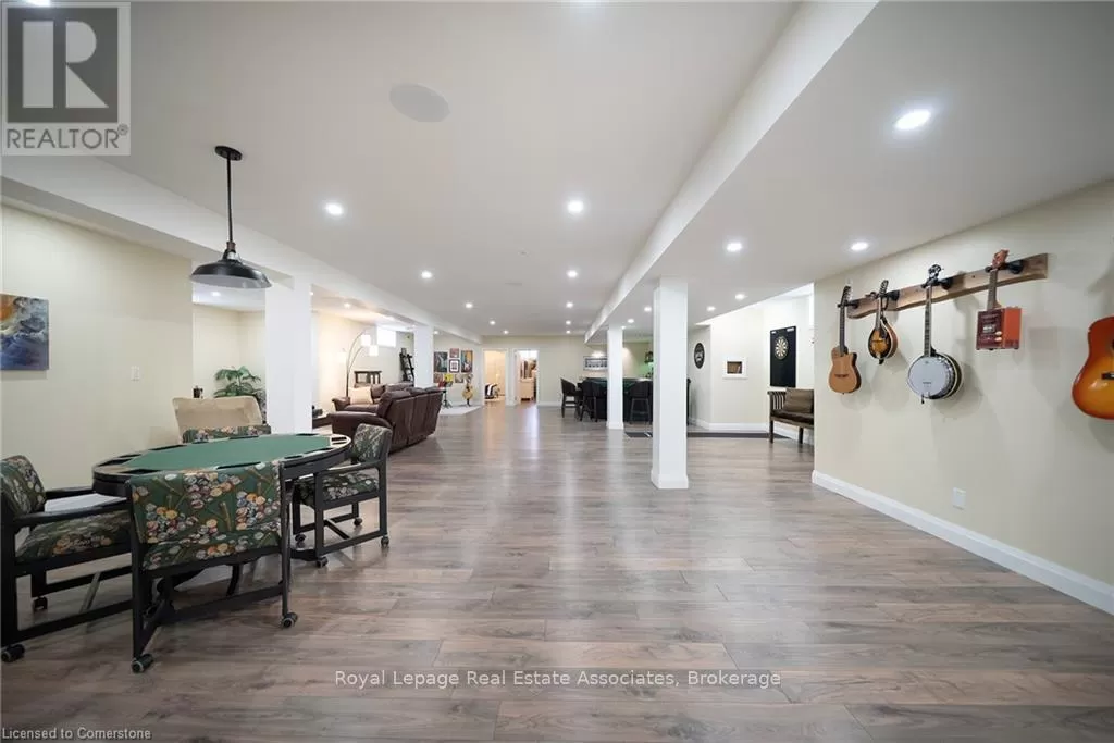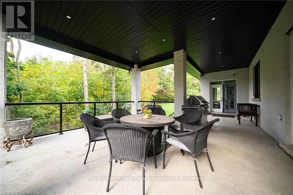 Brant Rd. / McLean School Road **A Private Estate Where Luxury Embraces Nature** Welcome to a rare masterpiece in the serene enclave of St. George. A custom-built bungalow that redefines refined country living. Perfectly placed on a private 1-acre lot and embraced by 10 acres of protected green space, this estate delivers over 7,000 sq. ft. of meticulously crafted living space, where timeless sophistication blends seamlessly with modern comfort. Step inside through a grand custom door into a dramatic foyer, crowned with 16-ft cathedral ceilings that set the stage for everything to come. The awe-inspiring great room, highlighted by a two-sided stone fireplace, opens effortlessly into a chefs kitchen designed for both function and flair. Premium appliances, endless cabinetry, and a versatile walk-in pantry (currently re-imagined as a cozy coffee nook), its a dream for both everyday living and entertaining. A formal dining room, casual breakfast area, and a sunlit sitting room round out the main living space, balancing elegance with warmth. The main floor hosts four spacious bedrooms, including a tranquil primary retreat with spa-like comfort. A designer laundry/mudroom ensures practicality meets style at every turn. Downstairs, discover the ultimate entertainers haven with over 3,000 sq. ft. of finished space featuring a custom wet bar, sprawling rec and games rooms, three additional bedrooms, and even a hidden cold room for extra storage. Outdoors, escape into nature with private walking trails, panoramic views, and a heated workshop. For car enthusiasts, the oversized garage with room for up to nine vehicles is nothing short of extraordinary. Just 10 minutes from Cambridge or Brantford, this home offers an unrivalled blend of privacy, luxury, and convenience. More than a residence its a sanctuary, a statement, and a lifestyle. (id:27476)