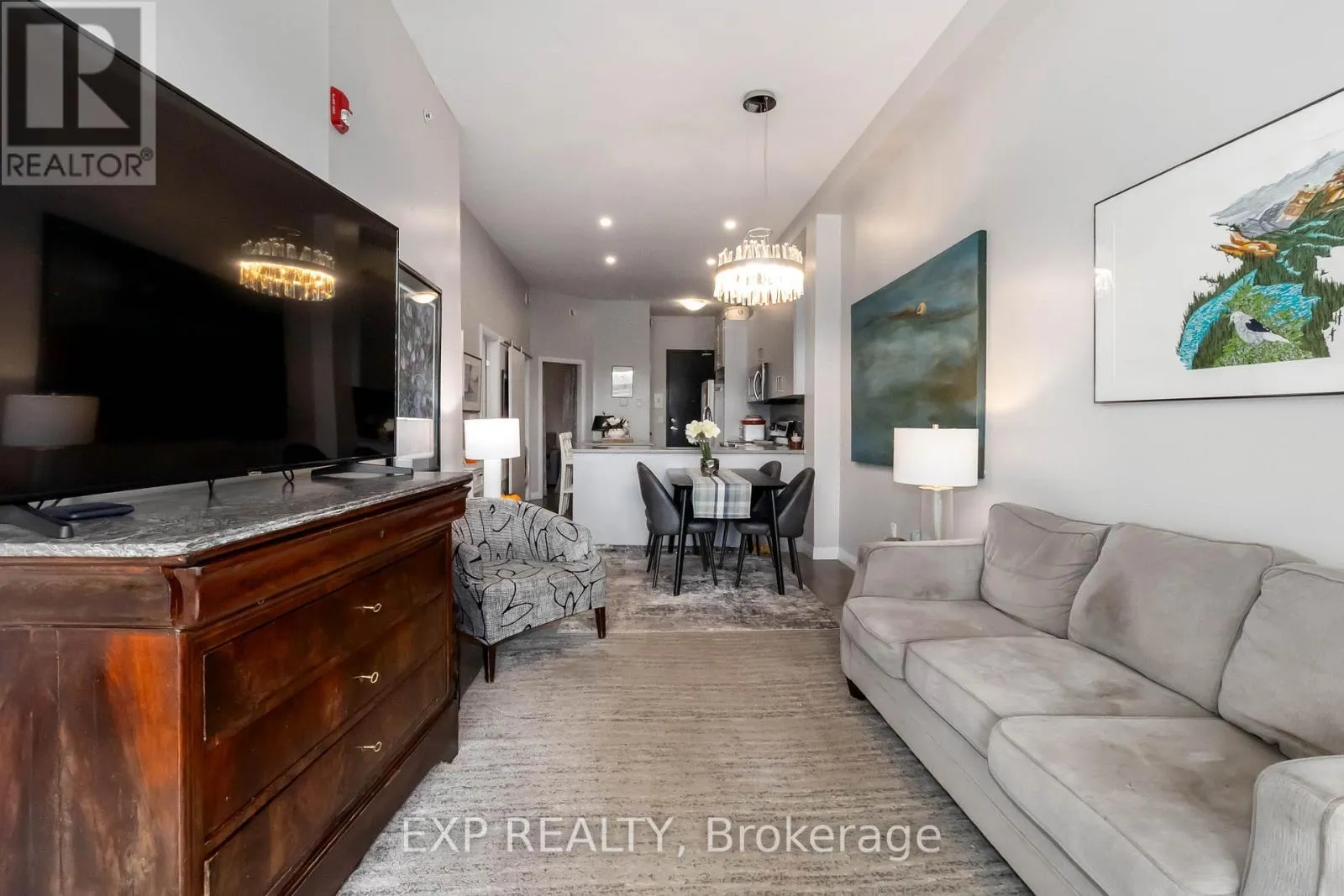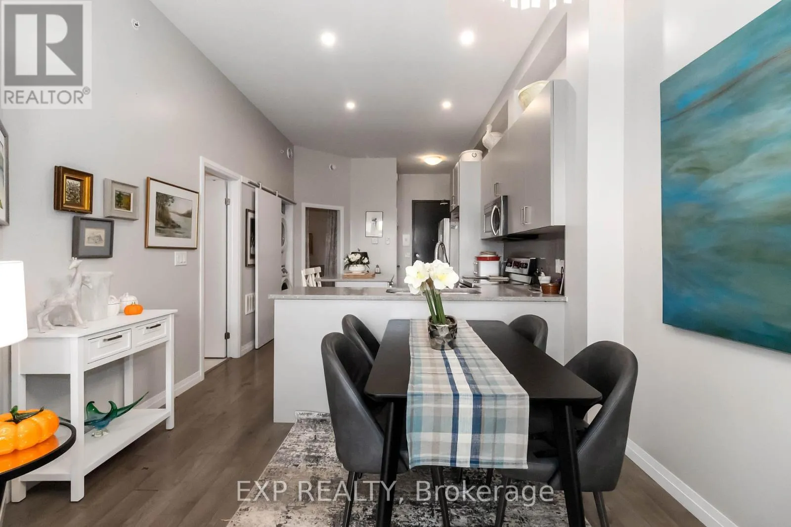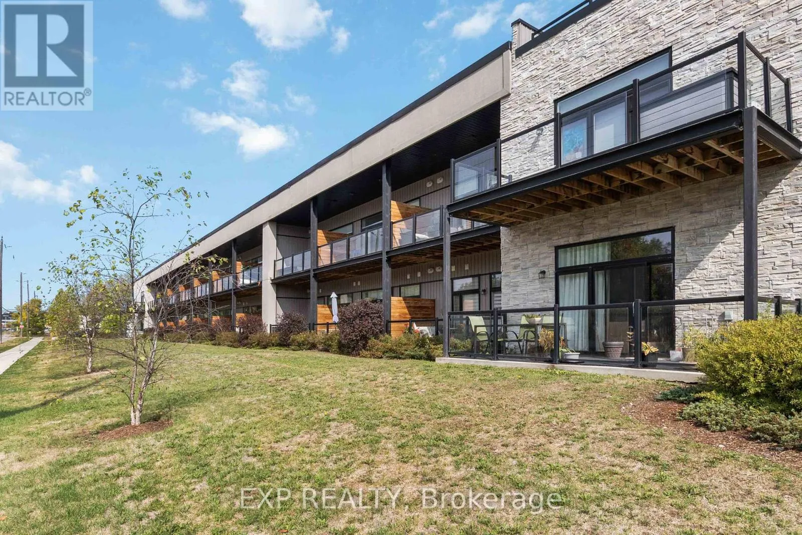 Cross Streets: Holme Street. ** Directions: CORNER OF HOLME ST & MORRELL ST. Experience modern living in this stylish ground-floor 1-bedroom plus den, 1-bathroom suite, thoughtfully designed for both comfort and convenience. Soaring ceilings and a bright, open-concept layout make the spacious living and kitchen area perfect for entertaining, while sleek contemporary finishes and abundant natural light create an inviting atmosphere. Step out onto the generous private balcony, ideal for enjoying morning coffee or relaxing after a long day. This well-appointed unit includes all appliances, in-suite laundry, and one dedicated parking space for added ease. Residents can take advantage of outstanding shared amenities, including an expansive BBQ patio, perfect for outdoor dining and social gatherings. Conveniently located near the Grand River, Rotary Bike Park, Wilkes Dam, Brantford General Hospital, and an array of popular restaurants, this home offers the perfect balance of modern style and everyday practicality. (id:27476)