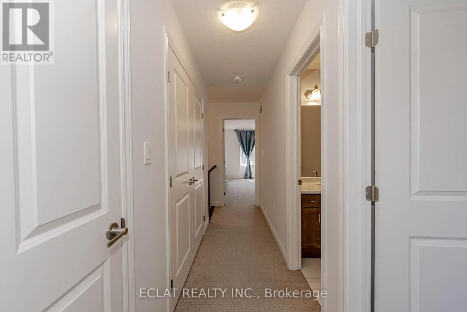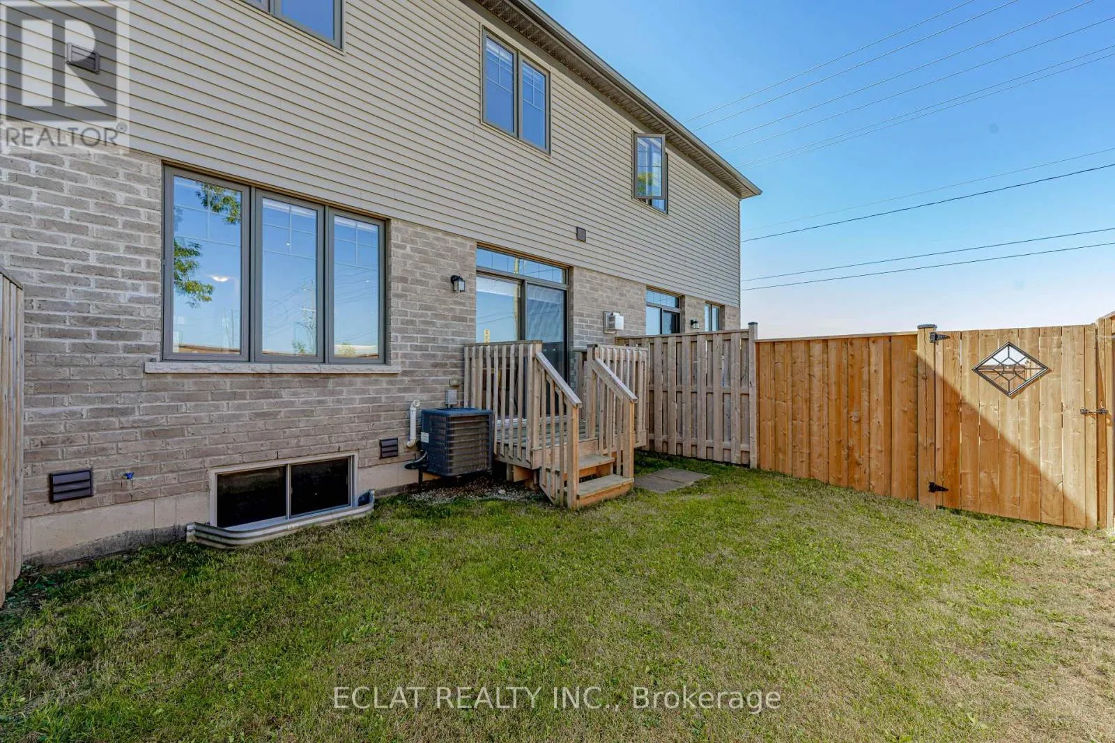Rest Acres Rd & Vic Chambers Place Welcome to this thoughtfully designed executive freehold townhouse, built by award-winning Losani Homes. Offering 1,318 sqft of functional living space, this elegant 3-bedroom, 2.5-bathroom home includes a single-car garage and backs onto a quiet neighborhood park,providing privacy and a peaceful setting with no rear neighbors. Perfectly located just minutes from historic downtown Paris, you will enjoy boutique shops, cafes, and restaurants, all while having quick access to Highway 403 (Rest Acres Road exit viaTom Brown Road).The bright open-concept main floor features engineered hardwood in the living room, a stylish upgraded kitchen with full-height cabinetry, Caesarstone quartz countertops, and stainless steel appliances, plus a welcoming 9 ft. entrance ceiling. An oak staircase leads to the upper level, creating a seamless flow throughout the home.Upstairs, the spacious primary bedroom includes a walk-in closet and 3-piece ensuite. The second floor also offers a walk-in laundry room upgraded with custom cabinetry, providing both convenience and extra storage. A patio door opens to the backyard, where you can relax while overlooking the ravine andwalking trail. Nearby amenities include the towns Fairgrounds, Two Rivers Stadium, the Community Centre, local library, hospital, and the Brant Sports Complex, all just a short drive or walk away. Blending modern finishes, a private natural setting, and small-town charm, this move-in ready home is a perfect fit for families, professionals, or downsizers seeking a low-maintenance lifestyle in one of Ontarios most desirable communities. ****Plus, the owned water filtration system adds extra comfort and peace of mind.***** (id:27476)
