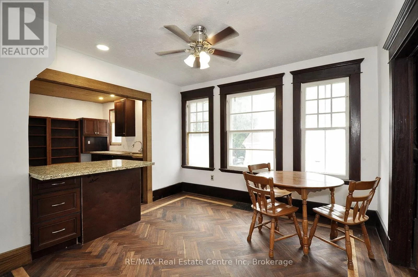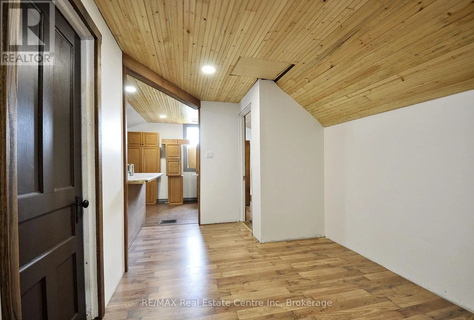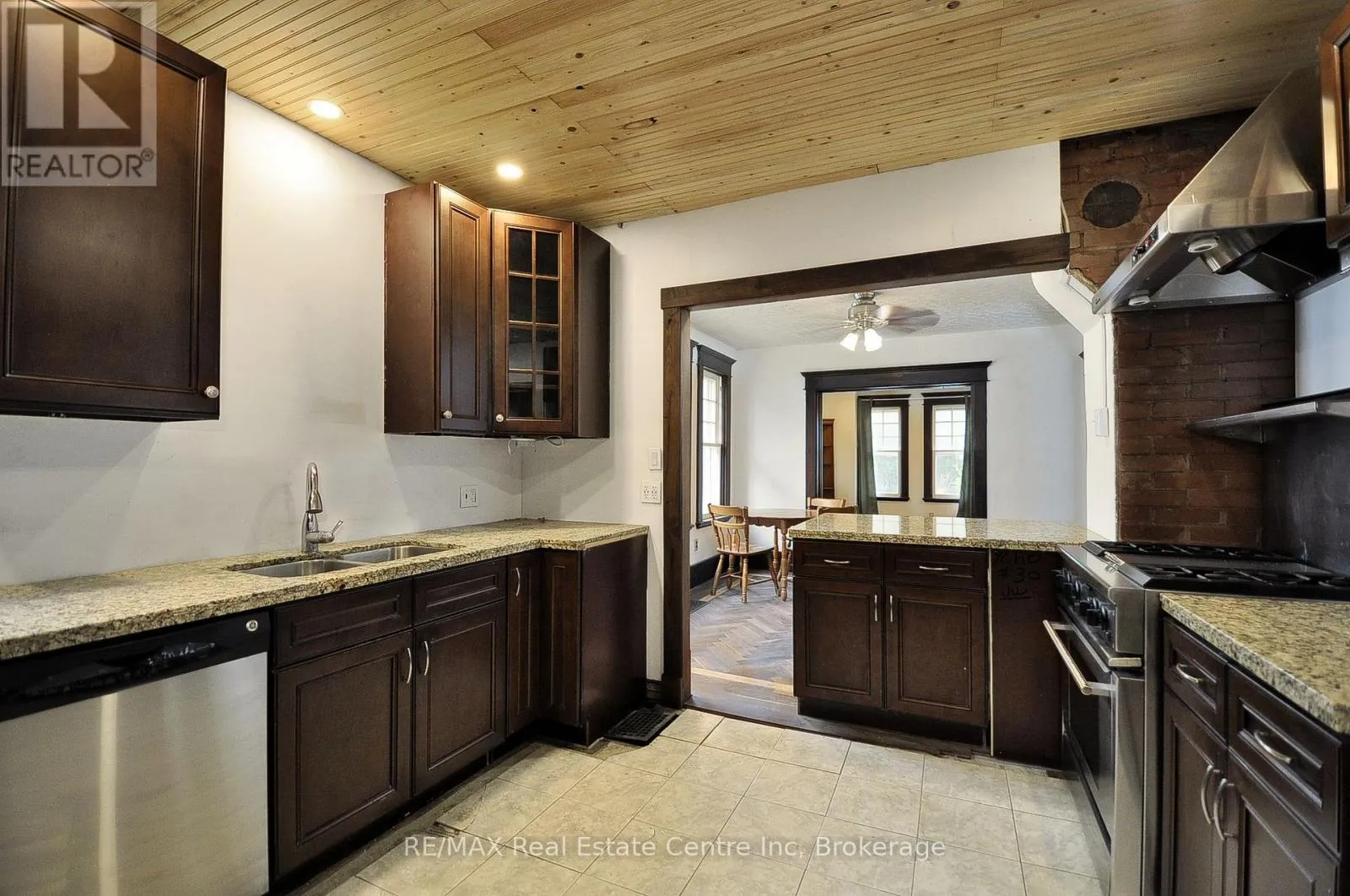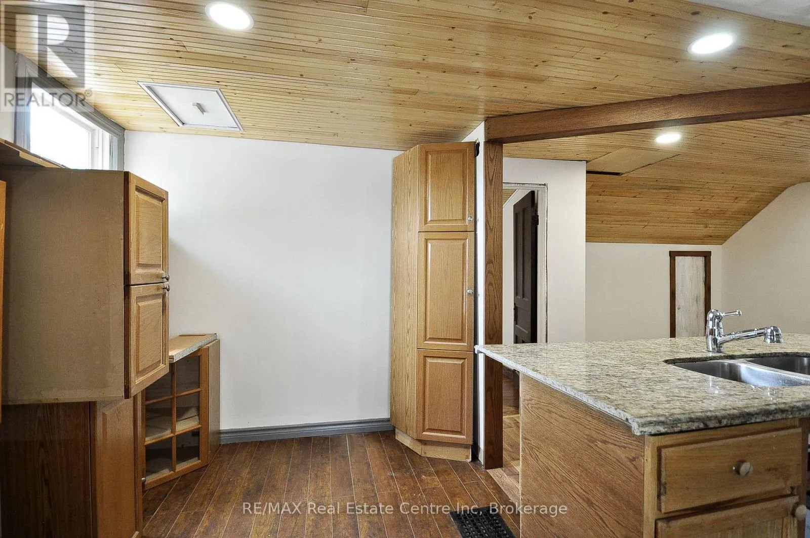 Cross Streets: Maple Avenue. ** Directions: Between Maple Ave & St William St. Welcome to 141 King Street in the quaint and friendly community of Burford-a small-town gem in Brant County known for its welcoming atmosphere, local shops, and close-knit feel, all just minutes from Brantford and Highway 403. This spacious 1 3/4-storey, 3-bedroom, 2-bathroom home offers a fantastic blend of updated features and untapped potential, giving you the perfect canvas to personalize and complete to your style. Inside, you'll find custom-designed hardwood flooring, a carpet-free layout, and a traditional wood staircase with an accent wall that sets a warm, inviting tone. The main floor offers generous living and dining spaces, some updates in the kitchen with granite counters, pot lights and cabinetry, a 3-piece bathroom, and a flex room that can serve as a den, office, or main-floor bedroom. Enjoy the sunshine year-round from the enclosed rear sun porch, perfect for relaxing with your morning coffee. Upstairs, you'll find two bright bedrooms, a 3-piece bathroom, and a roughed-in kitchen area with sink & granite counters & cabinets ready to install to your preference-ideal for a second suite, in-law setup, or convert it easily into a spacious third upstairs bedroom. The basement includes a recreation room, abundant storage, and space for a workshop or hobby area. Out back, a detached garage/workshop is wired with 100-amp hydro, ready for tools, projects, or even a home business. Located in a convenient, family-friendly neighbourhood within walking distance to parks, shops, and schools, this property offers the comfort of country living with the convenience of nearby urban access. Whether you're a handy first-time buyer, growing family, or investor looking for multi-generational potential, 141 King Street offers character, a number of updates, and a chance to make it your own in a community you'll love. (id:27476)