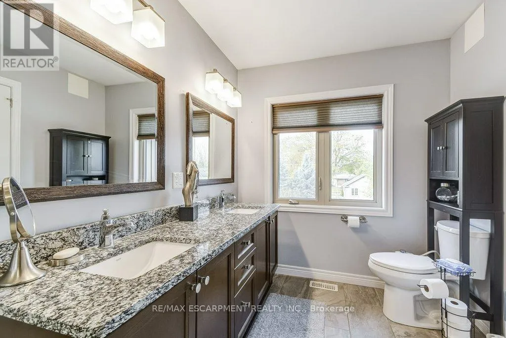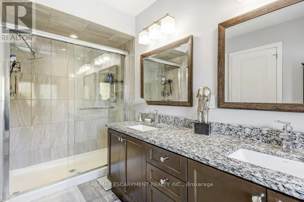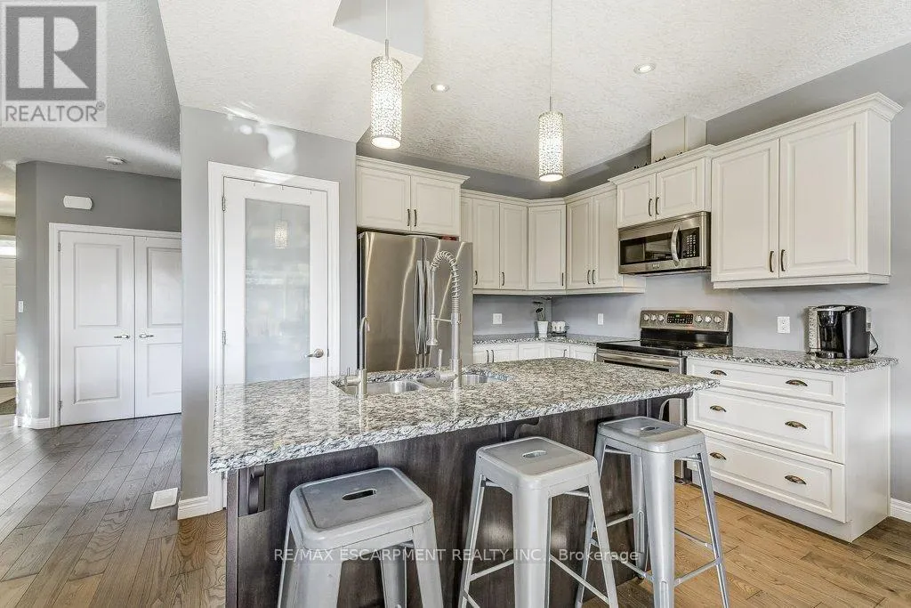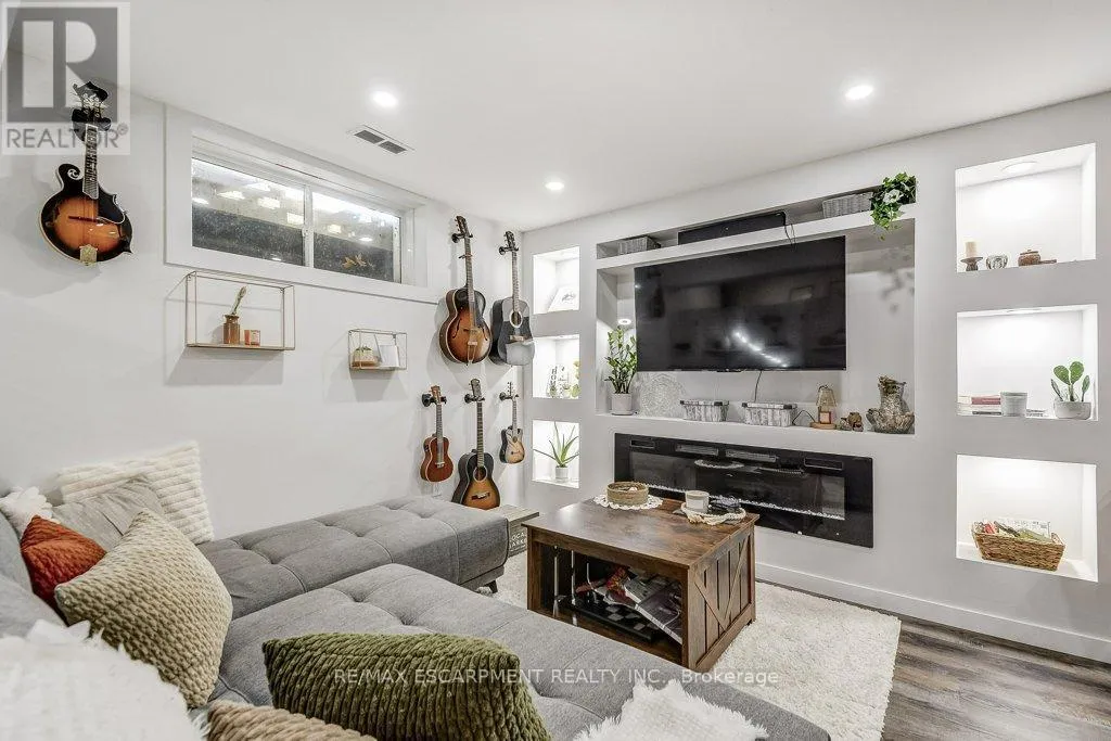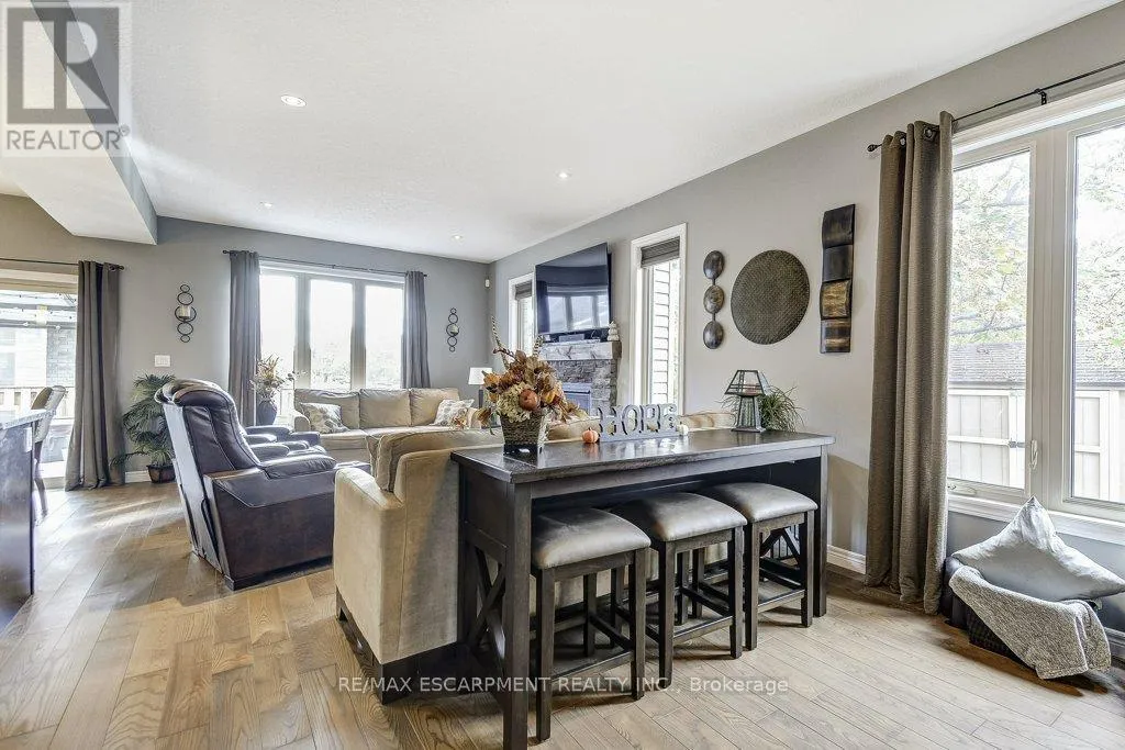 Cross Streets: Oak Avenue. ** Directions: Grand River St N to Scott Avenue. Stunning, move-in ready semi-detached home offering approximately 2,000 sq. ft. PLUS a finished basement in one of Paris' most desirable north-end neighbourhoods. Thoughtfully designed with comfort and style in mind, this home blends upscale finishes with a warm, inviting feel. The main level features an open-concept layout with 9-foot ceilings, large windows and a gorgeous stone fireplace as the focal point of the living room. The kitchen is the heart of this home with granite countertops, pantry, under mount double sink and a large island perfect for casual dining or entertaining. Hardwood and ceramic flooring are complemented by neutral tones and custom lighting. Upstairs, you'll find three spacious bedrooms, including a serene primary suite with a large walk-in closet and a spa- inspired ensuite featuring a double vanity with quartz counters and a stylish glass shower. A 4-piece main bath and a dedicated laundry room with a sink add everyday convenience. The finished lower level expands your living space with a bright and welcoming family room featuring sleek built-ins, accent lighting, and a modern fireplace. This level also includes a stylish 4-piece bath. This extra space is ideal for entertaining, movie nights, or hosting guests. Outside, enjoy a fully fenced backyard complete with a large deck, hot tub and stone patio area -whether the plan is to relax or entertain under the stars, this yard will satisfy those desires. Located close to parks, schools and all the charm downtown Paris has to offer, this home truly has it all-modern comfort, timeless design, and unbeatable location. (id:27476)