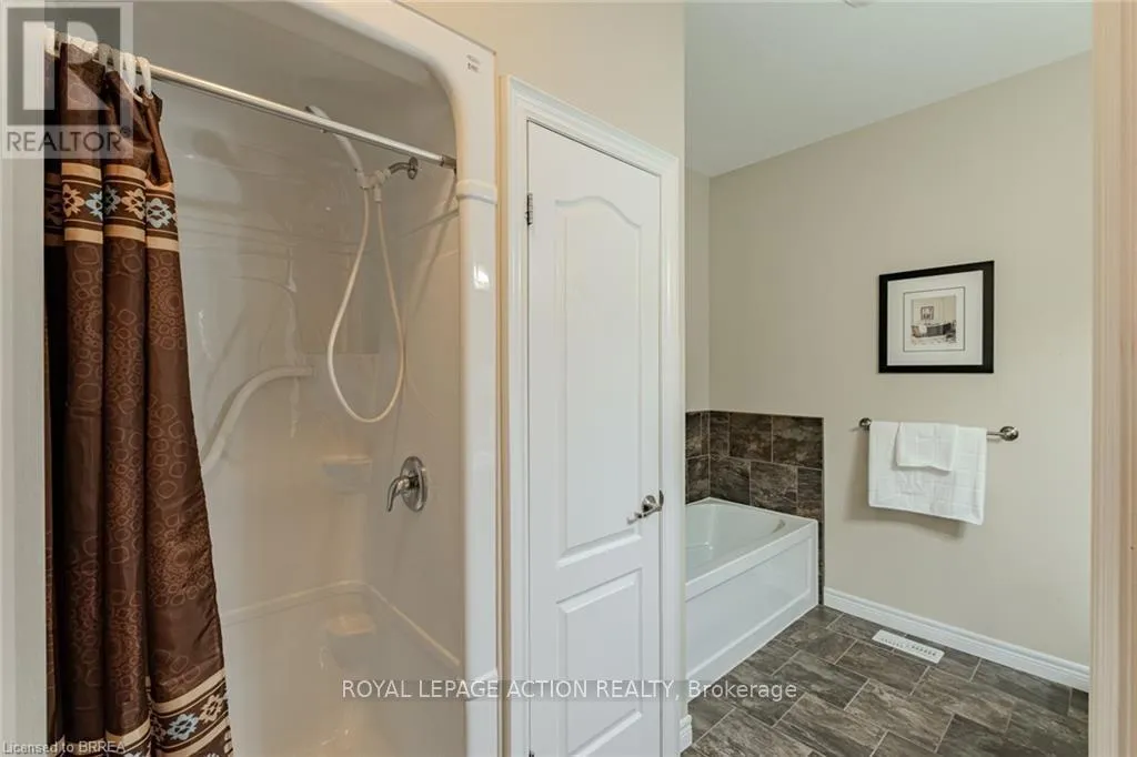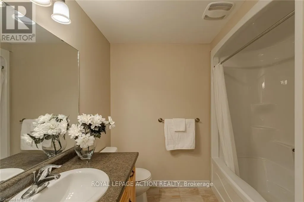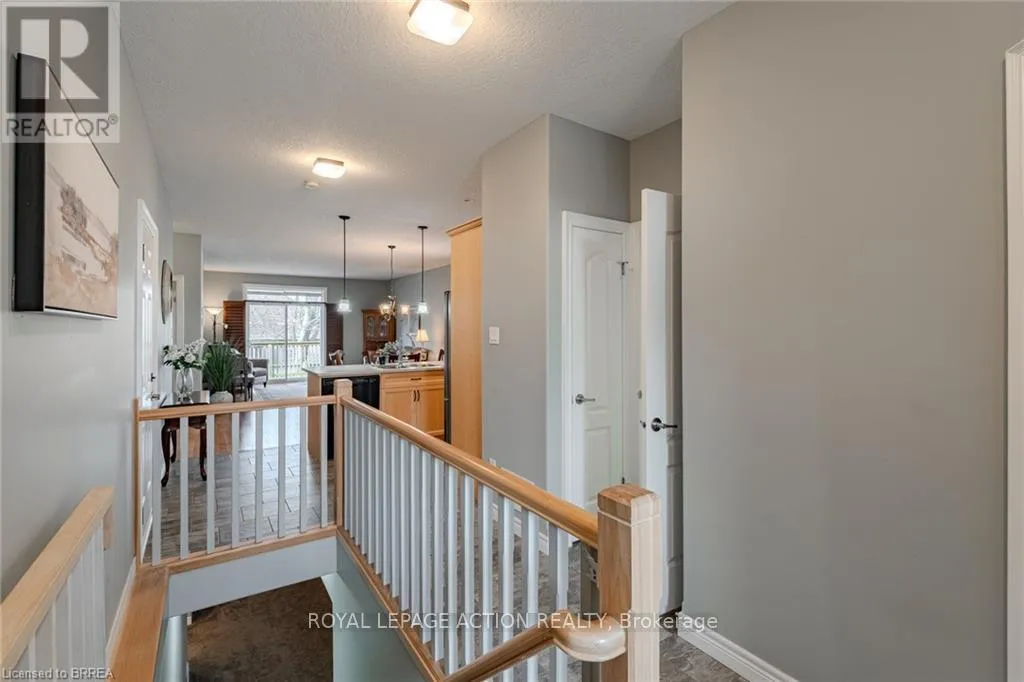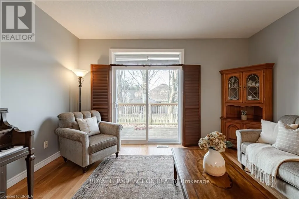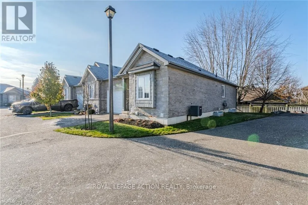 Cross Streets: King Edward Street. ** Directions: Take a Left onto King Edward Street from Rest Acres Road. Then, Turn Right on Dundas Street W. Condo Complex is on the Right Hand Side. This beautifully maintained end-unit Fairfield model bungalow was built by Pinevest Homes. Situated in a quiet, friendly condominium community, the move in ready home features comfortable main-floor living with thoughtful design throughout. A spacious foyer with ceramic tile leads to a versatile room with hardwood flooring, the perfect spot for a bedroom, office, den, or hobby space-and nearby is a 2-piece bath with convenient main floor laundry nook. The open-concept main level includes a bright, airy kitchen with ceramic floors, rich wood cabinetry, centre island, & recessed lighting. Flowing seamlessly into the living/dining area are gleaming hardwood floors, custom California shutters, & abundant natural light that fills the space. A glass door opens to a private deck with electric awning, offering a serene spot for relaxing, shaded by mature maple trees that provide both beauty and privacy. The spacious primary bedroom boasts a double closet & plush broadloom flooring. A few steps away is a 4-piece bath featuring a separate shower & soaker tub for ultimate relaxation. Direct access to the attached single-car garage from this level enhances everyday convenience. The finished lower level further expands the living space with a large recreation room ideal for family gatherings or movie nights, an additional bedroom, 4-piece bath, & a utility/storage room that adds practical functionality. Additional highlights include 9-foot ceilings, newer shingles, high-efficiency furnace, and new refrigerator. Spotlessly maintained this home provides exceptional value, comfort, and functionality in a sought-after, well-managed complex community. Ideally situated just minutes from vibrant downtown Paris-and close to amenities, highway access, schools, & shopping-this home offers an exceptional mix of comfort, quality, & convenience. (id:27476)