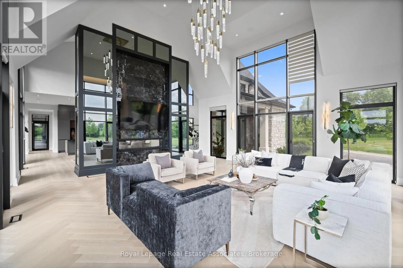 Cockshutt Rd / River Rd Welcome to an architectural masterpiece nestled on 18 private acres of picturesque landscape. This brand-new, custom- built estate is a modern sanctuary that effortlessly blends luxury, design, and nature. Step inside to discover stunning herringbone light hardwood floors, soaring cathedral ceilings, and dramatic black marble accents that create a bold, yet elegant aesthetic. Every inch of this home has been crafted with top-of-the-line imported finishes, from high-end designer lighting to exquisite custom millwork and built-ins. The black-framed, floor-to-ceiling windows flood the space with natural light while perfectly framing the serene outdoor views. The chefs kitchen and open-concept living space are made for both entertaining and everyday luxury. Downstairs, a fully finished basement with a sleek wet bar provides the perfect space for hosting or relaxing. Outside, the grounds are professionally landscaped, offering a private and peaceful setting that feels like your own retreat from the world. This is not just a home it's a lifestyle. A modern design marvel on a breathtaking canvas. (id:27476)