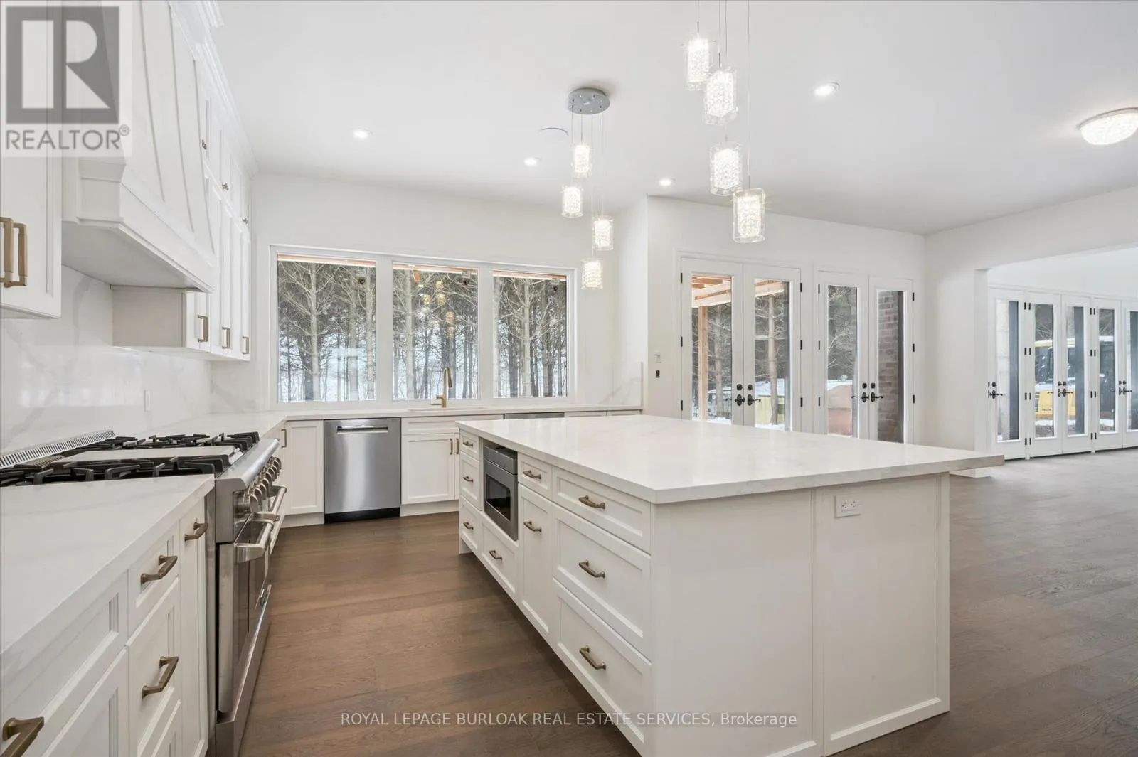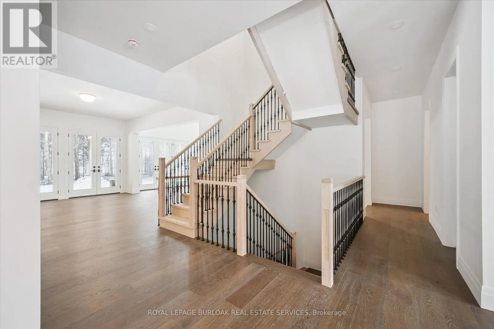 Cross Streets: Brant School. ** Directions: Brant School to West Harris. Tucked away in the quiet, tranquil outskirts of Brantford, this exceptional 5,000 sq. ft. new build sits on nearly 3 acres of land. Surrounded by towering evergreens and backing onto Fairchild Creek, 5 West Harris Rd. offers a rare sense of privacy and natural beauty-seamlessly paired with refined luxury living. The home features expansive living spaces with soaring cathedral ceilings, rich engineered hardwood flooring throughout, and modern finishes. Large windows frame breathtaking views of the private, wooded surroundings, creating a seamless connection to nature. Just off the front door, a dedicated home office provides a quiet workspace. A formal living room and separate formal dining room offer elegant spaces for entertaining, while the chef's kitchen, designed for everyday living and gatherings, features high-end appliances, extensive cabinetry, a large centre island, a convenient servery, and an additional dining area opening effortlessly to the family room. Upstairs, four spacious bedrooms each feature their own private ensuite. The primary suite is a true retreat, complete with a generous bedroom, spa-inspired ensuite featuring a freestanding tub, a massive walk-in shower, and an expansive walk-in closet with a skylight that pours natural light into the space. The full basement provides a blank canvas to tailor to your lifestyle-ideal for a home theatre, gym, bar, or games room. Step outside to a pool-sized backyard with a covered outdoor living area, perfect for relaxing or entertaining while immersed in nature. (id:27476)