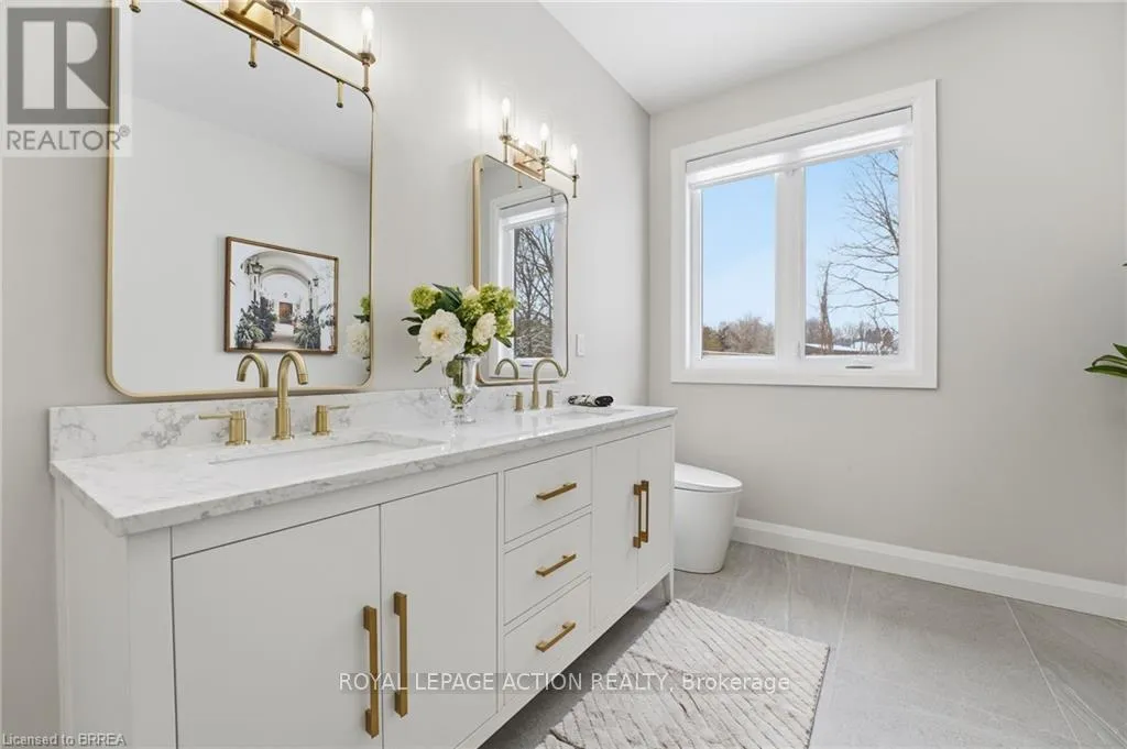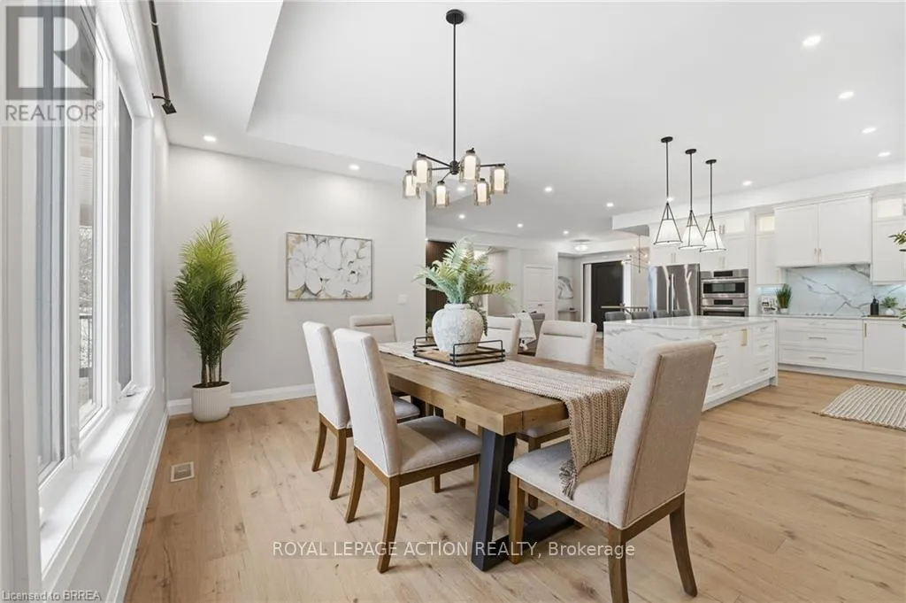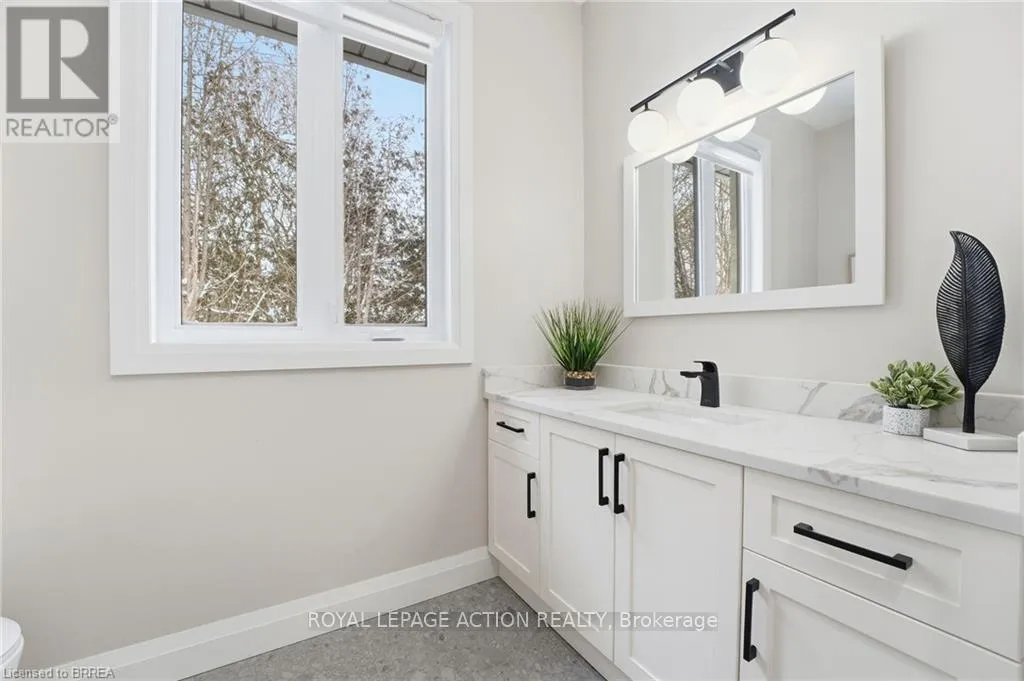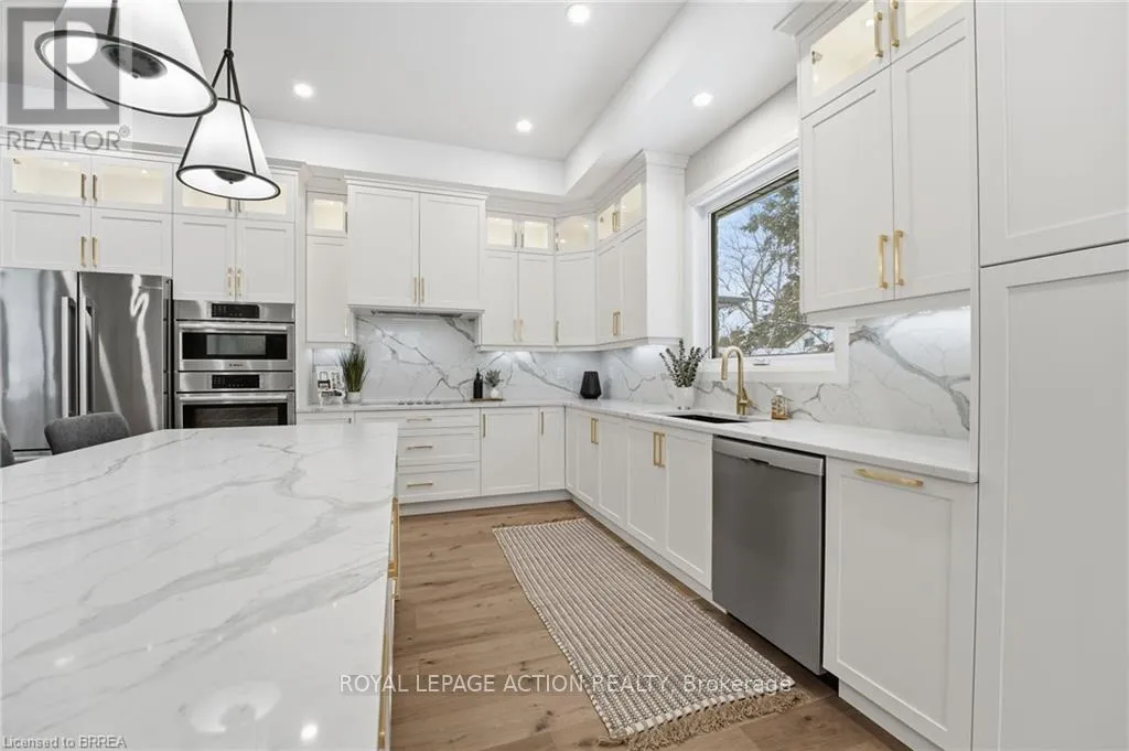 Cross Streets: Oakland Road. ** Directions: Highway 24 to Oakland Road to Kings Lane. This stunning 2,119 sq ft executive bungalow delivers the perfect balance of luxury finishes, thoughtful design, and peaceful country living minutes from the city! Set on a 0.63-acre lot, this home offers exceptional curb appeal with a 3 car garage and ample parking for vehicles, toys, or trailers. A standout feature is the pull-through door on the back of the garage, perfect for hobbyists, car enthusiasts, or anyone needing extra storage and functionality. Step inside to a bright, sophisticated interior featuring 10ft ceilings, 7ft doors, and engineered hardwood flooring throughout. The stunning chef's kitchen is thoughtfully designed with high-end appliances, premium cabinetry, and elegant quartz countertops & backsplash. With generous prep space & a layout ideal for entertaining, the kitchen flows effortlessly into the spacious dining area & bright living room. You will find a custom gas fireplace with built-in cabinetry, creating a warm and elevated gathering space. Step onto the covered back porch and take in the peaceful views of your scenic backyard. The home offers 3 bedrooms, including a luxurious primary suite with walk-in closet and spa-like ensuite with double vanity & glass shower. Two additional bedrooms & a 4pc main bathroom provide comfort for family or guests. For everyday convenience, enjoy a large mudroom/laundry room off the garage and a 2pc powder room to complete the main level. The basement offers exceptional future potential with 9ft ceilings, large windows, and garage access, making it ideal for a future in-law suite, additional living space, or custom development. Located in the charming Town of Scotland, this home offers the tranquility of country living with the convenience of being close to the HWY and amenities. A true modern executive bungalow, built with quality, attention to detail, and craftsmanship throughout. This is an amazing opportunity to own a newly built luxury home on a premium lot! (id:27476)