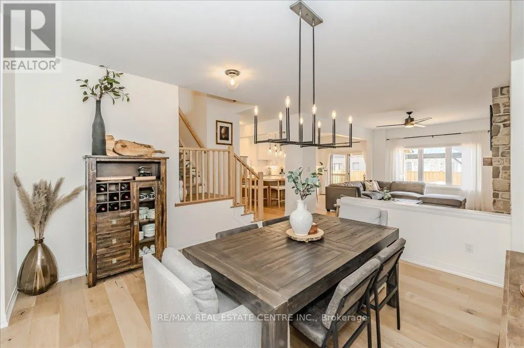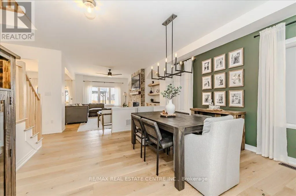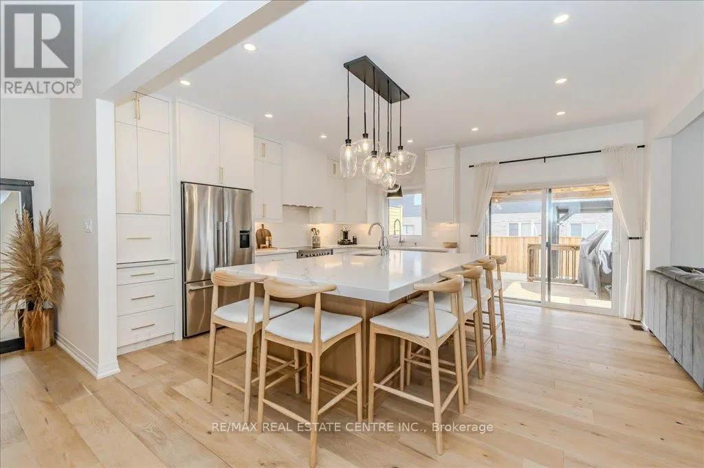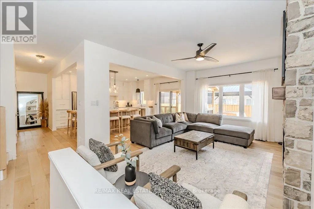 Cross Streets: Rest Acres. ** Directions: Rest Acres Rd. to Scenic Ridge Gate. Stunning 4-bedroom, 3.5-bathroom home in the heart of Paris, Ontario, built by LIV Communities, offering 2,646 sq ft of luxurious living space. This fully upgraded home features wide plank European white oak hardwood throughout, 9-foot ceilings on the main floor, and custom lighting and window shades throughout (2022). The grand living room boasts a quarried stone fireplace with custom white oak built-ins and a large premium Napoleon gas fireplace (2023). The chef-inspired kitchen (2022) is a dream, with floor-to-ceiling soft-close cabinetry, a 36" Fischer & Paykel induction range, Miele dishwasher, and an oversized quartz island with seating for six. Enjoy convenient extras like a built-in Insinkerator for instant near-boiling water, reverse osmosis system, a large pantry, and hidden appliance garage.The spacious primary ensuite offers a large double vanity, tempered glass shower, and a large soaker tub. Two more bedrooms offer a Jack & Jill ensuite bathroom and the third bedroom boasts its own ensuite bathroom. The upstairs is complete with an LG washer and dryer (2021) which provides added convenience. The private backyard features a new wooden privacy fence (2024), a two-tiered deck (20' x 25'), and a new 12' x 10' gazebo, perfect for entertaining. Additional highlights include a 4-car driveway, 2-car garage with Wi-Fi opener, and a covered porch and second floor balcony. The basement is unspoiled and waiting for your finishing touches.This home blends modern upgrades with classic craftsmanship and is ready for you to move in and enjoy. (id:27476)
