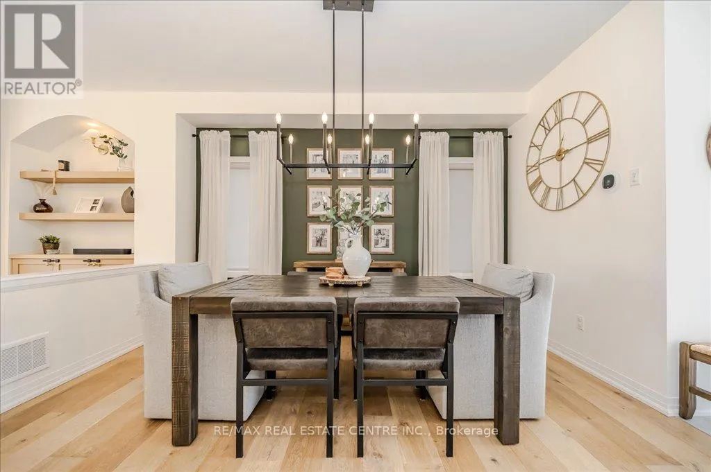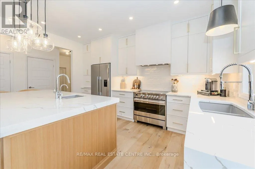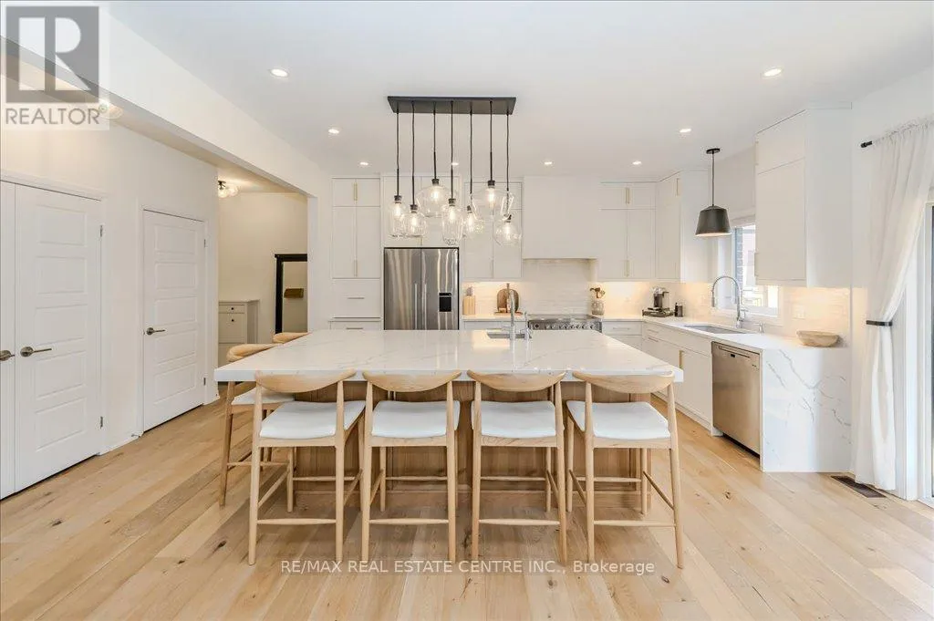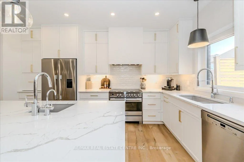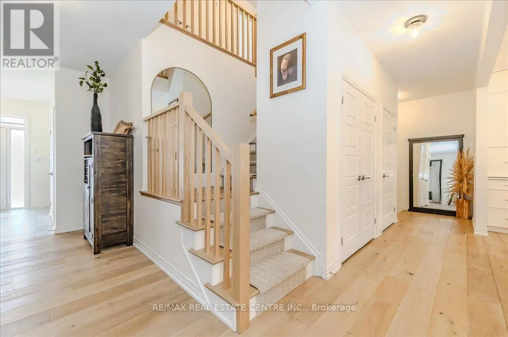 Cross Streets: Rest Acres. ** Directions: Rest Acres Rd. to Scenic Ridge Gate. Stunning 4-bedroom, 3.5-bathroom home in the heart of Paris, Ontario, built by LIV Communities, offering 2,646 sq ft of luxurious living space. This fully upgraded home features wide plank European white oak hardwood throughout, 9-foot ceilings on the main floor, and custom lighting and window shades throughout (2022). The grand living room boasts a quarried stone fireplace with custom white oak built-ins and a large premium Napoleon gas fireplace (2023). The chef-inspired kitchen (2022) is a dream, with floor-to-ceiling soft-close cabinetry, a 36" Fischer & Paykel induction range, Miele dishwasher, and an oversized quartz island with seating for six. Enjoy convenient extras like a built-in Insinkerator for instant near-boiling water, reverse osmosis system, a large pantry, and hidden appliance garage.The spacious primary ensuite offers a large double vanity, tempered glass shower, and a large soaker tub. Two more bedrooms offer a Jack & Jill ensuite bathroom and the third bedroom boasts its own ensuite bathroom. The upstairs is complete with an LG washer and dryer (2021) which provides added convenience. The private backyard features a new wooden privacy fence (2024), a two-tiered deck (20' x 25'), and a new 12' x 10' gazebo, perfect for entertaining. Additional highlights include a 4-car driveway, 2-car garage with Wi-Fi opener, and a covered porch and second floor balcony. The basement is unspoiled and waiting for your finishing touches.This home blends modern upgrades with classic craftsmanship and is ready for you to move in and enjoy. (id:27476)
