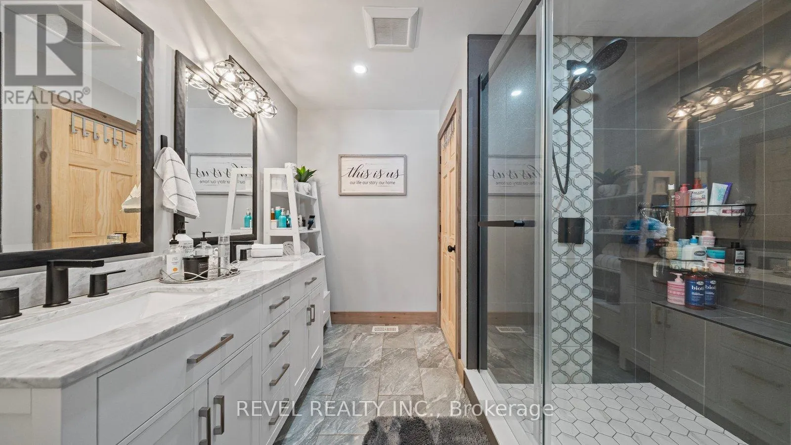 Cross Streets: Oakland Rd/Brant County Rd, turn right onto Kings Lane. ** Directions: From Hwy 24, turn right onto Oakland Rd/Brant County Rd, Turn right onto Kings Lane. Looking for Custom Country Living with a Designer Touch? Then 6 Kings Lane in Scotland is your dream home! Step into your own slice of country paradise in this impeccably designed 2022 custom bungalow, nestled on nearly an acre in the peaceful and family-friendly community of Scotland. With a warm, modern farmhouse feel and every detail thoughtfully curated, this home offers the perfect blend of luxury, comfort, and functionality. Featuring 4 spacious bedrooms (1 up, 3 down), 2.5 bathrooms, and over 2,800 sq ft of finished living space, this home is designed for how families live today. On the main floor, enjoy a light-filled open-concept layout anchored by a dream kitchen with sleek appliances, expansive island seating, and rich wood cabinetry that flows beautifully into the dining and living areas. Retreat to the main-floor primary suite, complete with a stunning spa-inspired ensuite and a large walk-in closet-your own private oasis. Downstairs, the fully finished lower level expands your lifestyle with a generous rec room, three additional bedrooms, and a well-appointed bathroom featuring three vanities and a private water closet with a toilet and shower-perfect for busy mornings or hosting guests. Outside, enjoy your own backyard retreat with an above-ground pool, ample yard space, and scenic country views. And for those needing more than just a garage-prepare to be impressed: the 30' x 40' heated shop is fully equipped with hydro, water, and a car hoist, making it ideal for entrepreneurs, trades, or serious hobbyists. A rare find that combines modern luxury with small-town charm, 6 Kings Lane is everything you've been waiting for - and more. (id:27476)