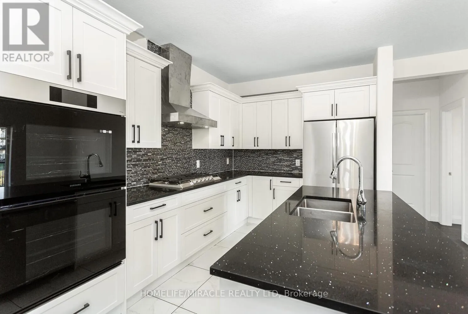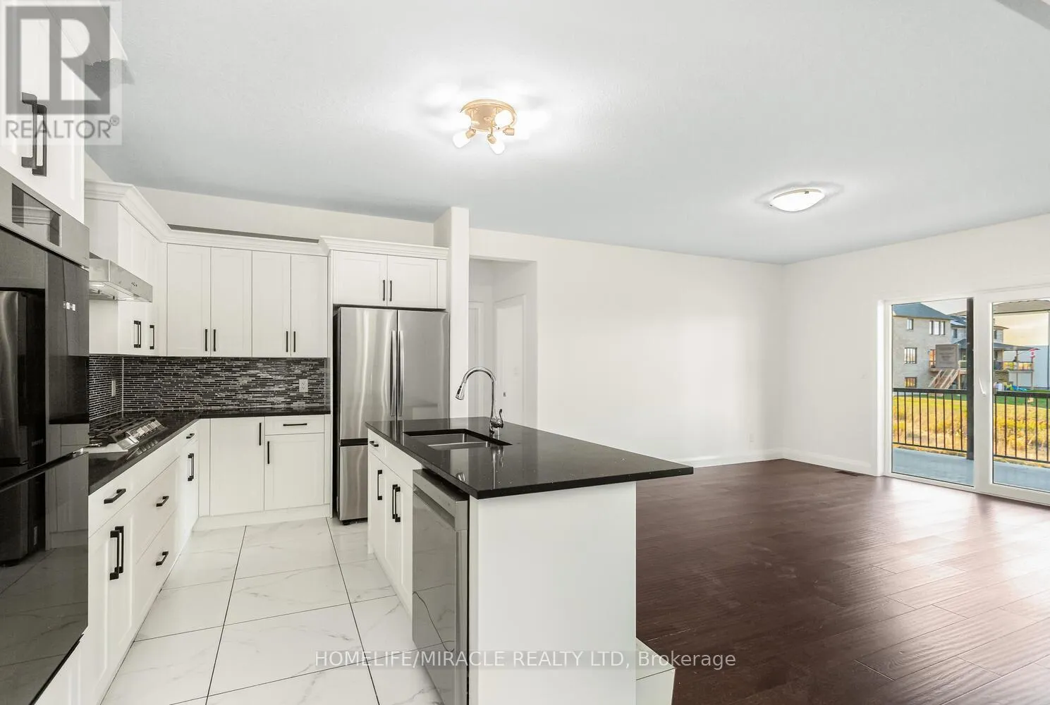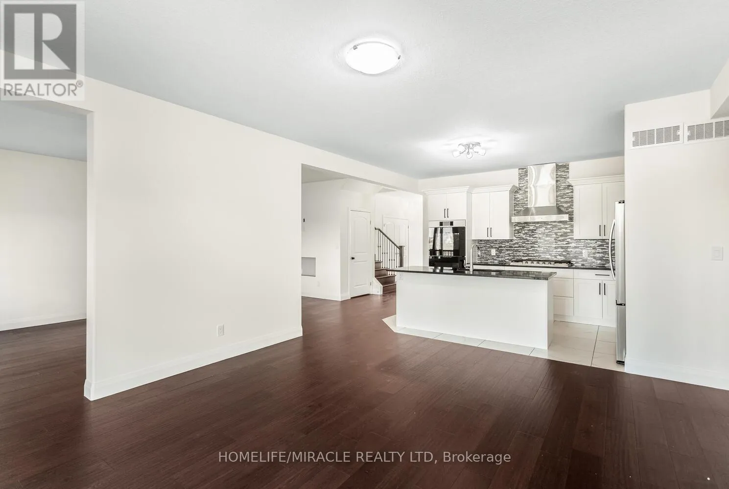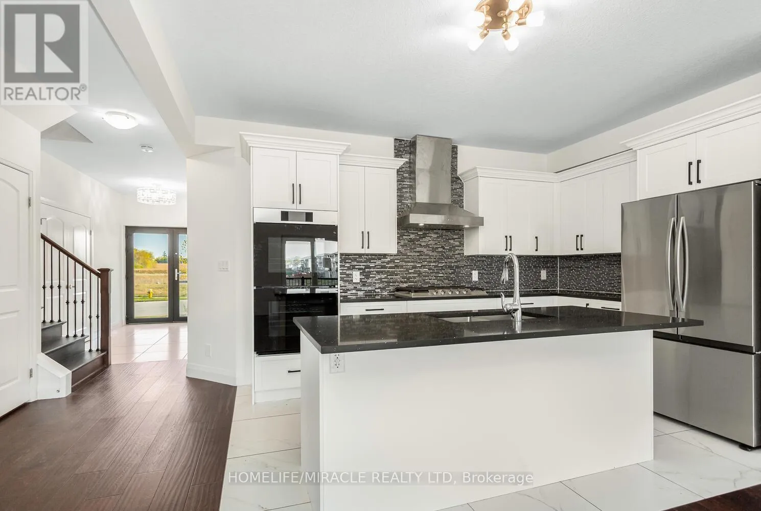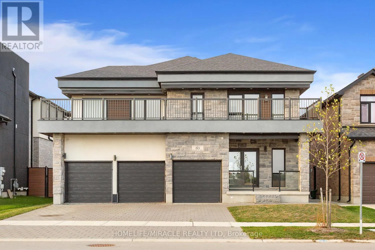 Grandville Circle & Rest Acres Road Welcome to 80 Grandville Circle, featuring the sought-after Taj - The Modern Model with an upgraded elevation that includes elegant partial stone detailing. This stunning 5-bedroom, 4-bathroom detached home offers a functional and spacious floor plan with approximately 3,720 sq. ft. of total living space, including the garage. The open-concept main floor showcases a chef's kitchen with upgraded cabinetry, sleek countertops, and brand new appliances including a fridge, cooktop, hood, built-in microwave oven, washer, and dryer. A rare main-floor bedroom with a full bath adds versatility for guests or multigenerational living. The inviting living room is anchored by a cozy fireplace slot and expansive windows that fill the space with natural light. Upstairs, the luxurious primary suite features a spa-inspired ensuite and access to a large balcony deck, perfect for morning coffee or evening relaxation. With a walk-out unfinished basement, 3-car garage, and a premium ravine lot (50.21 x 114.42 ft), this home combines style, comfort, and location in one exceptional package. Located in the heart of Paris, Brant, close to top-rated schools, parks, and shopping, this is a rare opportunity to own a true gem in a thriving community. (id:27476)