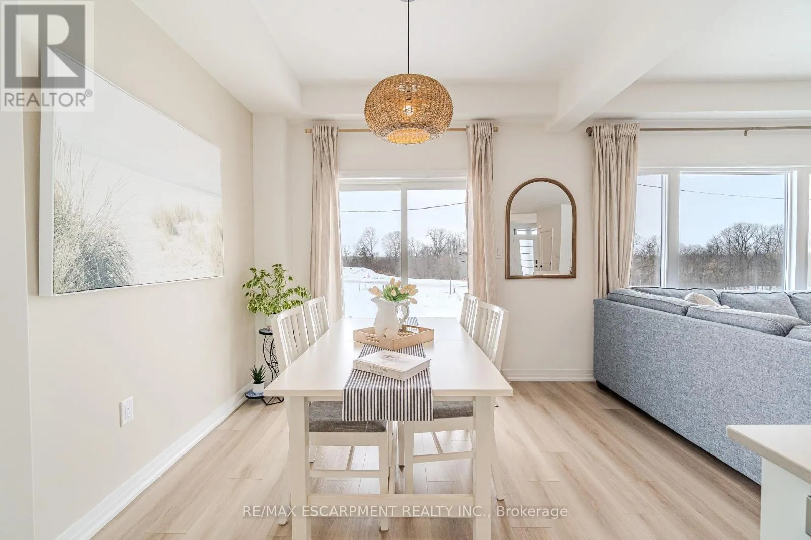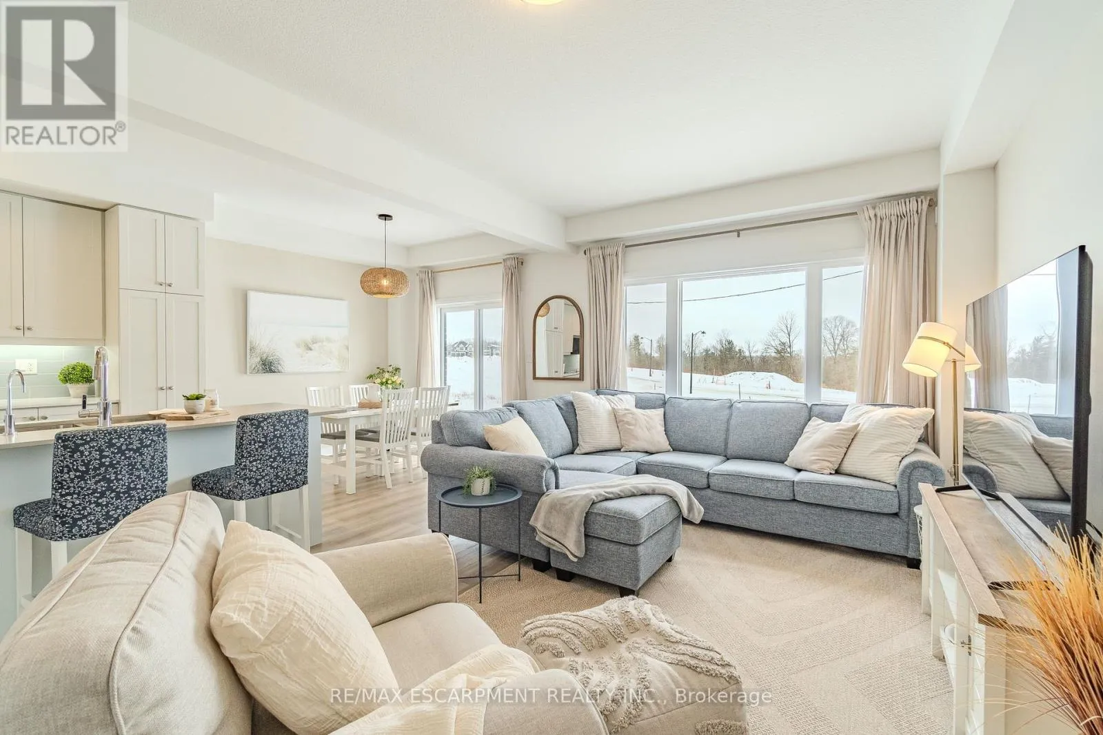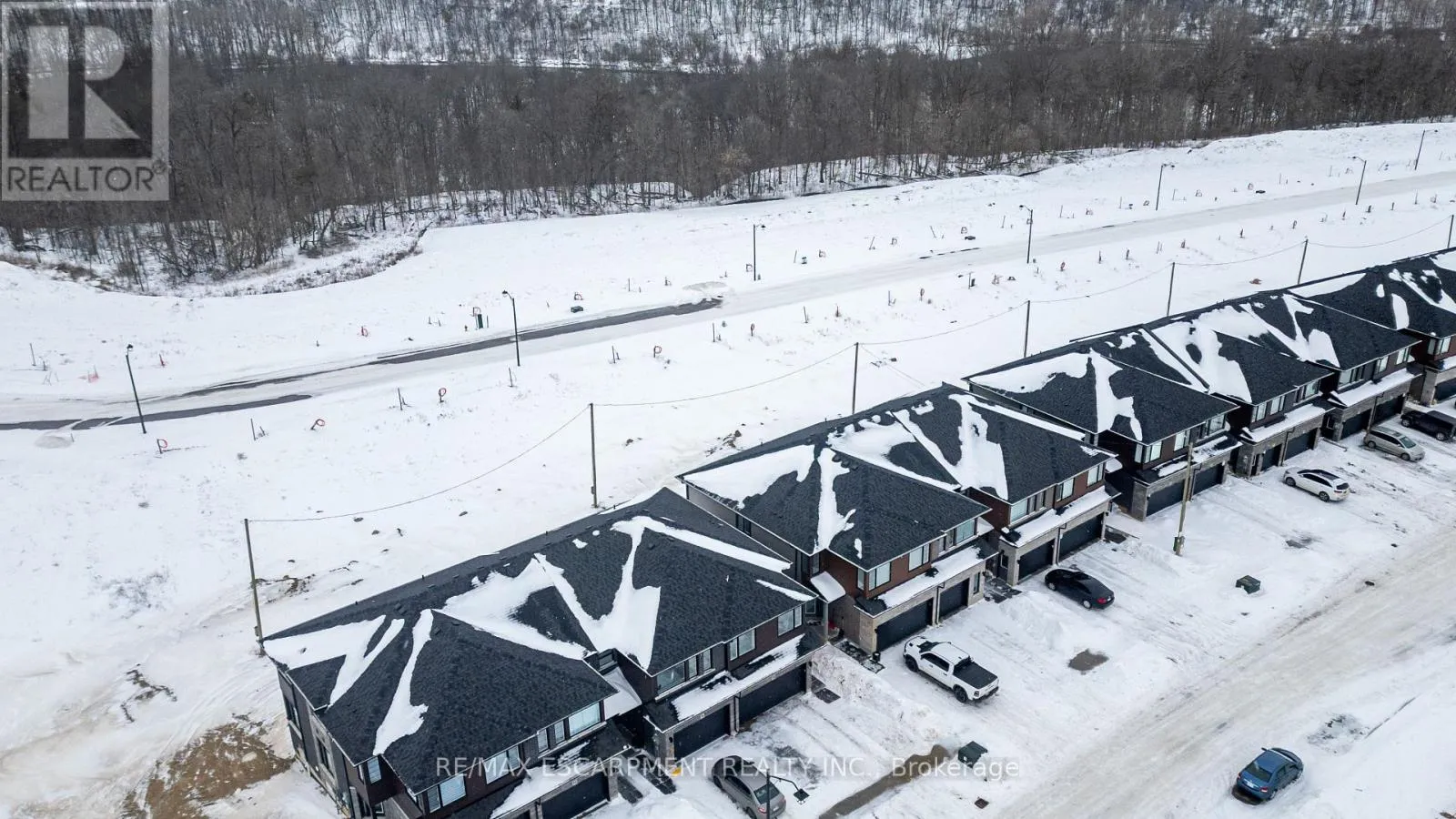 Cross Streets: Barker. ** Directions: Barker Street turn left onto Blackman Crescent, right on Gort. This exceptional freehold (no condo fees) end-unit townhome, built in 2025 by Losani Homes, features the Ambrosia Model with over 1,700 sq ft of refined living space. Encircled by nature and bordered by the Nith River, it offers an unmatched lifestyle. Trails at your doorstep invite canoeing, kayaking, hiking, fishing, and dog walks. Stroll through family-friendly Lions Park along the river past festivals, live music, the outdoor pool, splash pad, ball diamonds, then cross the rustic bridge into the charming downtown core to browse Wincey Mills Marketplace for fresh ingredients, coffee, fresh flowers, stop at Paris Beer Co., and wander home along the river. Striking curb appeal with dramatic dark trim, oversized windows, wood accents, modern glass door, and a large driveway to the double insulated garage. Detached homes planned behind and across the street enhance privacy and long-term value. Inside, the open-concept main floor with generous layout is perfect for entertaining, featuring shaker-style white cabinetry, quartz countertops with a statement island, designer backsplash, under-cabinet lighting, pot lights, soft-close cabinetry, fully tiled shower surrounds with niche and frameless glass, and huge windows that flood the space with light. Upstairs, the massive master suite features large windows with stunning views of the Nith River Valley, a spacious walk-in closet, and a luxurious ensuite. Two additional bedrooms, laundry, and open space complete the upper level.Additional highlights include keyless entry, extreme lookout basement window, upgraded garage insulation, high-end LG appliances, r/o water system, humidifier, central air, garage door opener, and custom window coverings. Sod and a future deck are yet to be completed, allowing personalized outdoor space, while a proposed park just down the street adds appeal. Expertly built with superior soundproofing, this home offers a level of privacy rarely found in townhome living. (id:27476)