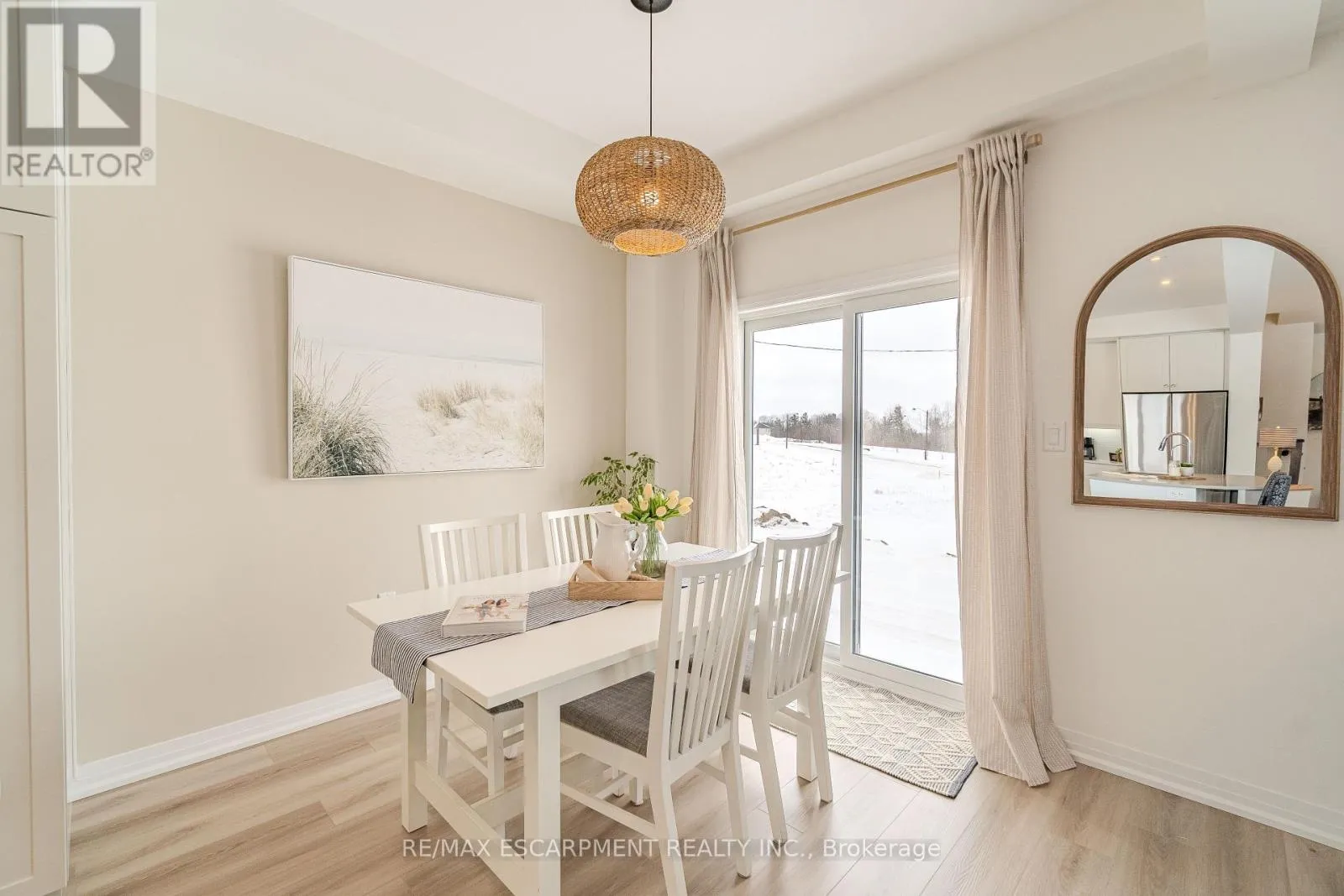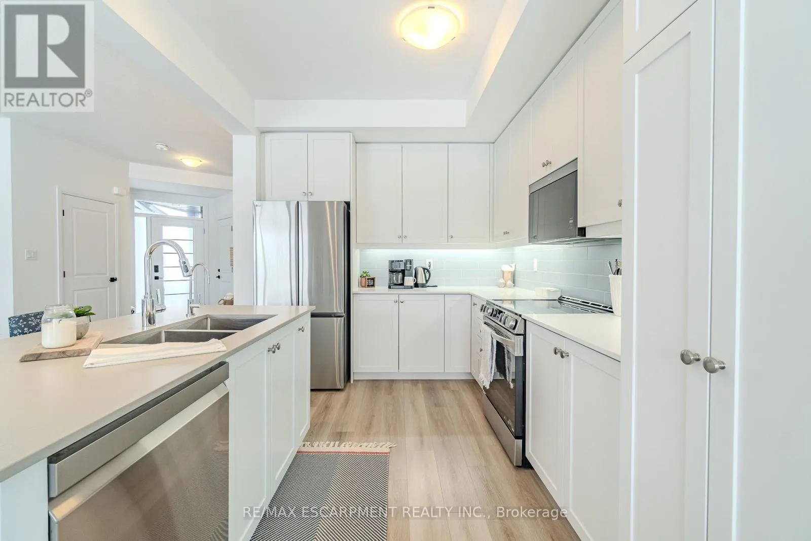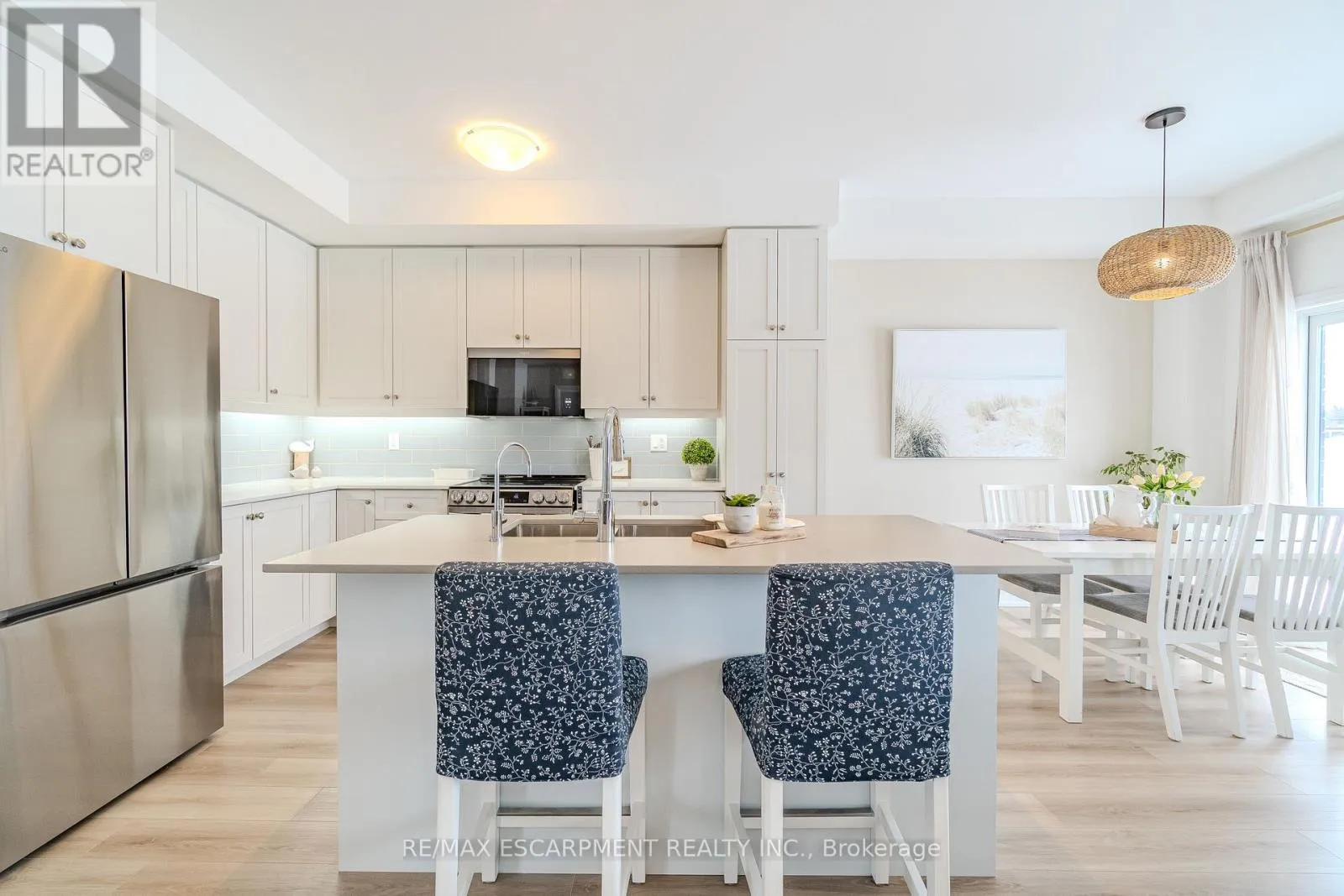 Cross Streets: Barker. ** Directions: Barker Street turn left onto Blackman Crescent, right on Gort. This exceptional freehold (no condo fees) end-unit townhome, built in 2025 by Losani Homes, features the Ambrosia Model with over 1,700 sq ft of refined living space. Encircled by nature and bordered by the Nith River, it offers an unmatched lifestyle. Trails at your doorstep invite canoeing, kayaking, hiking, fishing, and dog walks. Stroll through family-friendly Lions Park along the river past festivals, live music, the outdoor pool, splash pad, ball diamonds, then cross the rustic bridge into the charming downtown core to browse Wincey Mills Marketplace for fresh ingredients, coffee, fresh flowers, stop at Paris Beer Co., and wander home along the river. Striking curb appeal with dramatic dark trim, oversized windows, wood accents, modern glass door, and a large driveway to the double insulated garage. Detached homes planned behind and across the street enhance privacy and long-term value. Inside, the open-concept main floor with generous layout is perfect for entertaining, featuring shaker-style white cabinetry, quartz countertops with a statement island, designer backsplash, under-cabinet lighting, pot lights, soft-close cabinetry, fully tiled shower surrounds with niche and frameless glass, and huge windows that flood the space with light. Upstairs, the massive master suite features large windows with stunning views of the Nith River Valley, a spacious walk-in closet, and a luxurious ensuite. Two additional bedrooms, laundry, and open space complete the upper level.Additional highlights include keyless entry, extreme lookout basement window, upgraded garage insulation, high-end LG appliances, r/o water system, humidifier, central air, garage door opener, and custom window coverings. Sod and a future deck are yet to be completed, allowing personalized outdoor space, while a proposed park just down the street adds appeal. Expertly built with superior soundproofing, this home offers a level of privacy rarely found in townhome living. (id:27476)