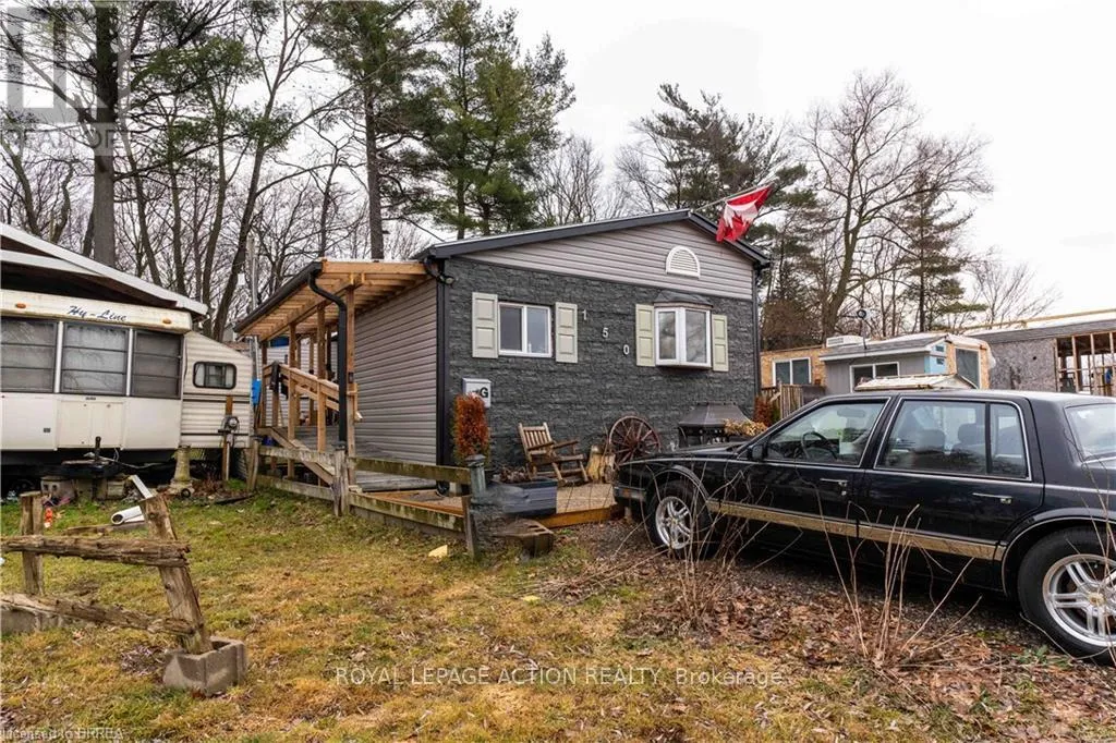 Cross Streets: West Quarter Townline Road. ** Directions: Twin Springs Park located S of Hwy 403, at intersection of W 1/4 Townline Rd & Conc. 4 Rd W of Towns Burford & Cathcart. Enter 1/4 line Rd Entrance, turn R at stop sign (Rock n Roll), go past Lucky Horseshoe, take L at Snappers Tr. Home on left #150. Welcome to Twin Springs! This beautifully updated modular home on Lot 150 offers a generous lot with serene pond views and is truly move-in ready. Featuring luxury vinyl flooring throughout, custom stainless steel appliances including a gas range and range hood, updated light fixtures, and a stunning modern accent wall with fireplace in the living room. The bathroom has been refreshed with updated tile and fixtures, and two modern sliding doors bring in plenty of natural light. Additional highlights include a durable metal roof, matching eavestroughs with leaf guards, and two bonus rooms perfect for a home office, hobby space, or guest accommodations. Monthly community fees of $563.16 include property taxes, community water, and septic (maintained by the park) for easy, low-maintenance living. Park ownership continues to make infrastructure improvements, with more planned. Please note this is an 11-month seasonal property (no occupancy in February), and propane tanks are not owned. Enjoy comfortable living in a peaceful setting - come see all that this Twin Springs gem has to offer! (id:27476)