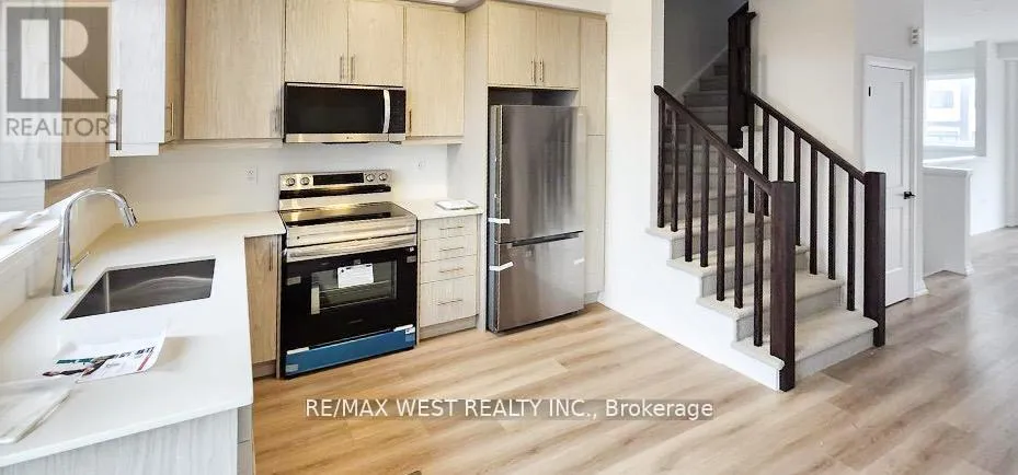 Vic Chamber Place / Tom Brown Dr Welcome to this stunning modern and contemporary 3-story townhouse. This home features 3+1 bedrooms, 3 baths, and luxury finishes throughout. Enjoy stainless steel appliances, including a fridge, stove, dishwasher, over-the-range microwave, and undermount kitchen sink. The kitchen boasts quartz countertops, a ceramic backsplash, and pot lights. Additional highlights include a frameless glass shower and beautiful laminate flooring throughout. Enter through the front door or convenient inside entry from the garage. Conveniently located for a quick commute to Hwy 403, with nearby expanding plazas offering a variety of restaurants, activities, and shopping. (id:27476)