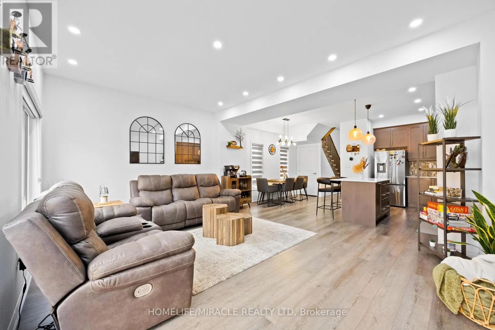 Shellard Lane/ Blackburn Drive -Main Awesome End-unit Freehold Townhouse (feels like semi detached), Move In Ready! Corner Enhanced End Unit 1709 Sq Feet 2 Storey Freehold Townhouse Just Like Semi, In Sought Area Of brant West! 3 Bedrooms, 2.5Baths.Bright/Spacious Have Larger Windows For Natural Light Floor 9Ft Ceiling, Gorgeous Kitchen With Bigger Living & Dining Area, Quartz Counter, Deep Sinks. Must-See, 3 Years Old, Located in West Brantford community features a modern open-concept design with 9-foot smooth ceilings and laminate flooring throughout the main floor. The upgraded kitchen boasts quartz countertops, a stylish undermount sink, extended-height upper cabinets, a kitchen island, and a microwave space saver provision, along with brand-new stainless steel appliances, including a fridge, stove, and dishwasher. Beautiful entry leads to a large foyer, opening into a bright living room with a walkout to the backyard, filled with natural light from oversized windows, making it perfect for family gatherings or entertaining friends. The main floor also includes pot lights to enhance the space with warm, modern lighting. Upstairs, the primary bedroom offers a walk-in closet and a luxurious ensuite full washroom, while the second bedroom also includes a walk-in closet. A convenient second-floor laundry room comes equipped with a brand-new white front-loading washer and dryer. Located in a family-friendly neighborhood, this home is just minutes from top-rated schools, a community center, shopping, scenic trails, and major highways, with visitor parking and a kids' park conveniently situated in front of the house. Don't miss this incredible opportunity schedule a showing today! Furnace, A/C and Tankless hot water owned. (id:27476)