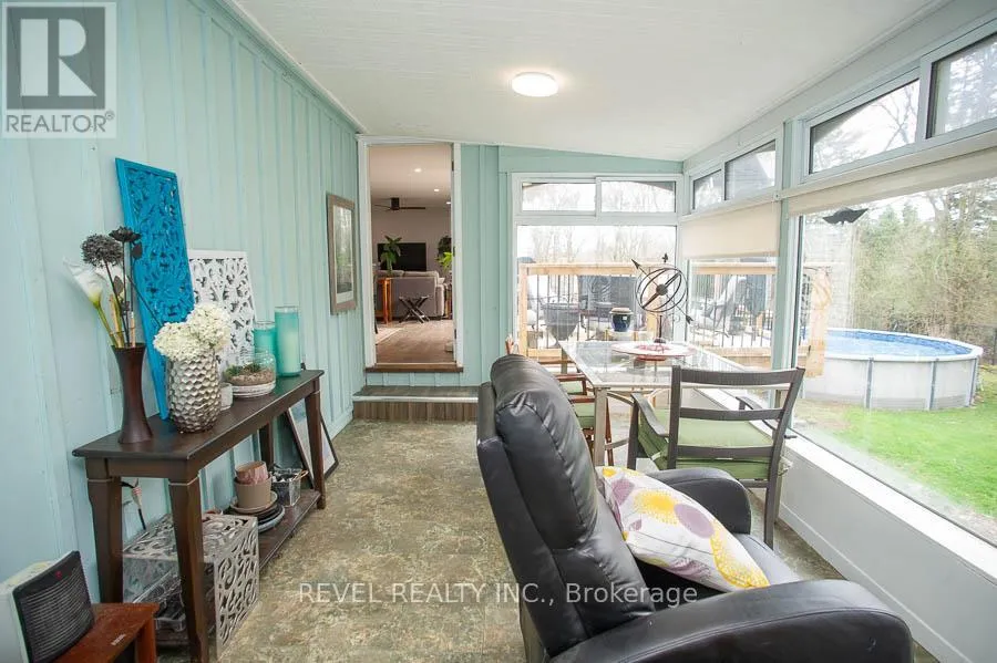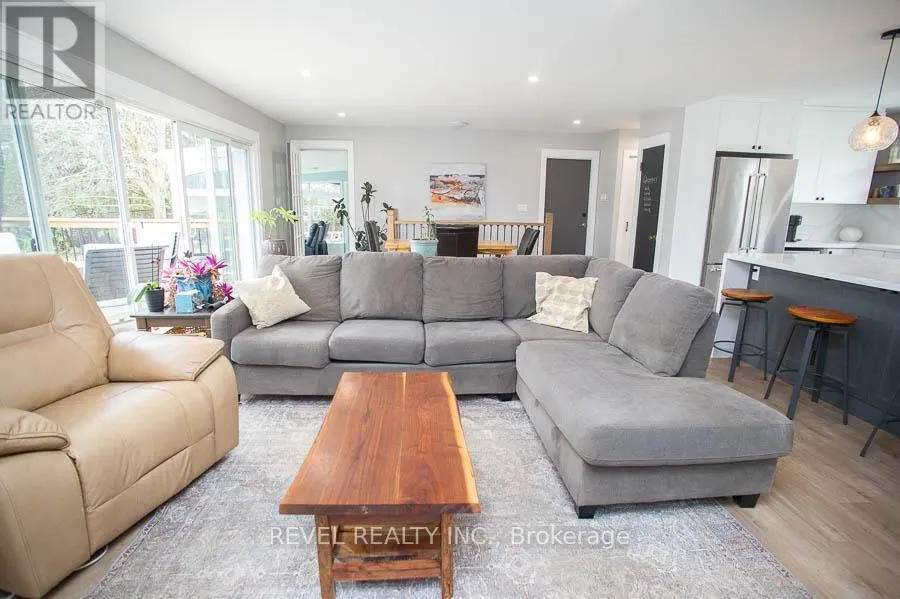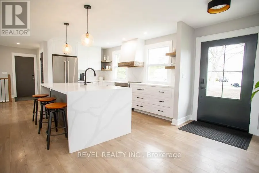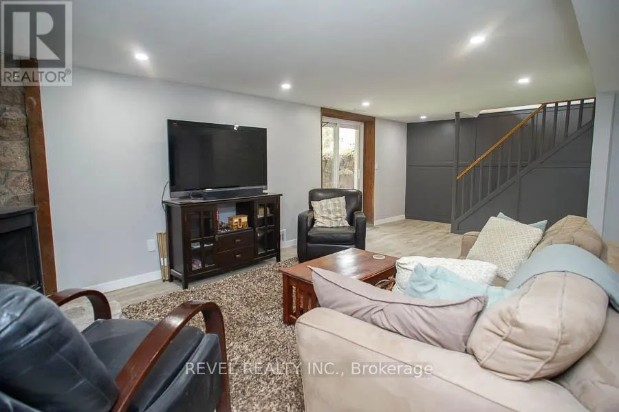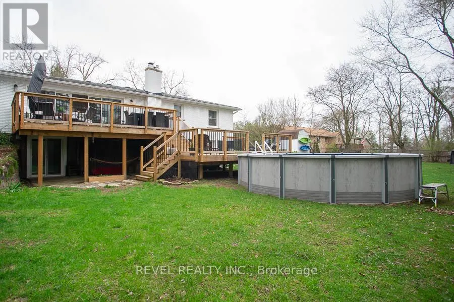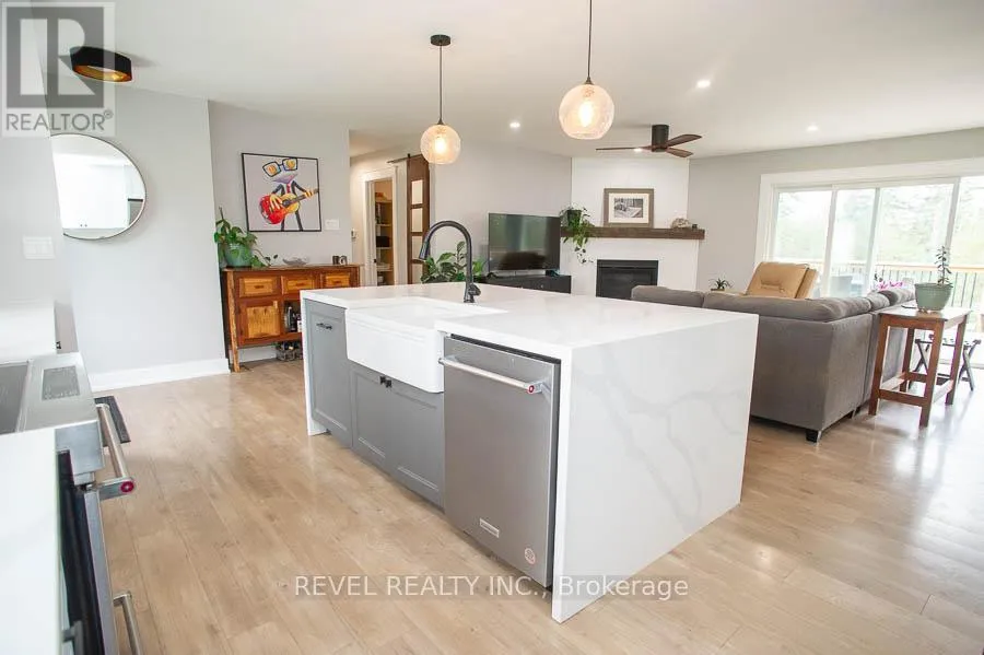 Cross Streets: Mount Pleasant & Russell. ** Directions: Mount Pleasant Road to Russell St. Tucked away in the charming village of Mount Pleasant, this beautifully renovated 3-bedroom, 1.5-bath home sits on a spacious 0.45-acre mature lot and offers the perfect blend of comfort, style, and privacy. Surrounded by trees, this property delivers peaceful small-town living while still being just a short drive to Brantford and everyday amenities. Step inside to a bright, thoughtfully updated interior where large windows fill the home with natural light. The heart of the home is the stunning, fully renovated chef's kitchen (2022), featuring quartz countertops with a waterfall island, white shaker cabinetry, stainless steel KitchenAid appliances, a farmhouse sink, and custom finishes throughout. The open-concept layout flows seamlessly into the dining area and great room, where a gas fireplace with shiplap surround creates a warm and inviting space for everyday living and entertaining. Expansive 16-foot sliding doors lead out to the upper deck, creating the perfect indoor-outdoor connection. The main floor offers three well-sized bedrooms and an updated bathroom with a double vanity, while a bright 3-season sunroom provides a peaceful spot to relax and take in views of the backyard. The fully finished walk-out basement (2025) adds incredible versatility with a spacious recreation room, second fireplace, additional bonus room ideal for a guest bedroom, office, or gym, and direct access to the backyard. Outside, enjoy your own private retreat complete with a tiered deck (2023), above-ground pool, and hot tub, all surrounded by mature trees and a fenced yard. This is small-town living at its finest-offering space, style, and a lifestyle you'll love. (id:27476)