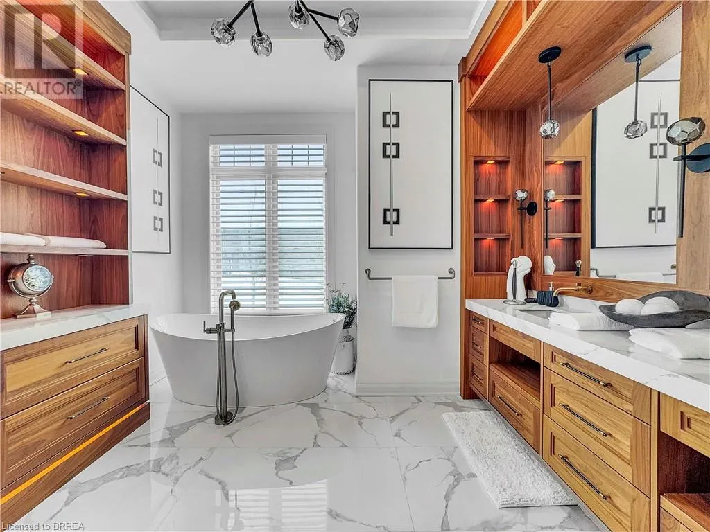 Mt Pleasant Rd to Westlake Blvd Welcome to an unparalleled estate defining luxury livingâthis 6,000+ square foot mansion is finished to the highest level, with every surface expertly crafted for discerning buyers. Step through a sun-drenched entrance into a main floor featuring a two-story great room that sets an elegant tone. Gleaming hardwood floors lead to an eat-in kitchen with cathedral ceilings and an expansive formal dining roomâideal for grand gatherings. A massive pantry and main floor laundry add everyday convenience. Every detail has been meticulously planned: in the office, den, and master suite, you'll find $250,000 in custom walnut built-ins that exude sophistication. The master suite is a true retreat, featuring high-end finishes, a standalone tub, a custom glass-enclosed shower, and a private deckâall complemented by surround sound throughout. The second level offers a cozy office/den with more custom walnut cabinetry, five generous bedrooms, and a loft over the showpiece 3-car garage with a car lift to protect your prized supercar. Downstairs, the lower level is an entertainerâs paradise with a walkout to the landscaped backyard from a covered porch with a hot tub. A state-of-the-art home theatre, full professional gym, and a games room with a pool table provide endless leisure. A fully equipped barber shop (for both his and hers), extra storage, an additional bedroom, and a full bathroom with its own walkout complete this levelâkeeping the space poolside-friendly. Outside, manicured grounds, a cobblestone patio for alfresco dining, and a pool house with a cozy fire pit surround a heated saltwater pool inviting year-round relaxation.This is more than a homeâitâs a statement of sophistication and luxury. Schedule your private showing today and experience the grandeur of this must-see mansion. (id:27476)