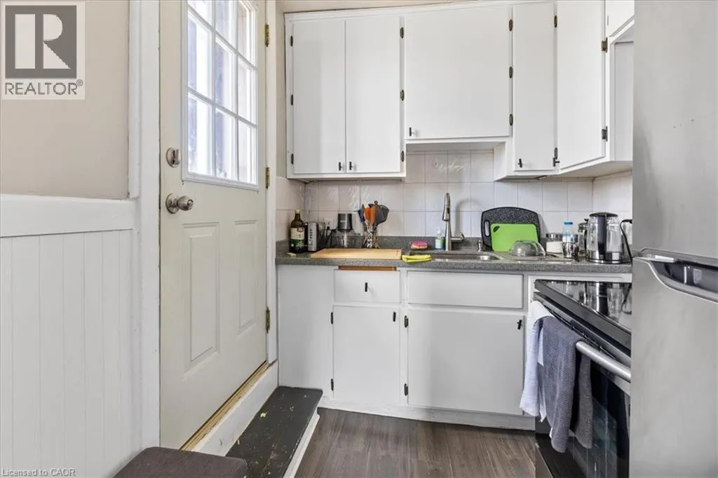 Colburne st W- Right on Sherwood This fully-tenanted 4-plex presents a fantastic investment opportunity with multiple revenue streams. In addition to the four rental units, the property includes an additional re-zoned lot, offering even more potential for future development or severance. Key Features: 4 rental units: Three 1-bedroom/1-bath units and one 2-bedroom + den unit. Additional income: A 749 sq/ft garage that generates extra revenue. Shared amenities: Coin-operated laundry facilities and ample parking for tenants. Heating: Gas heating in 3 units and electric heating in Unit 1. With its combination of residential and commercial potential, this property is a perfect addition to your portfolio. The seller has not lived on the property and makes no warranties or representations. Square footage per iGuide. (id:27476)