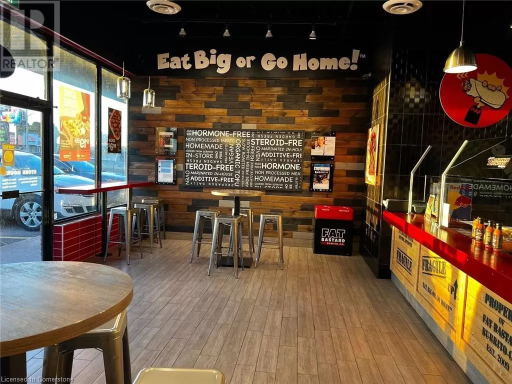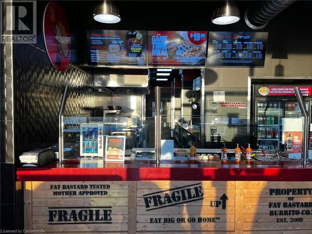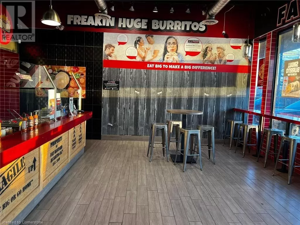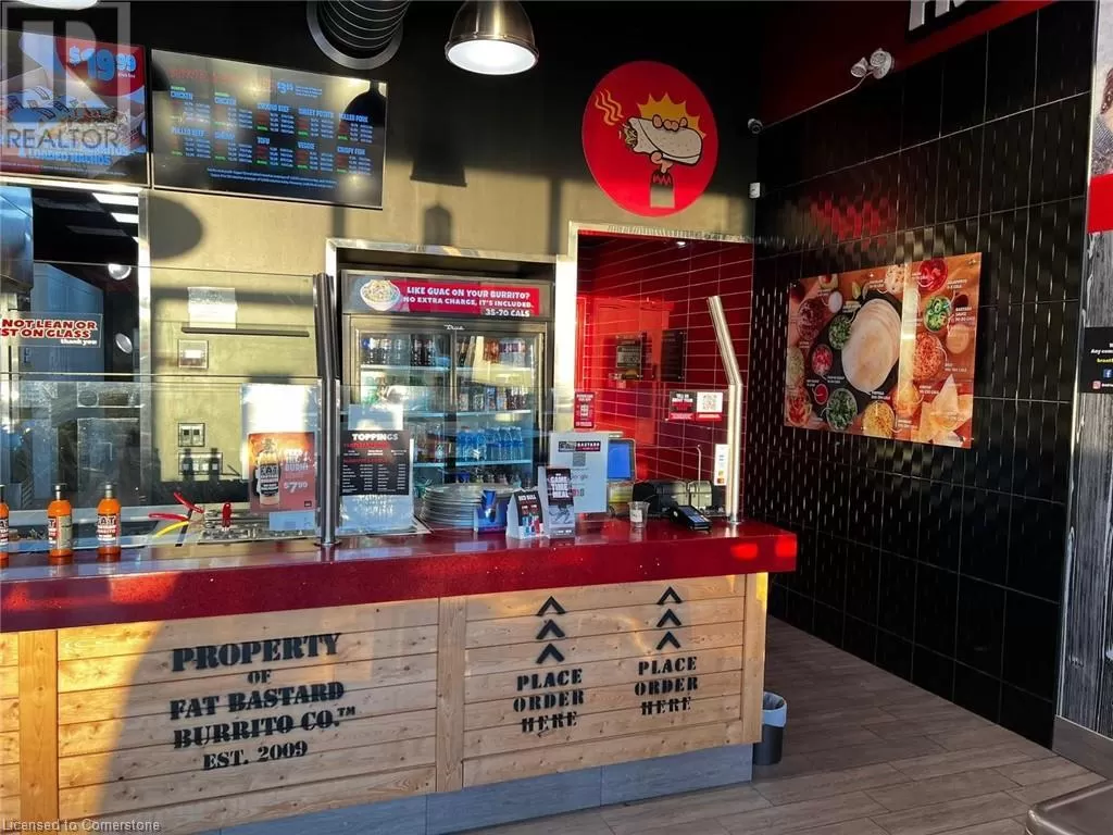 King George Rd/Dunsdan St Fat Bastard Burrito Business in Brantford, ON is For Sale. Located at the busy intersection of King George Rd/Dunsdon St. Surrounded by Fully Residential Neighborhood, Close to Schools, Highway, Offices, Banks, Major Big Box Store and Much More. Business with so much opportunity to grow the business even more. Rent: $3455/m including TMI + HST, Lease Term: Existing 7 Years + 5 + 5 years Option to renew, Royalty: 8%, Advertising: 2%. (id:27476)