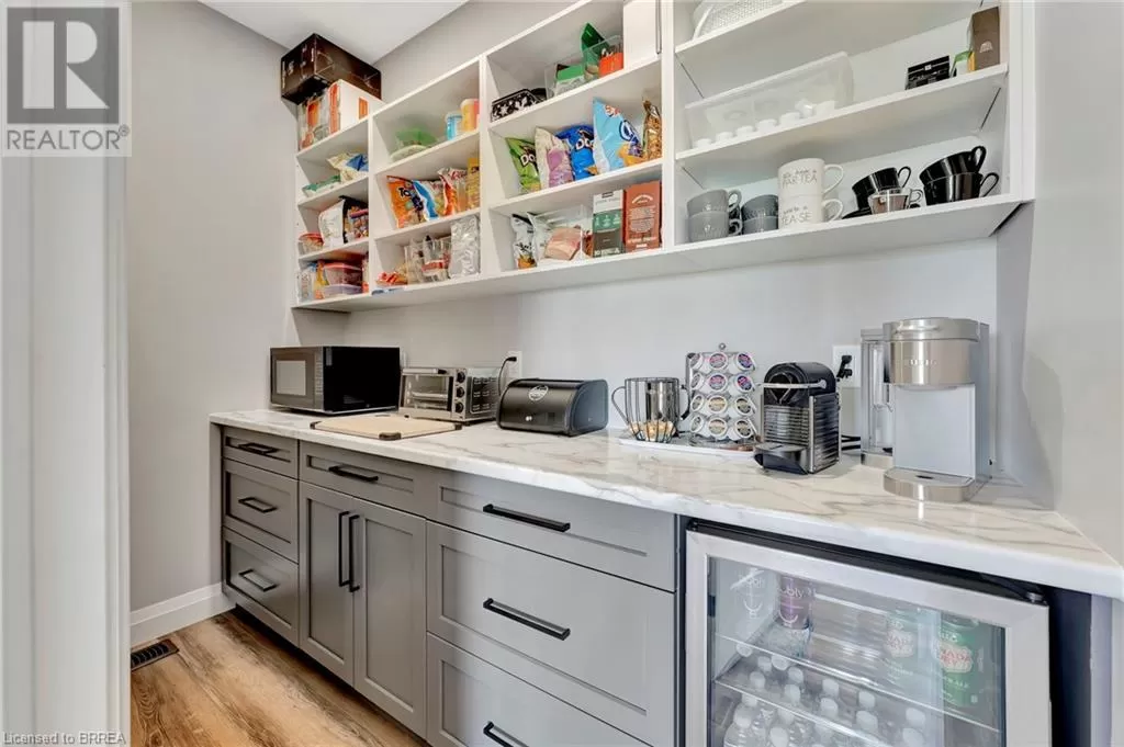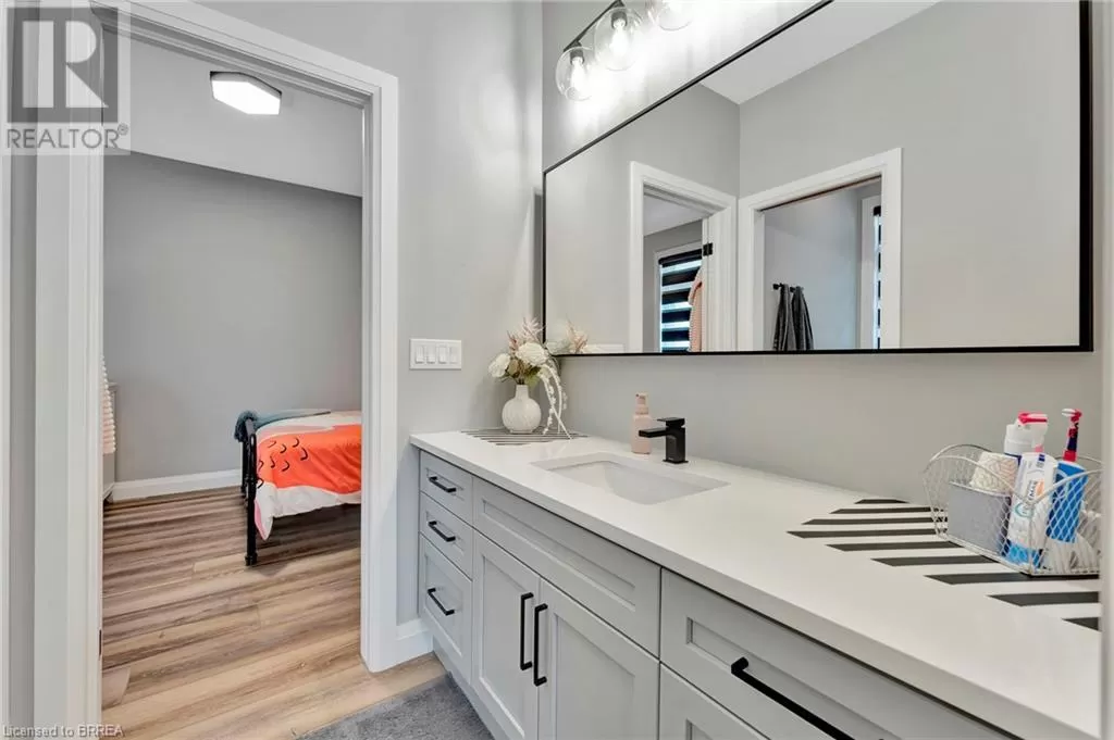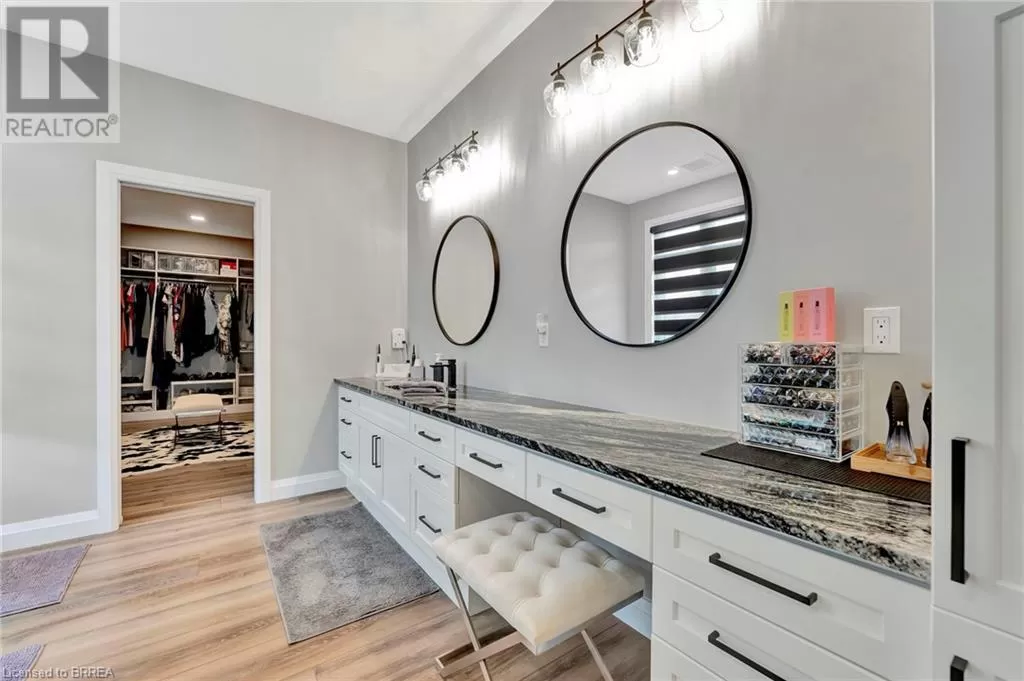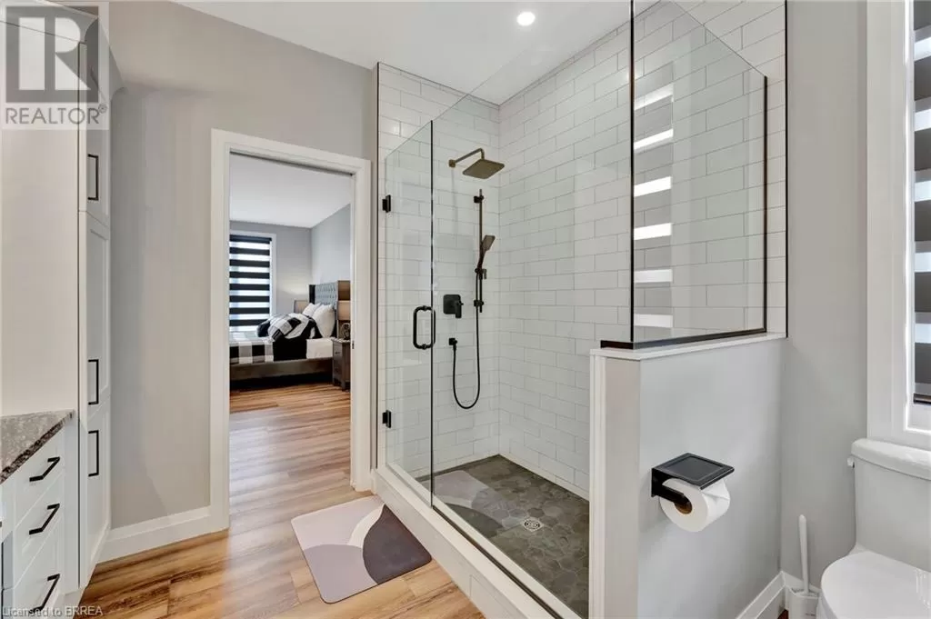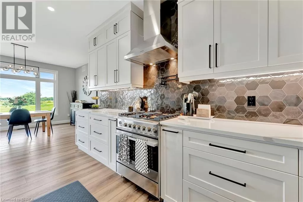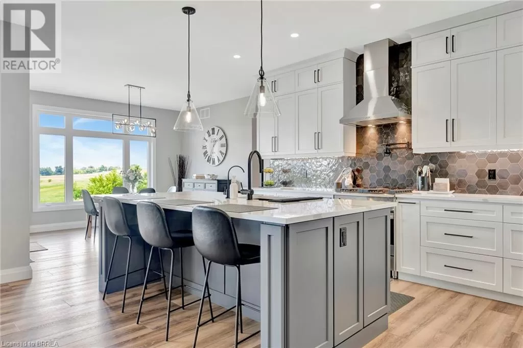 Greens Road Welcome home to 14 Hudson Dr., Brantford. Custom built in 2022 on premium greenspace lot, two homes in one! Separate entrance to basement suite with separate heating and cooling controls. In law suite could also be a great way to make extra income, rent it for $2500/ month (property sized double septic tank legal suite). Modern design sleek and straight out of a magazine! 9 and 10ft ceilings on main level and upgraded 9ft ceilings in basement. Chefs kitchen with custom walk in pantry added post build. Quartz counters with high end Fisher & Paykel appliances in both main kitchen and the second kitchen. Gorgeous backplash in both kitchens and pot filler in main kitchen. Open to the stunning living room with custom ceiling work and built ins added in living room (2023). Up to 4 beds on the main level and up to two (could be converted to 3+) beds downstairs and 4.5 baths total.AND each suite has its own dedicated laundry. Extensive sound proofing between the main level and basement. Stay cozy all winter with the boiler system and in floor heat and 2 gas fireplaces.In floor is extremely efficient can heat entire home. Primary ensuites are equipped with bidets. All custom lighting from Avenue Lighting. Even the colour of the brick was a builder upgrade. No inch of this property was ignored. Gas lines for BBQ and pre installed for pool heater. 25k upgrade for cold cellar. The entire house is backed up on the Generac generator. Professional landscape and concrete walkway in front and back (23/24). Extended upper deck with composite decking on upper balcony and upgraded railing. Lower level 3 season enclosed sun room with flooring (2024). Reverse osmosis system, water softener and boiler system for hot water all owned, no rentals. Shows A+++ pride of ownership very apparent upon entry. Meticulously maintained and upkept. See it today! (id:27476)