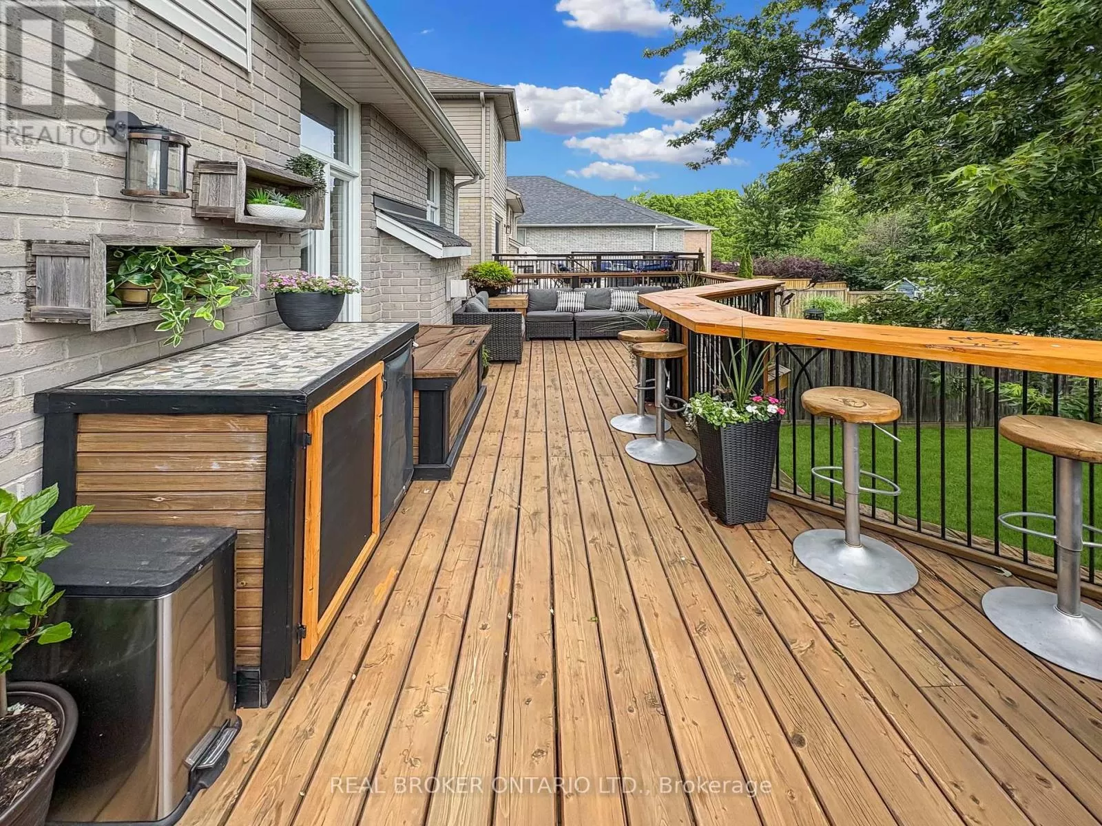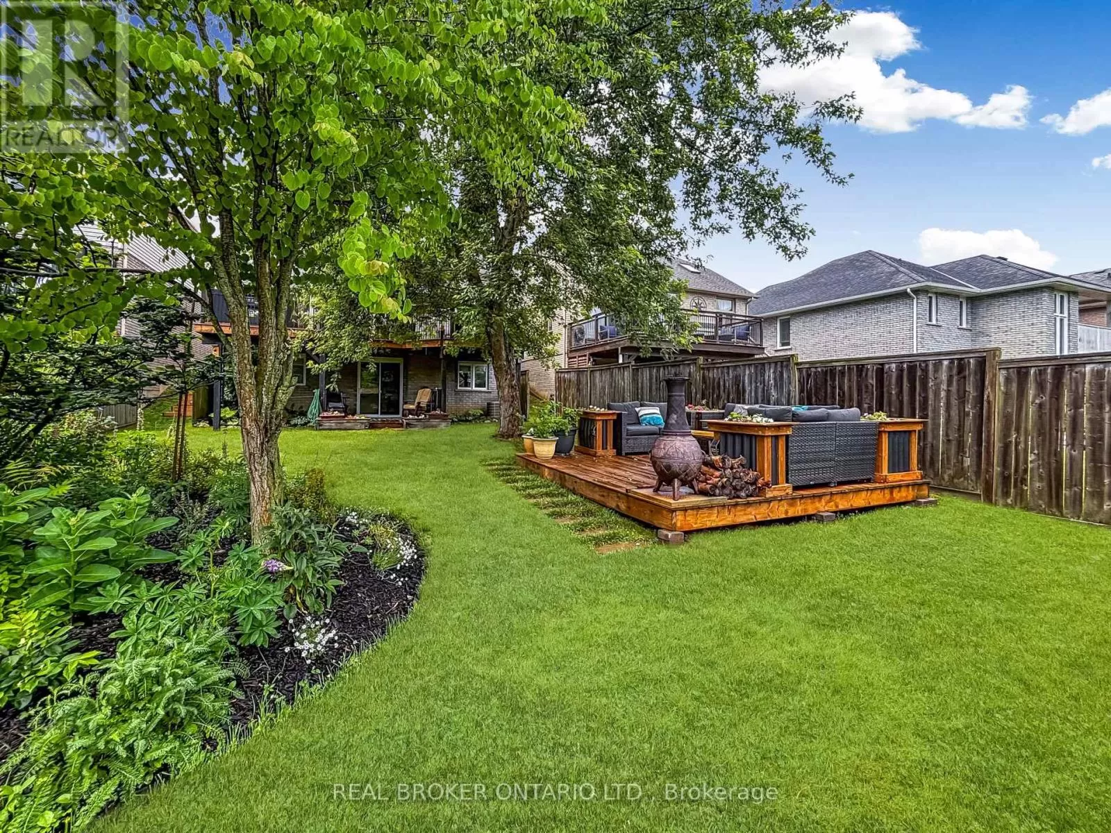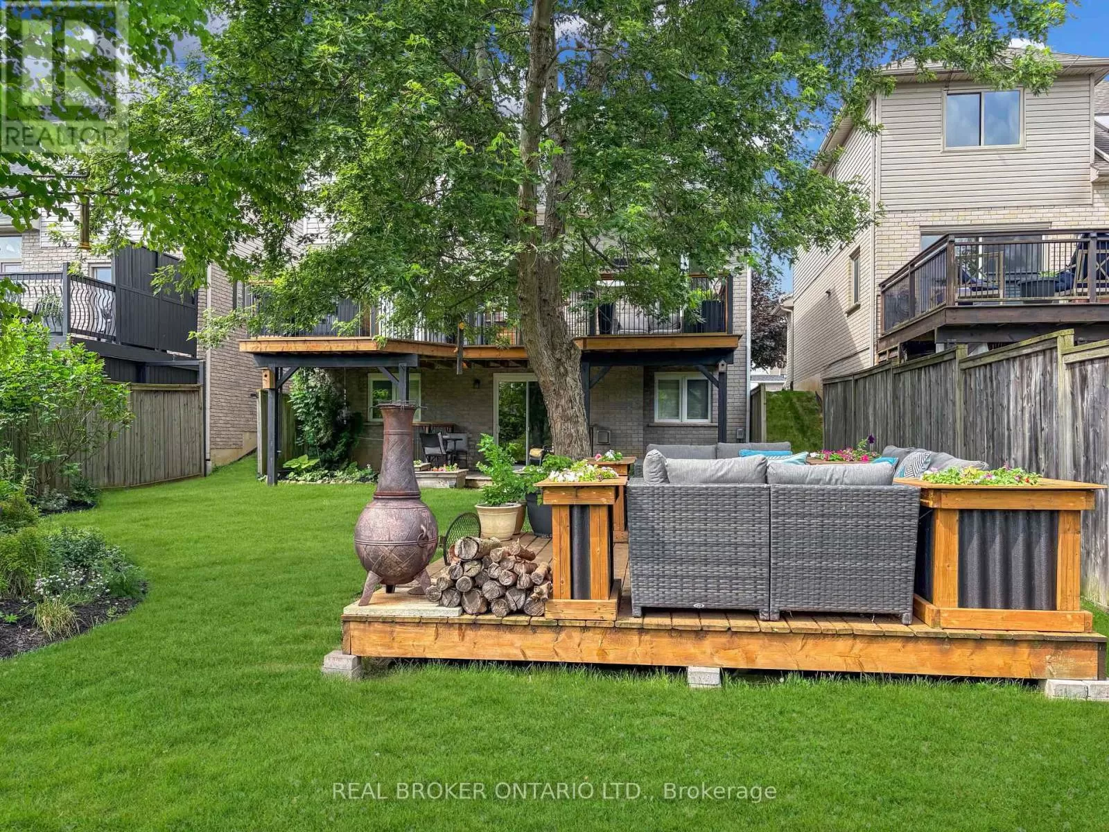 McGuiness Its not often a home like this comes uptucked at the end of a quiet court, surrounded by mature trees and backing onto protected ravine and trails. 18 Bricker offers a rare blend of space, privacy, and natural beauty in a neighbourhood where these features are hard to find. The great-room is a true showstoppersoaring double-height cathedral ceilings with skylights create an airy, light-filled hub for everyday life. Rustic wood accents and natural gas fireplaces on both levels add warmth and charm, while oversized windows and multiple walkouts connect you seamlessly to the outdoors. The ravine lot backs directly onto naturalized green space and the extensive trail system, offering year-round views and no direct rear neighbours. Upstairs, the deck functions as an outdoor kitchen and private lounge, with treetop views. Below, the landscaped backyard features two more distinct spaces: a covered area tucked under the upper deck for shade and privacy, and a separate entertaining deck set among the gardens. Inside, the spacious layout includes a massive primary retreat with vaulted ceilings, a finished walkout lower level with built-in cabinetry across the recreation room, and thoughtful details throughout. This home delivers rare lifestyle value in a quiet pocket of West Brant close to schools, parks, and everyday amenities. Come see what makes this one so special. (id:27476)