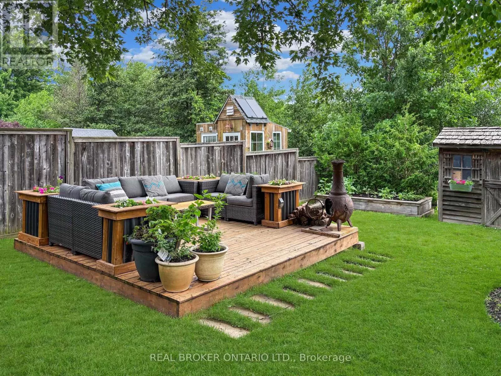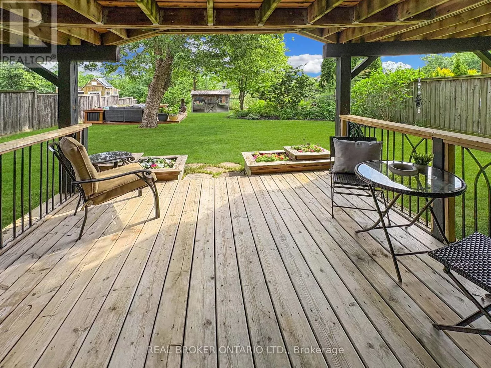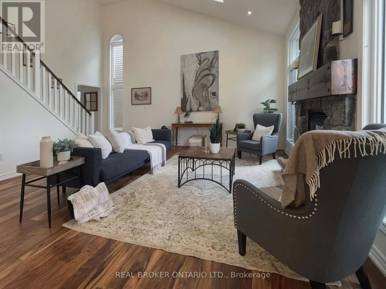 McGuiness Its not often a home like this comes uptucked at the end of a quiet court, surrounded by mature trees and backing onto protected ravine and trails. 18 Bricker offers a rare blend of space, privacy, and natural beauty in a neighbourhood where these features are hard to find. The great-room is a true showstoppersoaring double-height cathedral ceilings with skylights create an airy, light-filled hub for everyday life. Rustic wood accents and natural gas fireplaces on both levels add warmth and charm, while oversized windows and multiple walkouts connect you seamlessly to the outdoors. The ravine lot backs directly onto naturalized green space and the extensive trail system, offering year-round views and no direct rear neighbours. Upstairs, the deck functions as an outdoor kitchen and private lounge, with treetop views. Below, the landscaped backyard features two more distinct spaces: a covered area tucked under the upper deck for shade and privacy, and a separate entertaining deck set among the gardens. Inside, the spacious layout includes a massive primary retreat with vaulted ceilings, a finished walkout lower level with built-in cabinetry across the recreation room, and thoughtful details throughout. This home delivers rare lifestyle value in a quiet pocket of West Brant close to schools, parks, and everyday amenities. Come see what makes this one so special. (id:27476)
