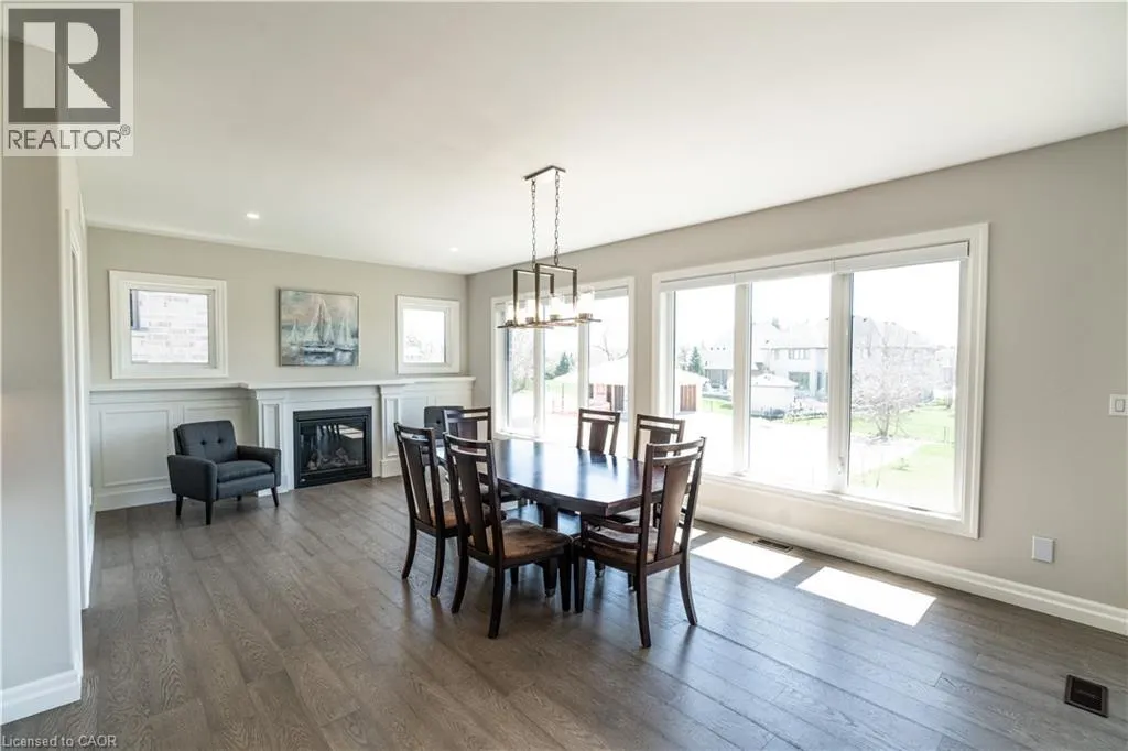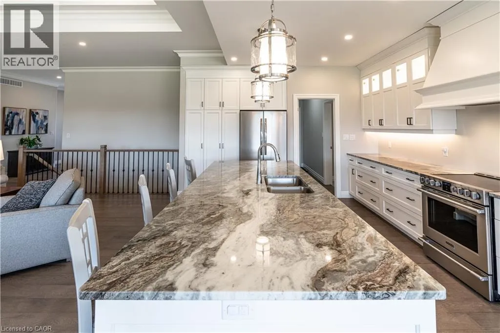 North of Oakhill Drive to Greens Road. South of Robinson Road to Greens Road. Welcome to 15 Hudson Drive, an extraordinary executive bungalow nestled in Brantfordâs coveted Oakhill neighborhood. This custom-designed walkout home offers over 5,100 square feet of luxurious living space on a rare 256-foot deep lot, blending elegance, comfort, and functionality. The open-concept layout showcases impeccable attention to detail, featuring five spacious bedrooms and three and a half bathrooms, including a stunning five-piece primary ensuite. The heart of the home is the chef-inspired kitchen with a 10-foot island, seamlessly flowing into a grand great room with soaring 12-foot coffered ceilings and a striking stone and board & batten fireplace. Entertain in style in the oversized dining room with its own hearth and fireplace, or find focus in the dedicated office, unwind in the cozy den, and stay active in the private workout room. A thoughtfully designed mudroom/laundry/pantry combination adds everyday convenience, while the three-car garage offers direct access to the lower levelâideal for a potential in-law suite. Storage is abundant throughout the home. Enjoy seamless indoor-outdoor living with a covered patio off the kitchen and a walkout from the lower level to a spacious backyard oasis enclosed with a beautiful wood fence. With Brantford expanding rapidly, properties of this caliber are increasingly rare. 15 Hudson Drive is the complete packageârefined, spacious, and ready to impress. Be sure to check out the virtual tour on YouTube to experience it for yourself. (id:27476)