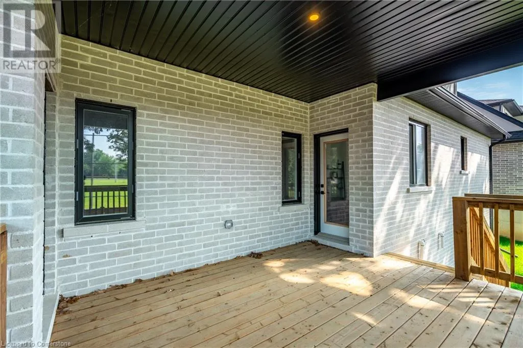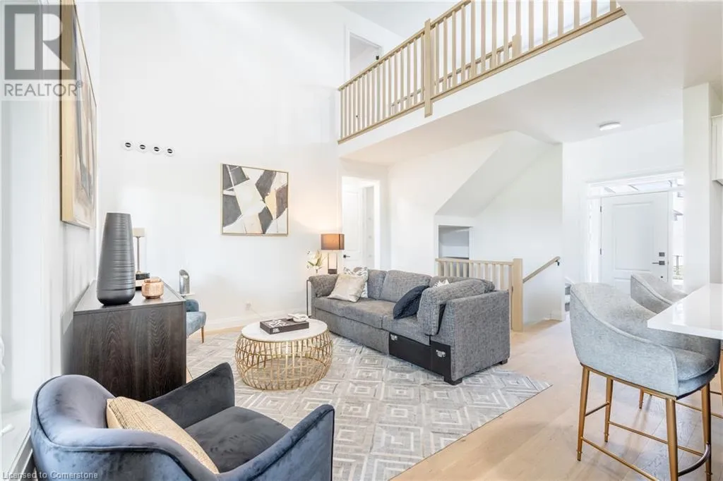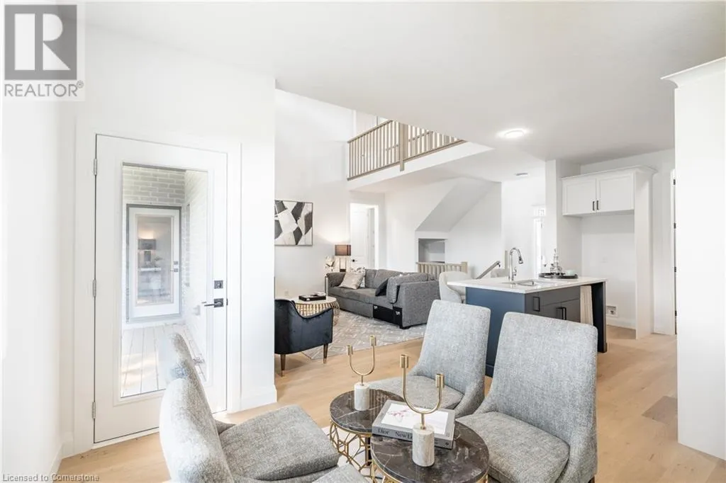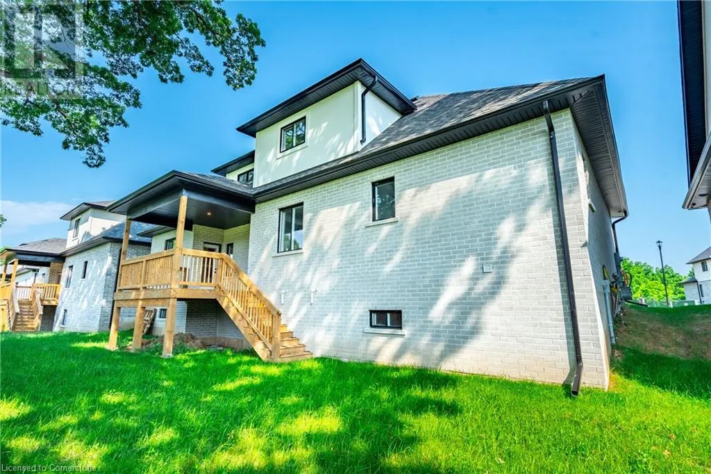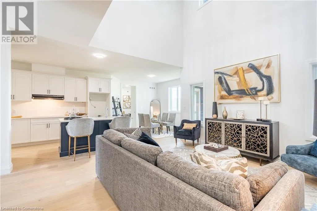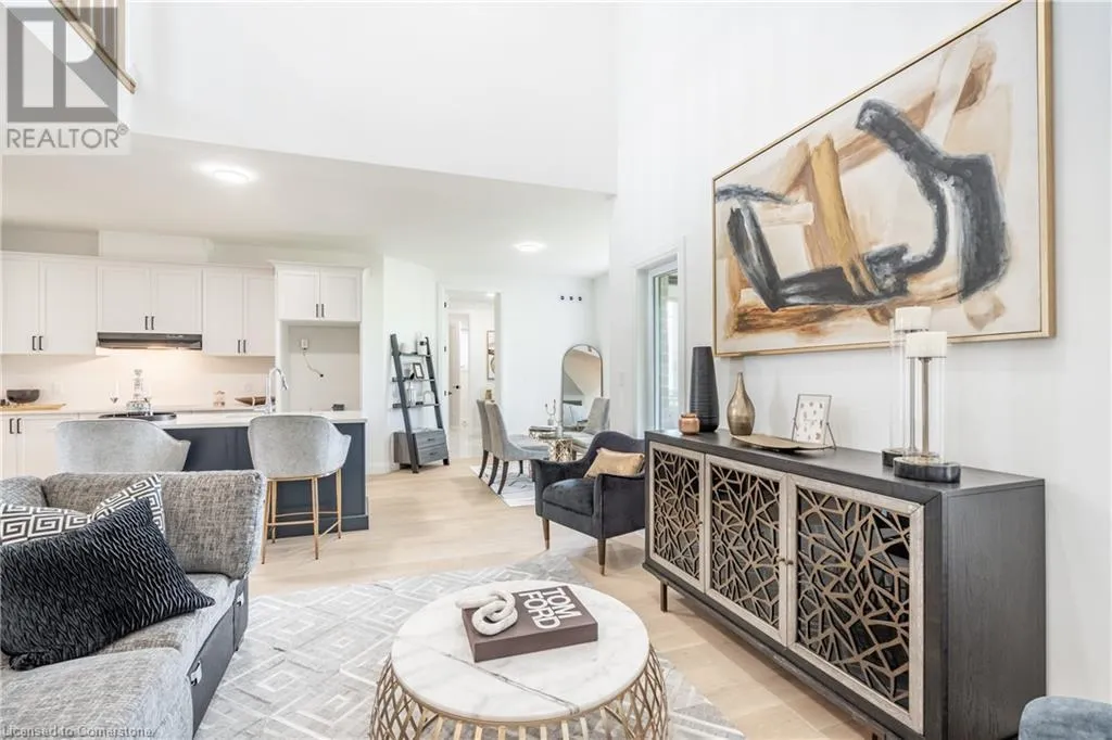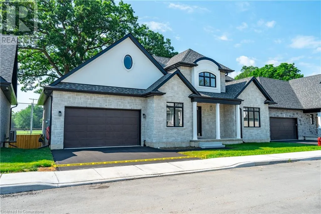Veterans Memorial and Mount Pleasant Street BUILDER MODEL HOME, never-before-lived-in Energy Star Certified bungaloft with full 7 Year Tarion warrantee nestled in the prestigious Lions Park Estates community of Brantford. Perfectly situated on a quiet, private cul-de-sac, this all-brick executive residence offers an elevated blend of sophistication and comfort. Step inside to find soaring ceilings, wide-plank engineered hardwood flooring, and sunlit open-concept living spaces. The chef-inspired kitchen is a true showpiece, featuring pristine white cabinetry, quartz countertops, designer hardware, an undermount sink, breakfast bar, and a walk-in pantry. The main floor is thoughtfully designed with a serene primary suite offering a spacious walk-in closet and a spa-like 5-piece ensuite with glass shower, soaker tub, and dual vanities. A powder room, laundry area, and a versatile office/den with garage access complete the main level. The loft features two oversized bedrooms and a sleek 4-piece bath. The unspoiled lower level with high ceilings awaits your custom touch. Enjoy seamless indoor-outdoor living with a covered wooden deck backing onto scenic Lions Park. FIRST 12 MONTHS maintenance fee included which includes Snow removal and Lawn care! Steps to Gilkison Trail, great schools, community centre, rinks, shopping, Costco, and Hwy 403. (id:27476)