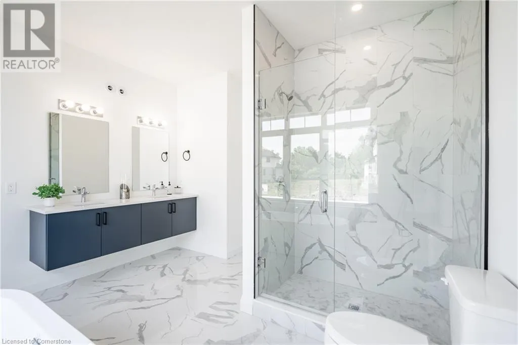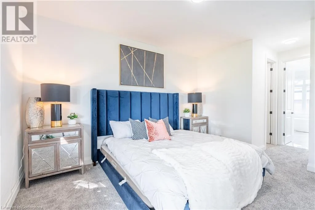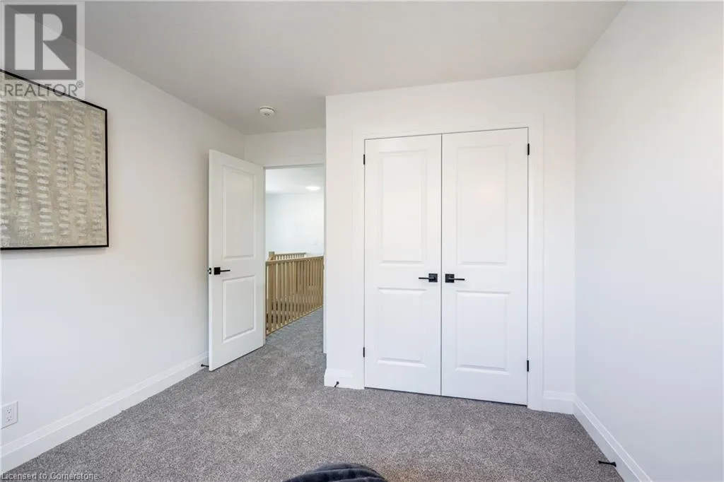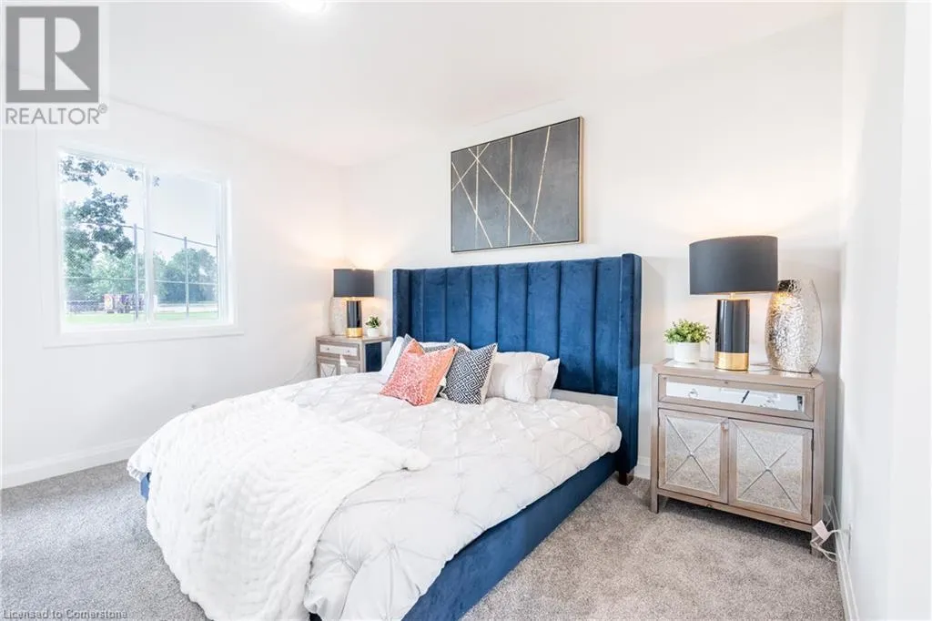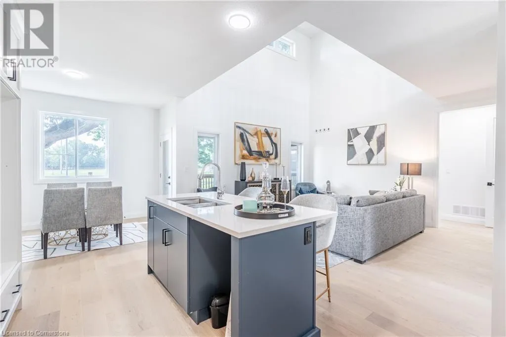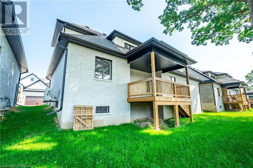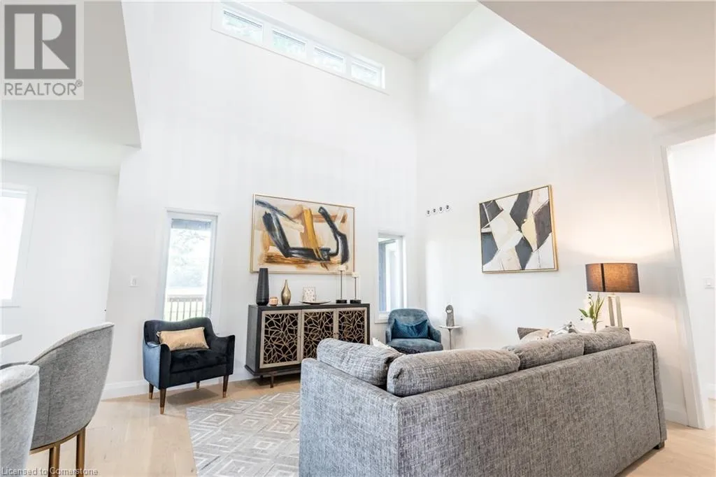 Veterans Memorial and Mount Pleasant Street BUILDER MODEL HOME, never-before-lived-in Energy Star Certified bungaloft with full 7 Year Tarion warrantee nestled in the prestigious Lions Park Estates community of Brantford. Perfectly situated on a quiet, private cul-de-sac, this all-brick executive residence offers an elevated blend of sophistication and comfort. Step inside to find soaring ceilings, wide-plank engineered hardwood flooring, and sunlit open-concept living spaces. The chef-inspired kitchen is a true showpiece, featuring pristine white cabinetry, quartz countertops, designer hardware, an undermount sink, breakfast bar, and a walk-in pantry. The main floor is thoughtfully designed with a serene primary suite offering a spacious walk-in closet and a spa-like 5-piece ensuite with glass shower, soaker tub, and dual vanities. A powder room, laundry area, and a versatile office/den with garage access complete the main level. The loft features two oversized bedrooms and a sleek 4-piece bath. The unspoiled lower level with high ceilings awaits your custom touch. Enjoy seamless indoor-outdoor living with a covered wooden deck backing onto scenic Lions Park. FIRST 12 MONTHS maintenance fee included which includes Snow removal and Lawn care! Steps to Gilkison Trail, great schools, community centre, rinks, shopping, Costco, and Hwy 403. (id:27476)