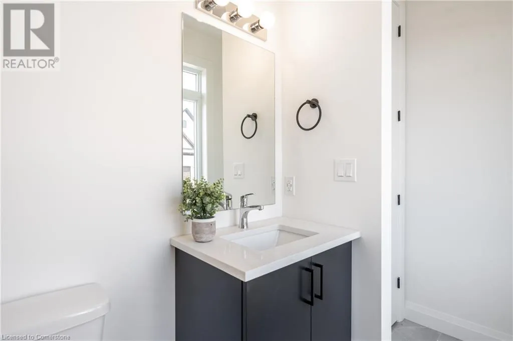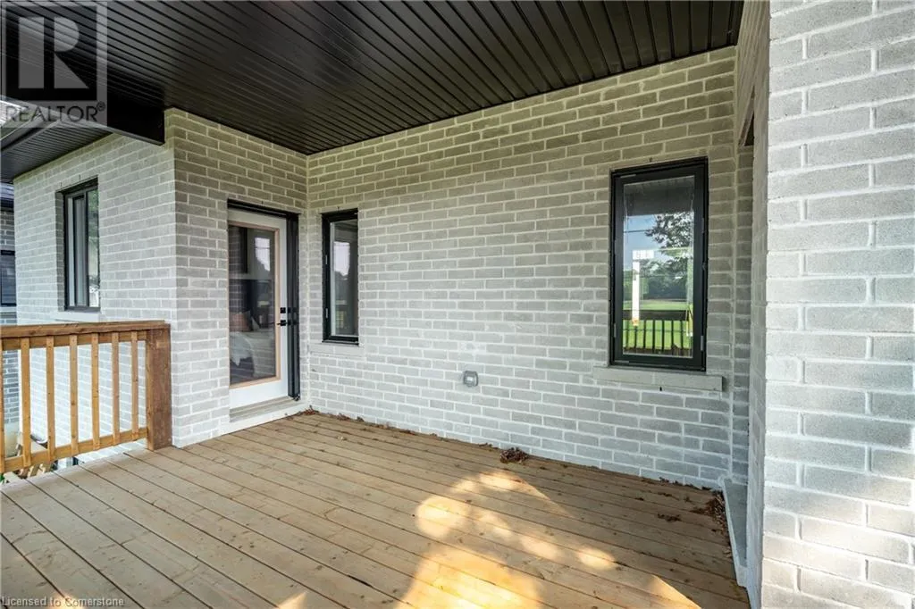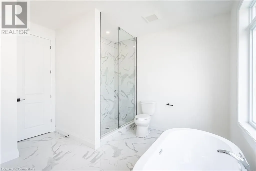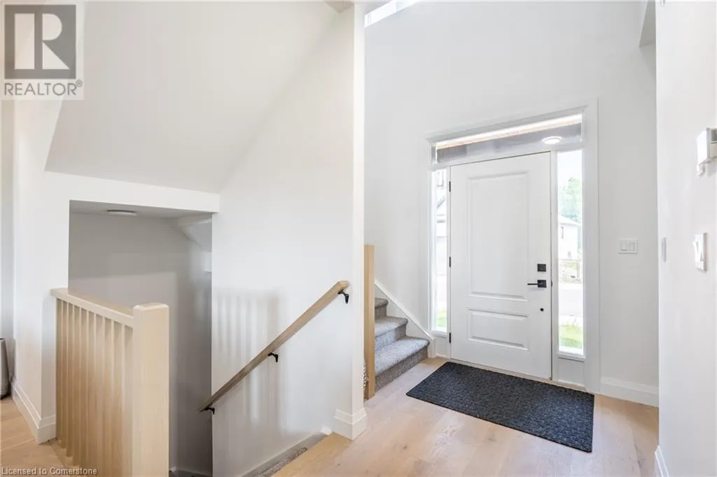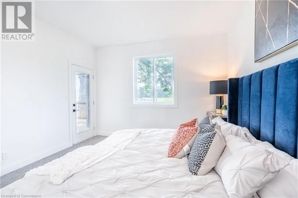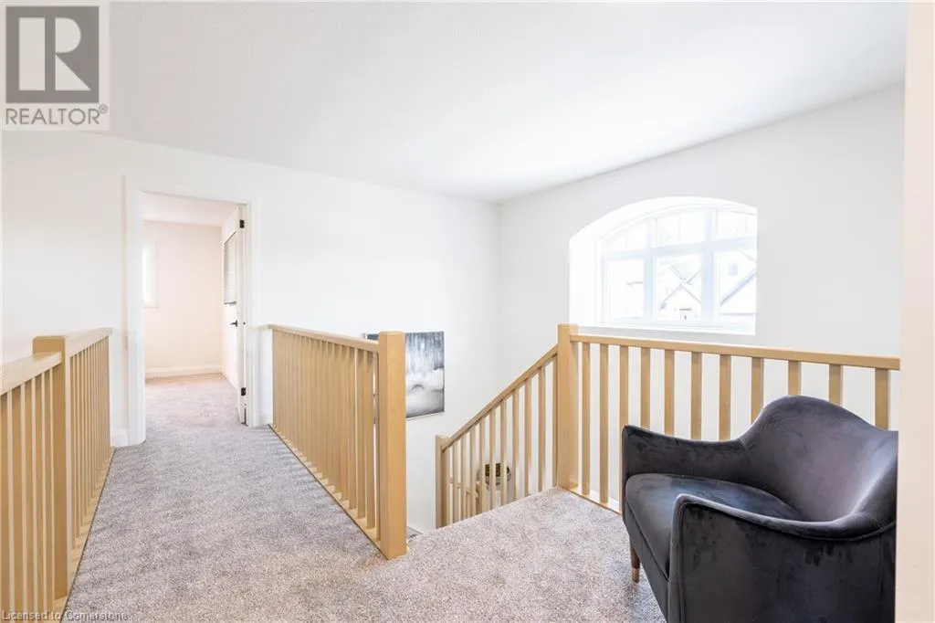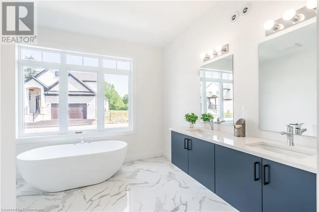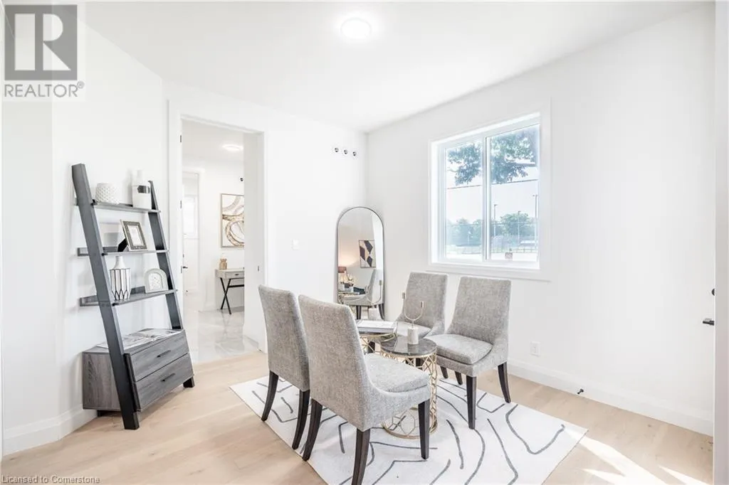 Veterans Memorial and Mount Pleasant Street BUILDER MODEL HOME, never-before-lived-in Energy Star Certified bungaloft with full 7 Year Tarion warrantee nestled in the prestigious Lions Park Estates community of Brantford. Perfectly situated on a quiet, private cul-de-sac, this all-brick executive residence offers an elevated blend of sophistication and comfort. Step inside to find soaring ceilings, wide-plank engineered hardwood flooring, and sunlit open-concept living spaces. The chef-inspired kitchen is a true showpiece, featuring pristine white cabinetry, quartz countertops, designer hardware, an undermount sink, breakfast bar, and a walk-in pantry. The main floor is thoughtfully designed with a serene primary suite offering a spacious walk-in closet and a spa-like 5-piece ensuite with glass shower, soaker tub, and dual vanities. A powder room, laundry area, and a versatile office/den with garage access complete the main level. The loft features two oversized bedrooms and a sleek 4-piece bath. The unspoiled lower level with high ceilings awaits your custom touch. Enjoy seamless indoor-outdoor living with a covered wooden deck backing onto scenic Lions Park. FIRST 12 MONTHS maintenance fee included which includes Snow removal and Lawn care! Steps to Gilkison Trail, great schools, community centre, rinks, shopping, Costco, and Hwy 403. (id:27476)