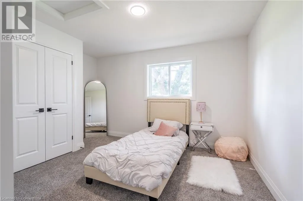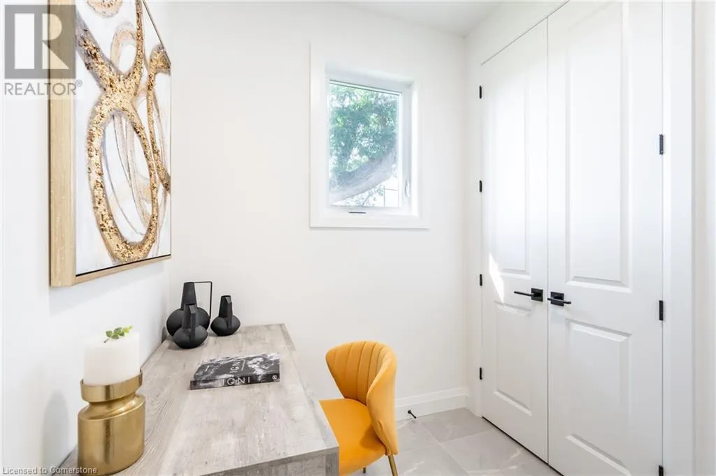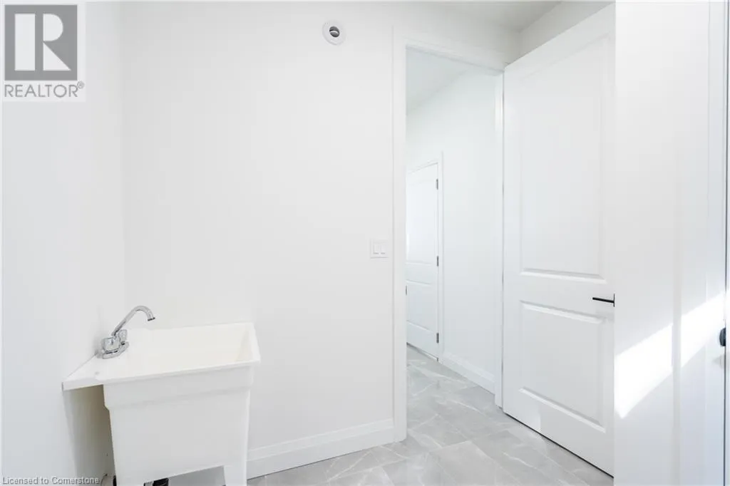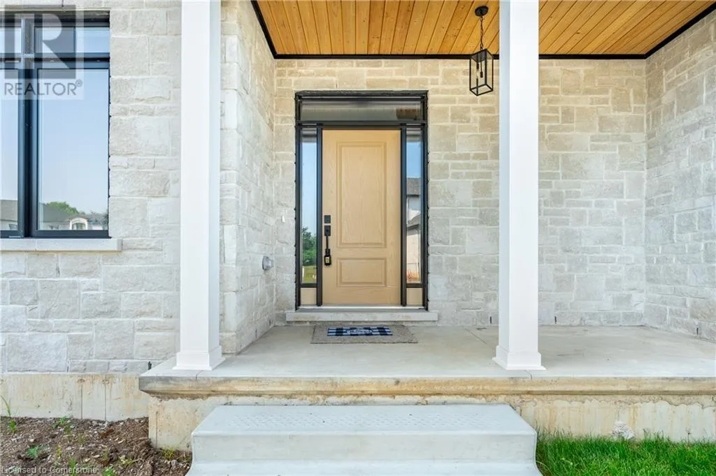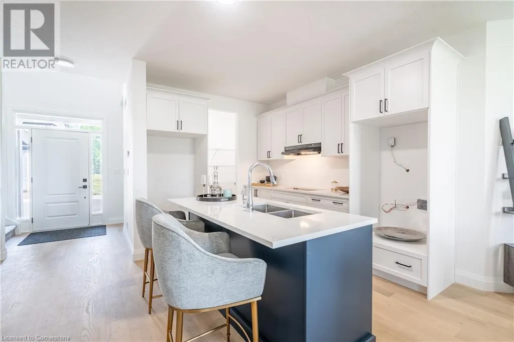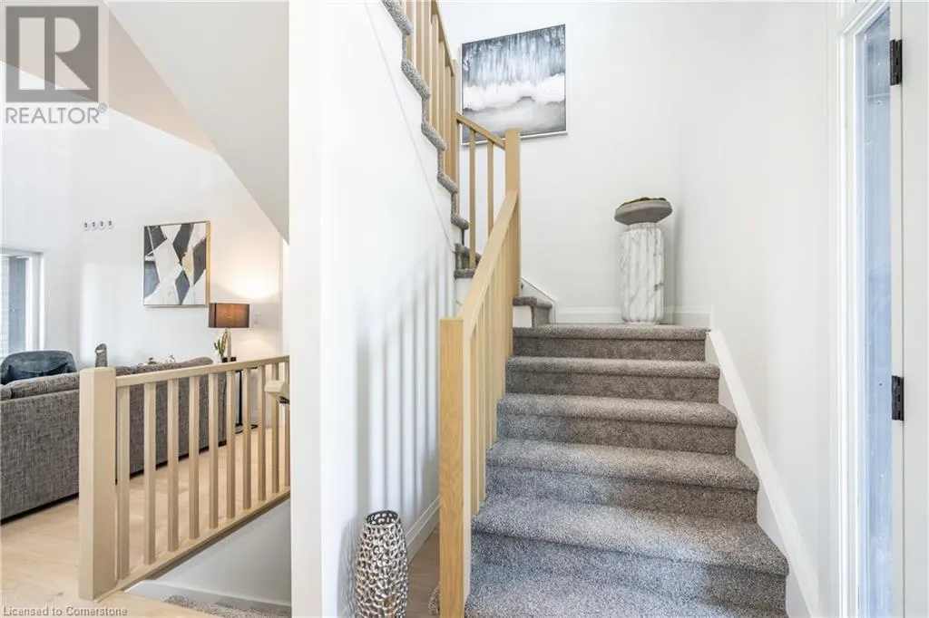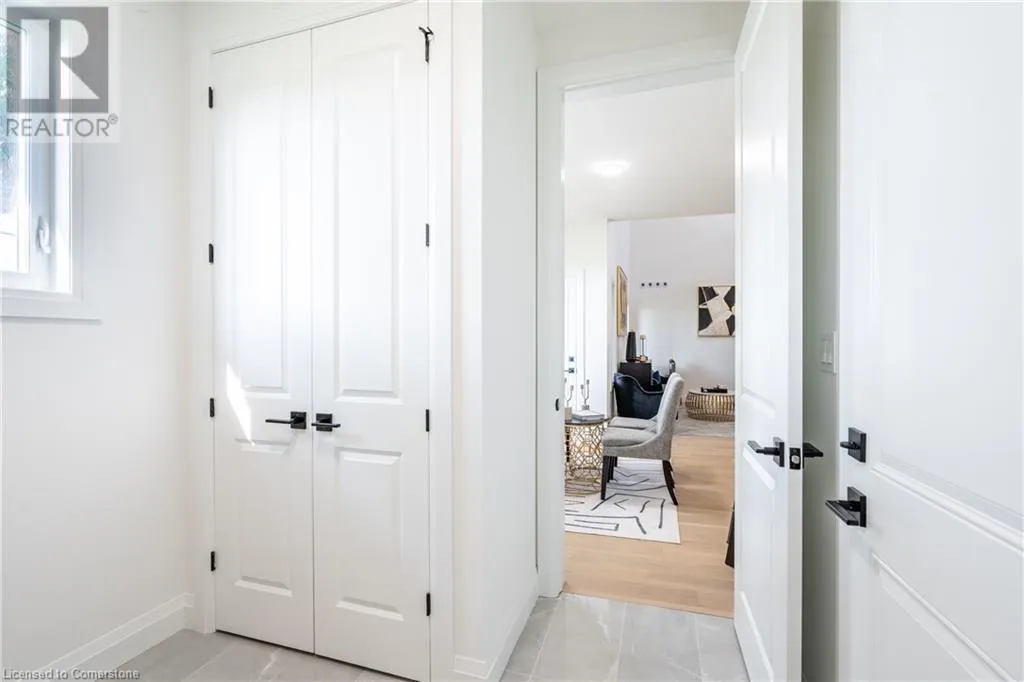 Veterans Memorial and Mount Pleasant Street BUILDER MODEL HOME, never-before-lived-in Energy Star Certified bungaloft with full 7 Year Tarion warrantee nestled in the prestigious Lions Park Estates community of Brantford. Perfectly situated on a quiet, private cul-de-sac, this all-brick executive residence offers an elevated blend of sophistication and comfort. Step inside to find soaring ceilings, wide-plank engineered hardwood flooring, and sunlit open-concept living spaces. The chef-inspired kitchen is a true showpiece, featuring pristine white cabinetry, quartz countertops, designer hardware, an undermount sink, breakfast bar, and a walk-in pantry. The main floor is thoughtfully designed with a serene primary suite offering a spacious walk-in closet and a spa-like 5-piece ensuite with glass shower, soaker tub, and dual vanities. A powder room, laundry area, and a versatile office/den with garage access complete the main level. The loft features two oversized bedrooms and a sleek 4-piece bath. The unspoiled lower level with high ceilings awaits your custom touch. Enjoy seamless indoor-outdoor living with a covered wooden deck backing onto scenic Lions Park. FIRST 12 MONTHS maintenance fee included which includes Snow removal and Lawn care! Steps to Gilkison Trail, great schools, community centre, rinks, shopping, Costco, and Hwy 403. (id:27476)