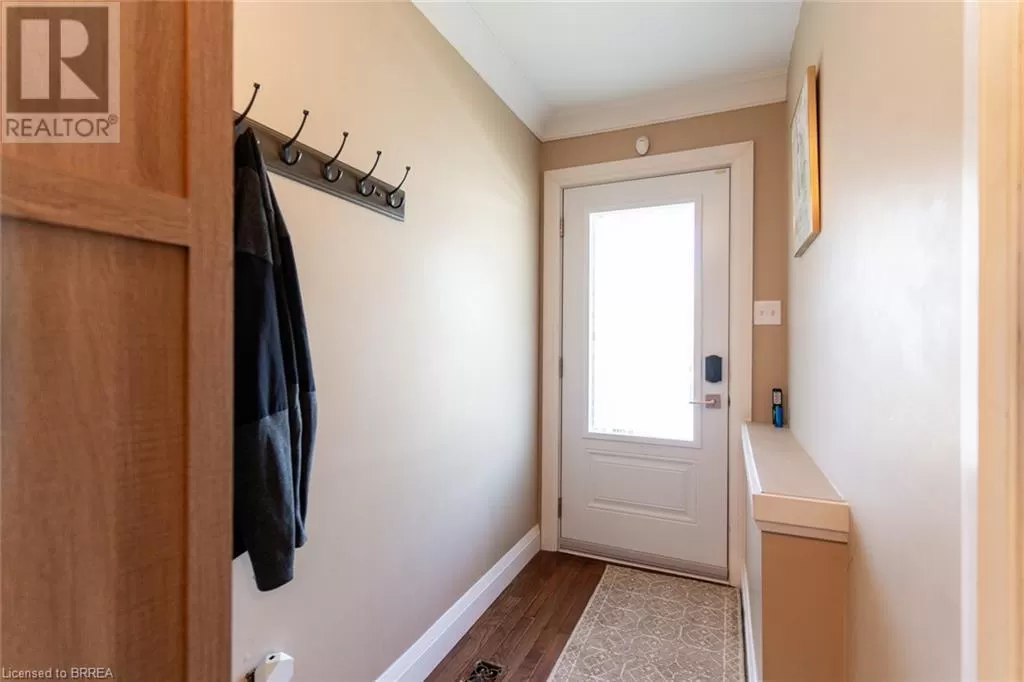 Take Wayne Gretzky Parkway to Grey St and condo complex on left hand side just before Garden Ave Echo Place all brick end unit townhouse bungalow style condo with attached garage perfect for those just starting out or empty nesters located in a well cared for 18 unit complex close to Hwy 403 for commuters with immediate possession available! Featuring 2+1 bedrooms, 2 baths, newer appliances, 2 extra windows for more natural light being a end unit, open concept eat-in kitchen to living room with patio doors to composite deck & hot tub to relax in. Large primary bedroom with walk-through closet to main bathroom and handy main floor laundryâ¦everything you need on one level. Second bedroom to the front of the house is being used as a den or home office currently & has easy access to garage through front hall. The lower level has another good sized 3rd bedroom, 3 pc bathroom, a large rec room with gas fireplace & 4th bedroom or office, unfinished utility room that could also serve as extra storage and/or workshop, newer windows, newer front door, water softener. Condo fee only $395.00 per month includes all building insurance, property management fees, exterior maintenance, snow removal, grass cutting, roof & windows. This could be your new home so make an appointment to view today! (id:27476)