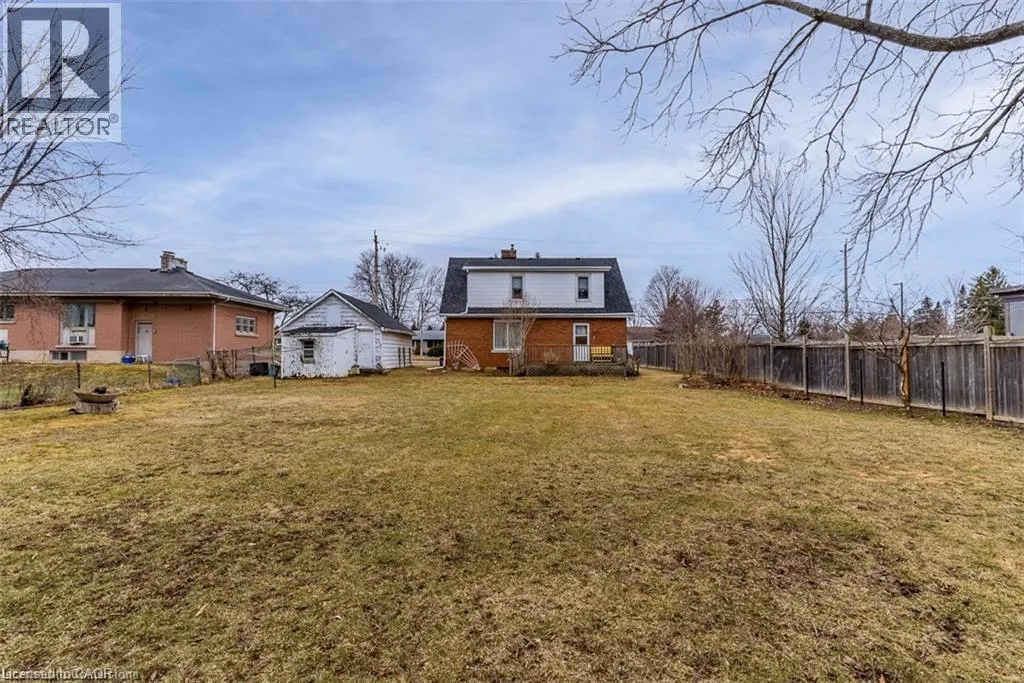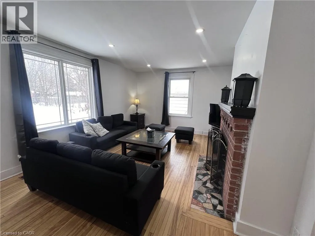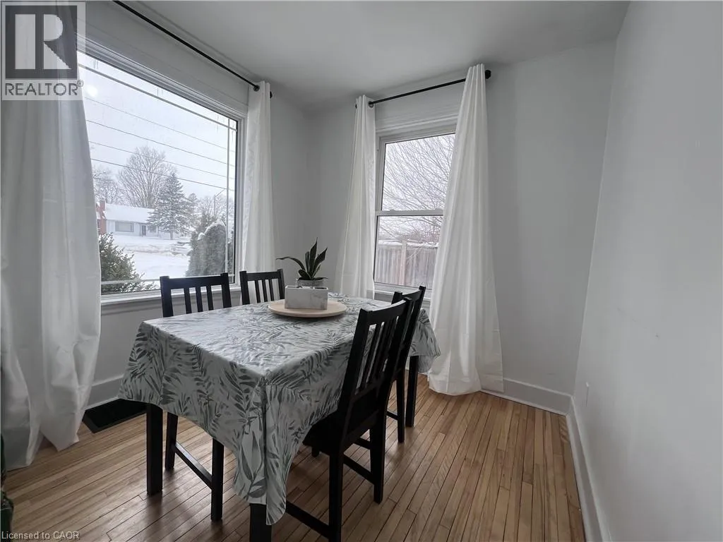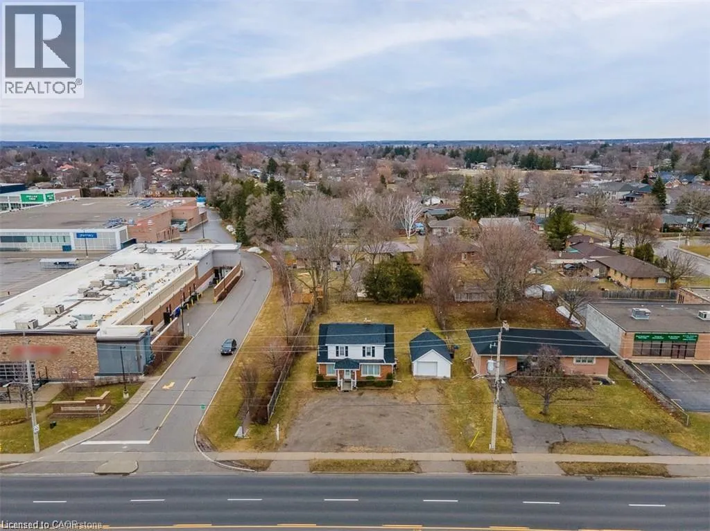 Stay on ON-24 S as it becomes King George Road upon entering Brantford, the destination is on the left. Situated in one of Brantfordâs most sought-after neighborhoods, this unique property offers an exceptional opportunity for homeowners, investors, and developers alike. Zoned for commercial use, it presents a rare blend of comfortable residential living with exciting future development potential. The home showcases natural hardwood flooring throughout and features a classic layout, including a spacious living room, cozy family room, well-appointed kitchen with a breakfast nook, and a 3-piece bathroom on the main floor. Upstairs, youâll find three generously sized bedrooms and a full 4-piece bathroomâideal for family living or potential rental income. Outside, a large front driveway provides ample parking, while the expansive, private backyard offers space for outdoor entertaining, gardening, or future enhancements. A detached garage adds further value with extra storage or potential workshop space. Whether you're a builder looking for your next project, an investor eyeing long-term gains, or a first-time homebuyer with vision, this property combines location, zoning flexibility, and room to grow. Donât miss this versatile and promising opportunity. (id:27476)