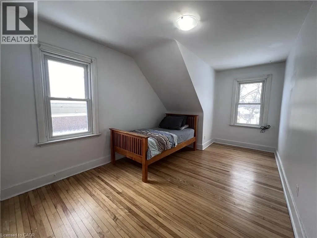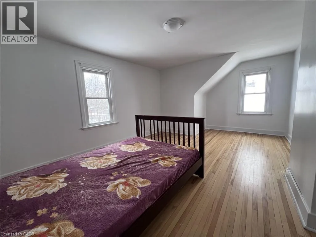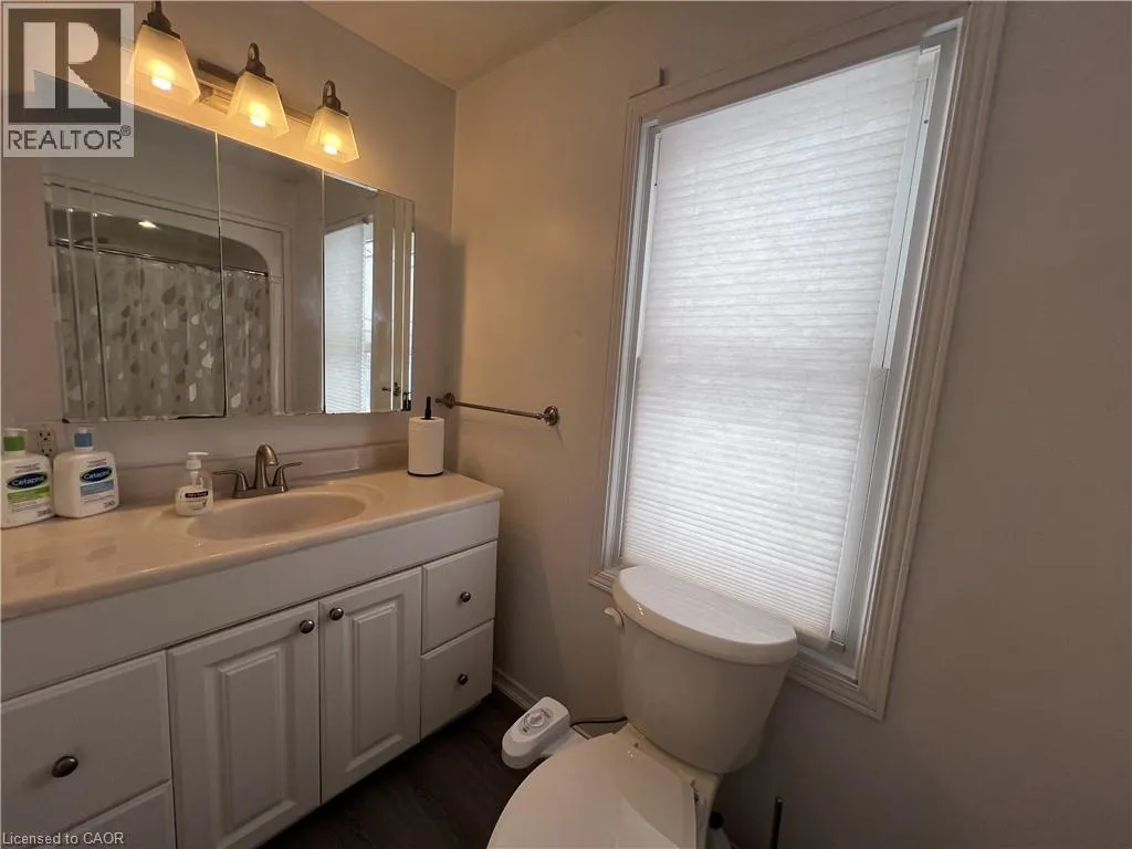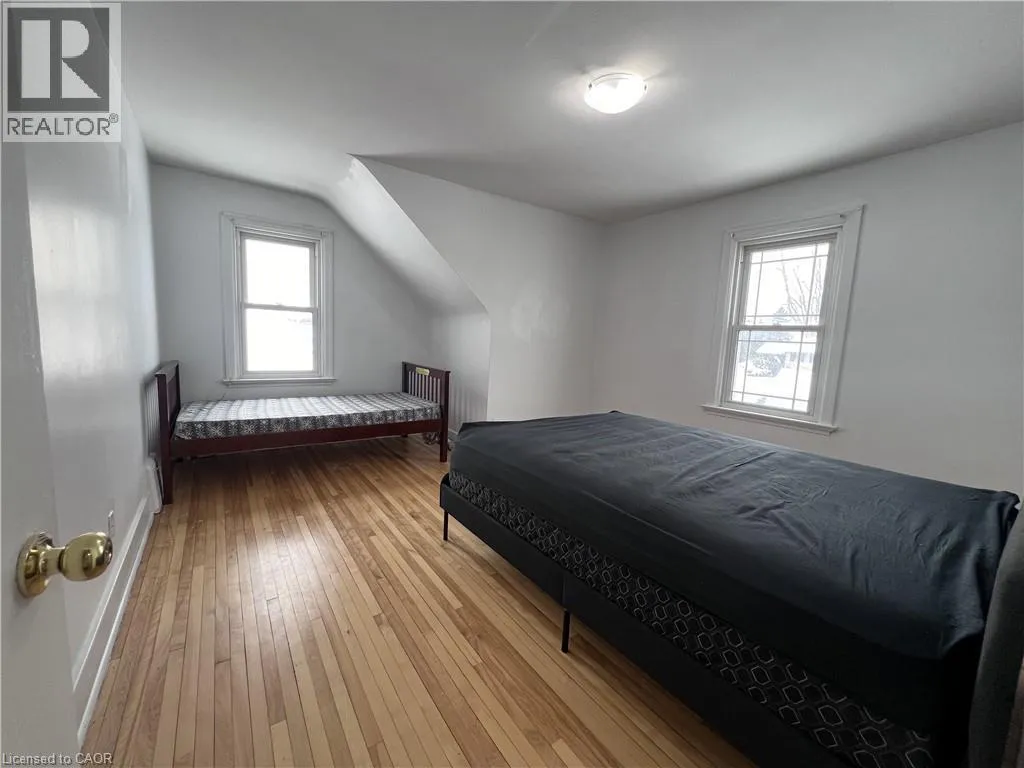 Stay on ON-24 S as it becomes King George Road upon entering Brantford, the destination is on the left. Situated in one of Brantfordâs most sought-after neighborhoods, this unique property offers an exceptional opportunity for homeowners, investors, and developers alike. Zoned for commercial use, it presents a rare blend of comfortable residential living with exciting future development potential. The home showcases natural hardwood flooring throughout and features a classic layout, including a spacious living room, cozy family room, well-appointed kitchen with a breakfast nook, and a 3-piece bathroom on the main floor. Upstairs, youâll find three generously sized bedrooms and a full 4-piece bathroomâideal for family living or potential rental income. Outside, a large front driveway provides ample parking, while the expansive, private backyard offers space for outdoor entertaining, gardening, or future enhancements. A detached garage adds further value with extra storage or potential workshop space. Whether you're a builder looking for your next project, an investor eyeing long-term gains, or a first-time homebuyer with vision, this property combines location, zoning flexibility, and room to grow. Donât miss this versatile and promising opportunity. (id:27476)