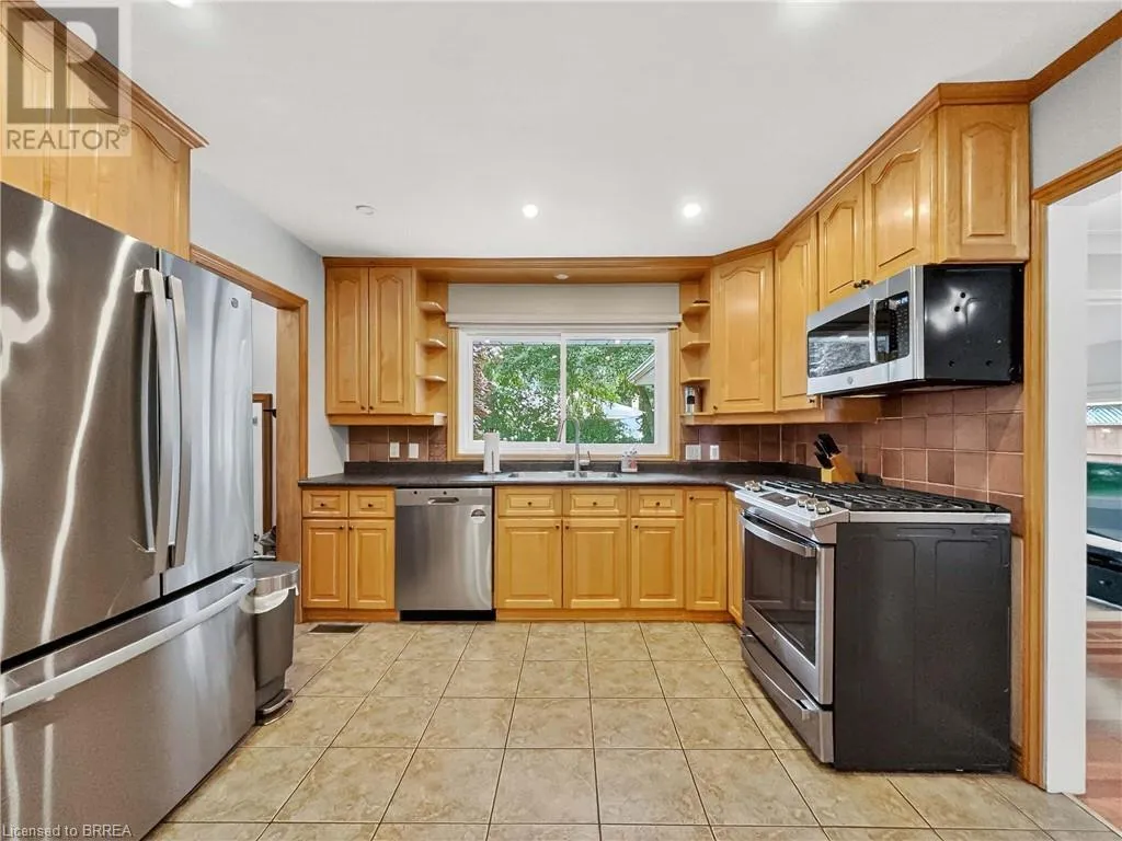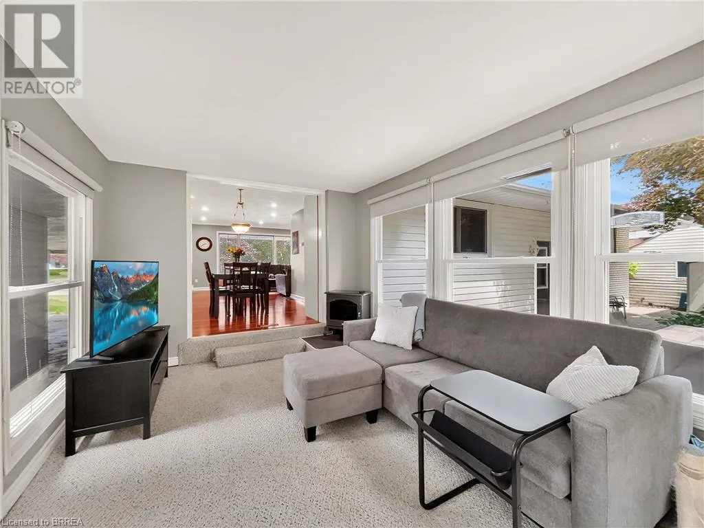 FAIRVIEW DR. TO BAXTER TO SHERRY LANE Are you looking for an absolutely breathtaking home in a mature, tree-lined neighborhood with a quiet street, wonderful neighbors, a quick exit onto the 403, close to shopping, schools, parks, major amenities, the rec center, public and private schools, where evening walks are long, the coffee hits different in the morning, and the kind of pride in homeownership practically glows from the curb? A place with plenty of parking, a charming backyard, and a layout that makes sense for real life in a town where a family home still comes at a price within reach? Welcome to 6 Sherry Lane in Brantford, Ontario. Step inside and youâll immediately feel the warmth and care thatâs been poured into this home, with a generous living room that flows beautifully into the dining area, then into a bright sunken sunroom leading to a tranquil yard wrapped in greenery. The kitchen is sweet and functional, and the main level offers three inviting bedrooms and a four-piece family bath. Downstairs, thereâs even more space to enjoy, with a huge recreation room, two additional bedrooms, a second full bathroom, a finished laundry area, and storage for days. With new appliances in the kitchen, tasteful updates throughout, and that undeniable âthis just feels rightâ energy from the moment you arrive, this home is move-in ready and waiting for its next chapter to be written. Donât delay, call your REALTOR® today. (id:27476)