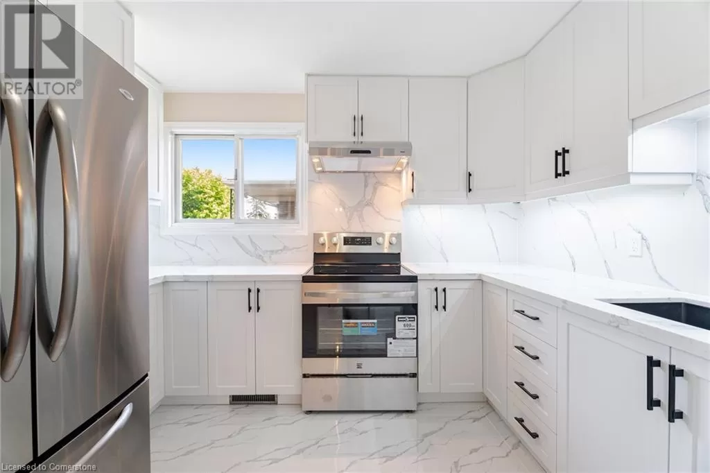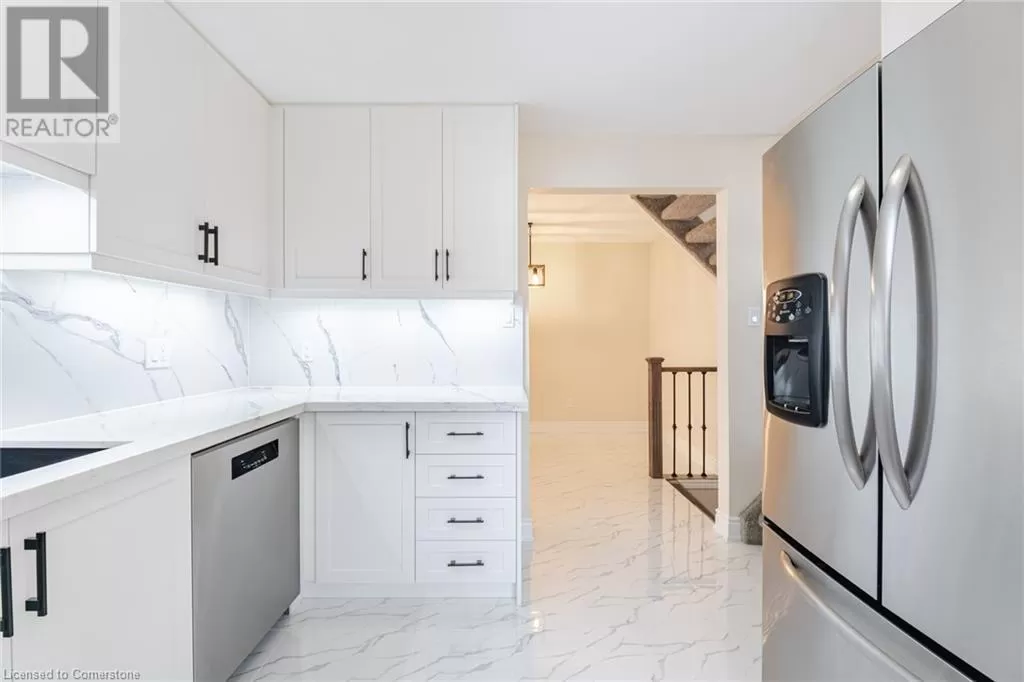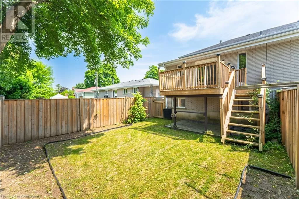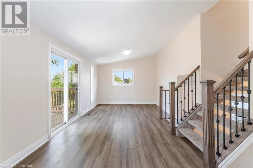 From Highway 403, Exit on Wayne Gretzky Pkwy & Head South, Turn Left (East) on Grey St, Turn Right (South) on Rowanwood Ave, Turn Right (West) on Albemarle St. Fully Brick Beautiful 5 Level Backsplit Layout Completely Freehold End Unit Townhome with an Extra Long Driveway For Sale Where You Can Easily Park 3 Cars! 1240 Sqft Above Grade + 241 Sqft Half Underground 2nd Living Room Level + 421 Sqft Unfinished Basement + 200 Sqft Crawl Space Storage + Cold Room Storage, The Home Is Bigger Than You Think, You Have to Check it Out! Tucked Away on a Quiet Street with Little Traffic for Your Enjoyment. Extensive Renovations All Recently Completed, Including New Flooring/Tiles, Baseboards, Redone Garage, New Elegant Oak Stair Railings & Iron Spindles, Entire House Freshly Painted, Lots of Electrical Upgrades! Direct Entrance From Garage to the House! Main Floor has New Porcelain 12x24 Tiles Throughout with a Brand New Powder Washroom & Large Dining Room! Entirely New Kitchen with Lots of Cabinets, Quartz Countertops, Stainless Steel Appliances & Double Sink! Lots of Newer Windows & Flooring on the Floors. The 2nd Level is a Huge Living Room, 20 Feet Long, with a Double Glass Sliding Door Taking You Out to Raised Deck with Stairs Access to the Fully Fenced Backyard. On the Third Level You will find All Bedrooms and a Full Washroom, Master Bedroom has a Large Walk-in Closet. A Second Living Room is on the Lower Level, Also 20 Feet Long. The Basement is Very Large with the Laundry Units, A Cold Storage Room, and a Huge Crawl Space Under the 2nd Living Room, Great to Store Away All Seasonal Items in Boxes. 2nd Access to The Backyard From the Side. 10 Minute Walk to Woodman Elementary School! Literally 2 Minute Walk to Echo Park with Large Fields & a Playground. Lynden Mall, Costco, Restaurants, Downtown Brantford, Laurier Campus, Conestoga Campus, Hwy 403 Exit, All Less than a 10 Minute Drive Away! You'll Love the Backyard, the Area Under the Shade & The Grass Area for Your Enjoyment! (id:27476)