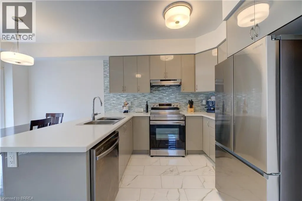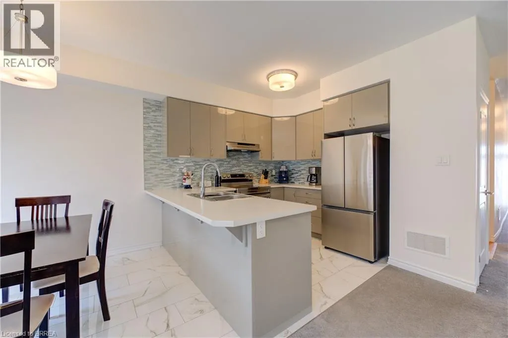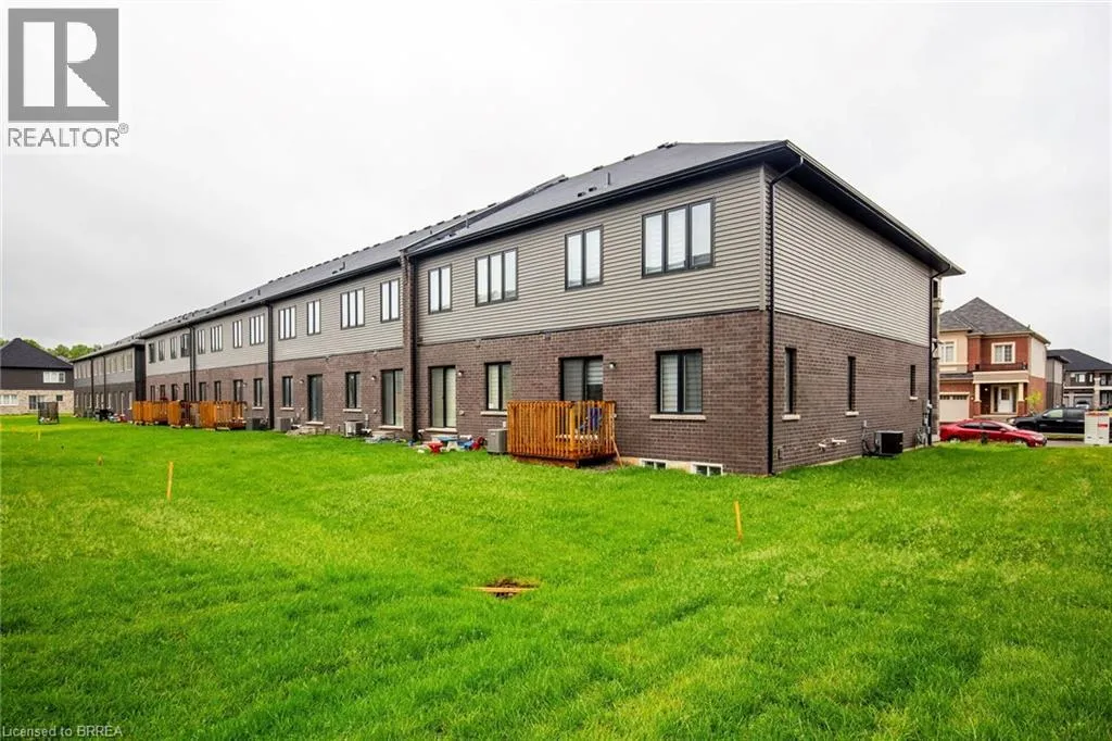 Hardy Rd/Oak Park rd Welcome to 2 Copeman Ave! This stunning end-unit townhouse is only 2 years new and offers 1,624 sq. ft. of stylish living space. Featuring a private driveway and single-car garage, this premium home includes 3 spacious bedrooms and 2.5 bathrooms. The kitchen is designed with elegant, low-maintenance cabinetry and a sleek backsplash. The open-concept dining area walks out through patio doors to a private deckâperfect for entertaining or relaxing outdoors. Upstairs, youâll find a generous primary bedroom with a 4-piece ensuite, two additional large bedrooms, a convenient second-floor laundry room, and plenty of storage. One of the bedrooms also features a private balcony. Located in a fabulous neighborhood, this home is close to Hwy 403, golf courses, and scenic Grand River trails. A premium end-unit with extra light, privacy, and modern designâthis is the perfect family home. Donât miss it! (id:27476)