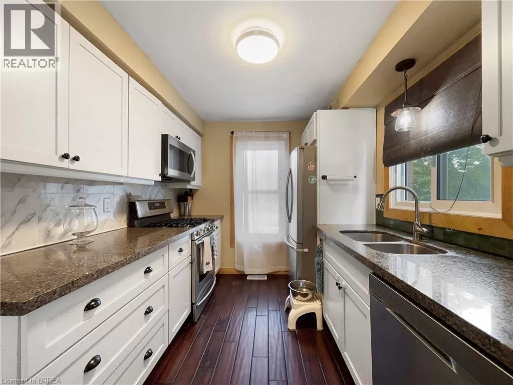 BriarPark Welcome Home to Brantfordâs North End This outstanding corner home offers three bedrooms, two and half bathrooms, a private garage, and a double car driveway. Youâll love the enormous backyard and the convenience of being within walking distance to parks, schools, and shopping, plus just a short drive to Highway 403 for easy access everywhere you need to go. Step inside to a bright foyer with a convenient two-piece guest bath on your left. The main floor flows beautifully into a living room with a large backyard view, an adjacent dining area with walkout to the backyard, and a cozy kitchen. Downstairs youâll find a rec room perfect for entertaining, a laundry/utility space, and another bathroom. Upstairs is your sanctuary with three bedrooms, including the primary, and a five-piece family bathroom that provides plenty of space for your whole family. This is the perfect place for a new family to write its next chapter. Donât delay. Call your REALTOR® today! (id:27476)