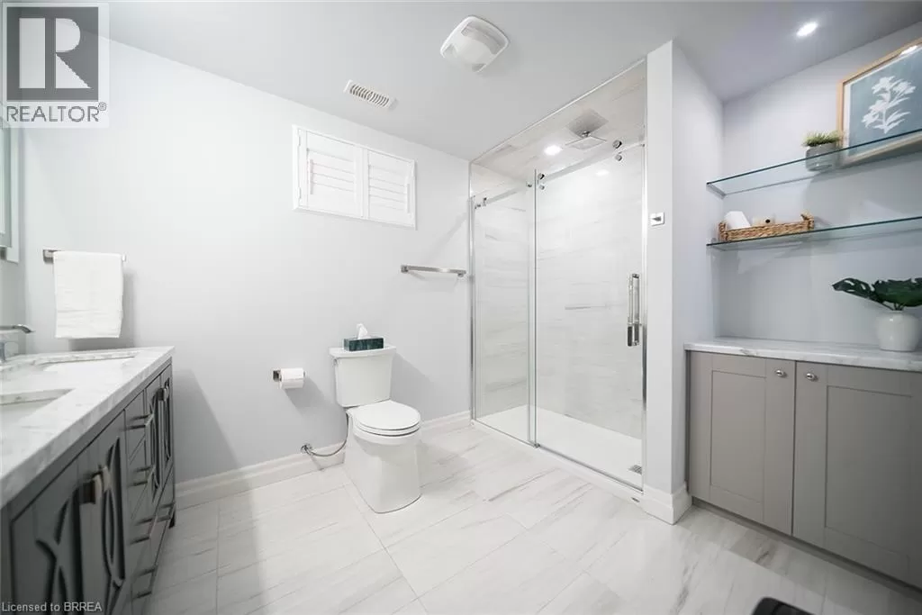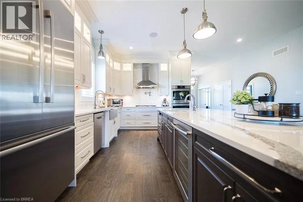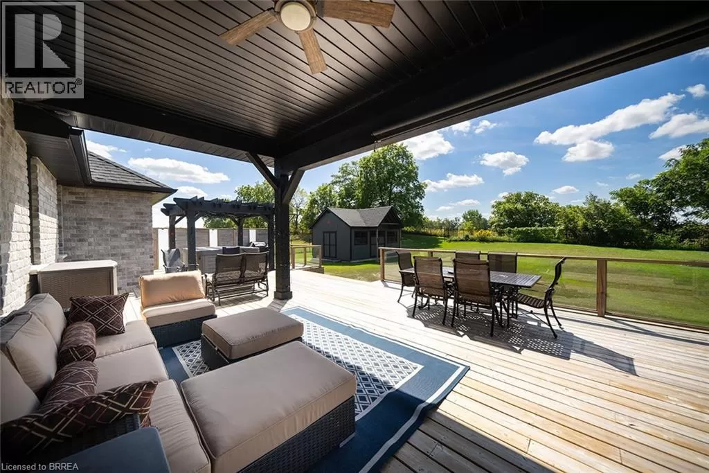 Mount Pleasant Road to Tedley Boulevard Welcome home to the prestigious Valley Estates community where this stunning, custom built, Spadafora Home, sits on a sprawling 3/4 acre lot with no backyard neighbours. Offering 2+2 bedrooms (a potential 3rd in the walk-in closet), 3.5 bathrooms & a triple car garage, with more than 4000 sq ft of finished living space. The all-brick exterior, concrete front landing & triple-car garage are striking as you make your way up to the front entryway. The alluring 10-ft ceilings create a warm, open & airy feeling as you enter the home. To the right of the entryway is a large formal dining room to host all your family gatherings, while to the left is a home office to tidy up your business affairs. This can also be another bedroom if required. The immense open-concept space offers a stunning, chic white kitchen with a 10.5-ft center island & ample storage & counter space for food preparation, with sightlines into the great room with a gas fireplace, & wall-to-wall views of the backyard with no neighbours. The main floor living area is highlighted with laundry, a powder room, & a separate bedroom area, with a large primary suite with a walk-in closet & a spa-like ensuite bathroom with a shower & soaker tub. The closet is every woman's dream with organizers & an island. This space can also be closed off to create a functional bedroom. A second generous size bedroom & full bathroom complete the main floor. Make your way downstairs to find a stunning finished basement that offers two bedrooms & a full bathroom, with a separate area for a gym, games area, recreation room & bar. This space is truly exceptional for entertaining. With access to the garage from the basement, this could be the perfect in-law suite! Outside, you will enjoy the 53x23 deck with a covered porch, pergola with hot tub, large shed & views for days with no backyard neighbours. (id:27476)