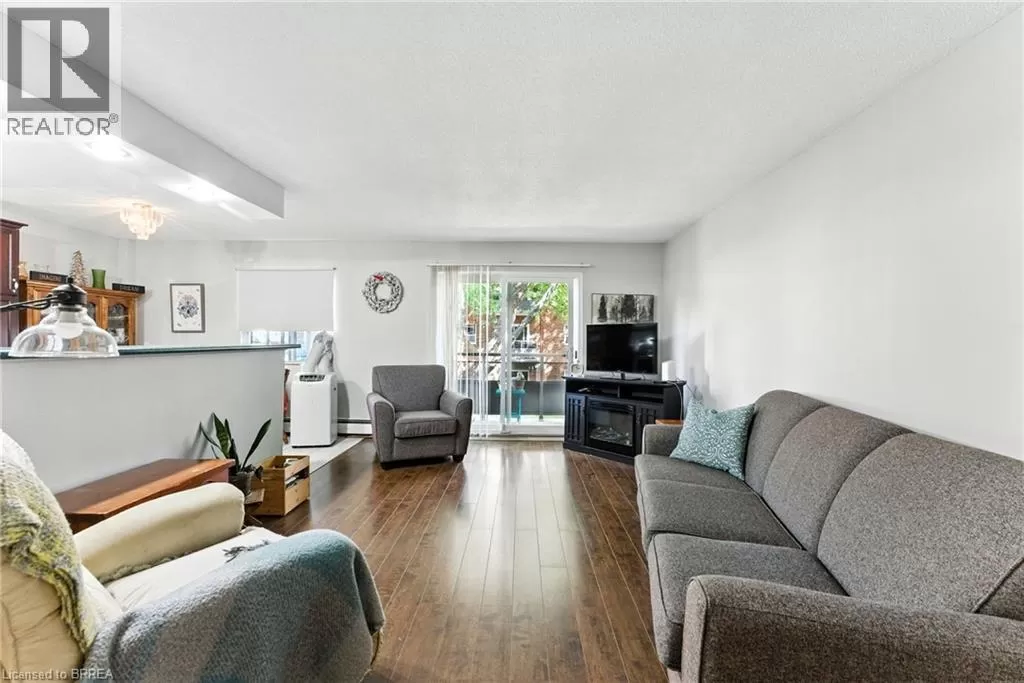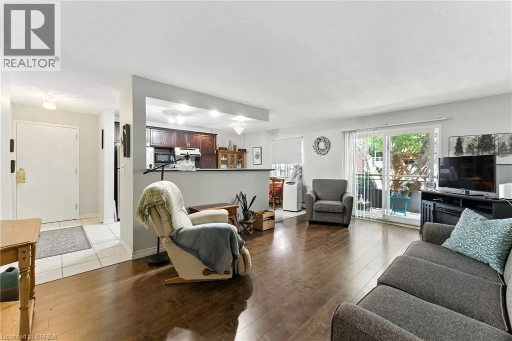 Wayne Gretzky Prkwy to Grey St Perfect for Investors! Turnkey with A+ Tenant at current market rent rate. Welcome to this bright and tidy 1-bedroom, 1-bathroom condo offering low-maintenance living in a prime central location. The open-concept layout seamlessly combines the living room, dining area, and kitchen, creating a functional and inviting space to relax or entertain. Step outside to your private balcony on the second levelâperfect for enjoying morning coffee or evening downtime. Treed yards for leisure time. With in-suite laundry hookups, oversized walk in storage closet an exclusive parking space, and low condo fees that include heat and water (you only pay hydro), this home checks all the boxes for convenience. Located just minutes from shopping, schools, and easy highway access, this condo is ideal for those seeking a move-in ready home or a smart investment property. Donât miss this opportunity to expand your investment portfolio with stress-free income. (id:27476)