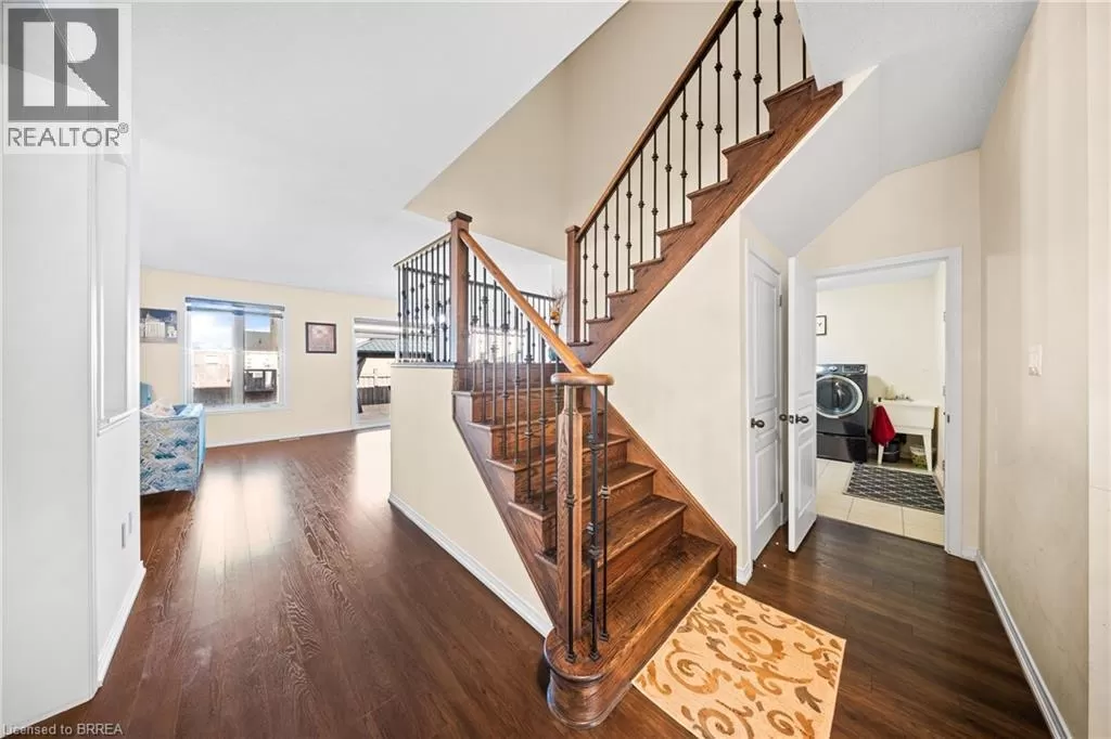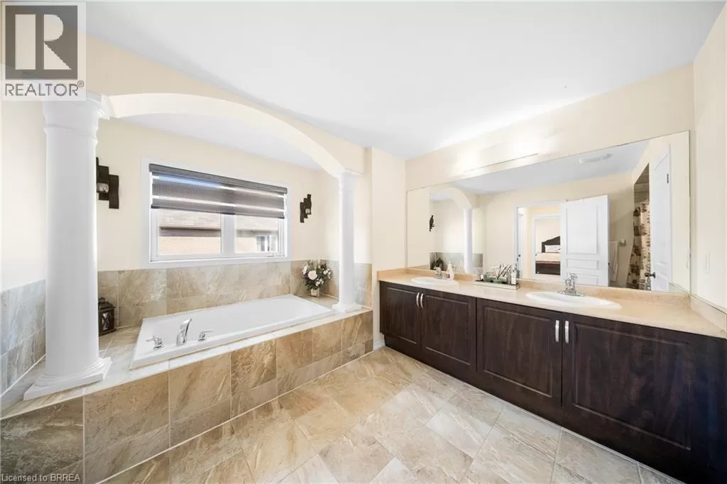 Ferrier Ln & Gillespie Dr Welcome to 109 Gillespie Drive, an impressive 5-bedroom, 4-bathroom home in Brantford's vibrant West Brant (Shellard Lane) community, offering over 3,400 sq ft of above-grade living space in the area's largest builders plan. From the moment you arrive, the elevated curb appeal, all brick facade, and covered porch set the tone for elegance and thoughtful design. Step inside to discover a grand foyer that leads to an open-concept main floor where a gourmet kitchen becomes the heart of the home, featuring upgraded cabinetry, a centre island, stainless steel appliances, and a tile backsplash. A main-floor laundry adds convenience, while large windows allow light to pour in over hardwood and tile flooring. A private office/homework space and formal dining area make this floor ideal for both family life and entertaining. Upstairs, five spacious bedrooms await. The luxurious primary suite is your private retreat, complete with dual walk-in closets and a spa-like ensuite. Four additional bedrooms share beautifully designed Jack-and-Jill bathrooms offering both elegance and functionality for families. Outside, enjoy a private backyard retreat perfect for summer gatherings, playtime, or quiet evenings, with fully fenced grounds and the benefit of being in a neighborhood with walking trails, parks, and natural green space nearby. Situated in West Brant, this home offers premium schools within minutes, retail and dining close by, and convenient commuter access. Shellard Lanes' growth, infrastructure, and community spirit make this more than just a home; it's a place to grow, thrive, and build lifelong memories. 109 Gillespie Drive isn't just move-in ready, it's move-in worthy. Discover luxury, space, and lifestyle. (id:27476)